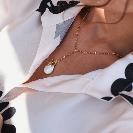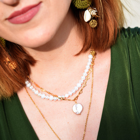 Колие "Bella" перли и 14k позлатени елементи и Swarovaski Кристали