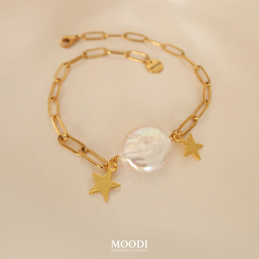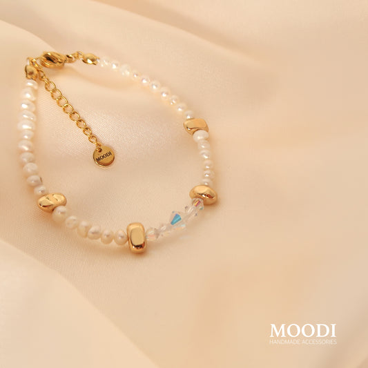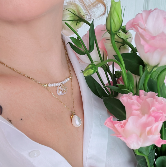 Колие "Bella" перли и 14k позлатени елементи и Swarovaski Кристали