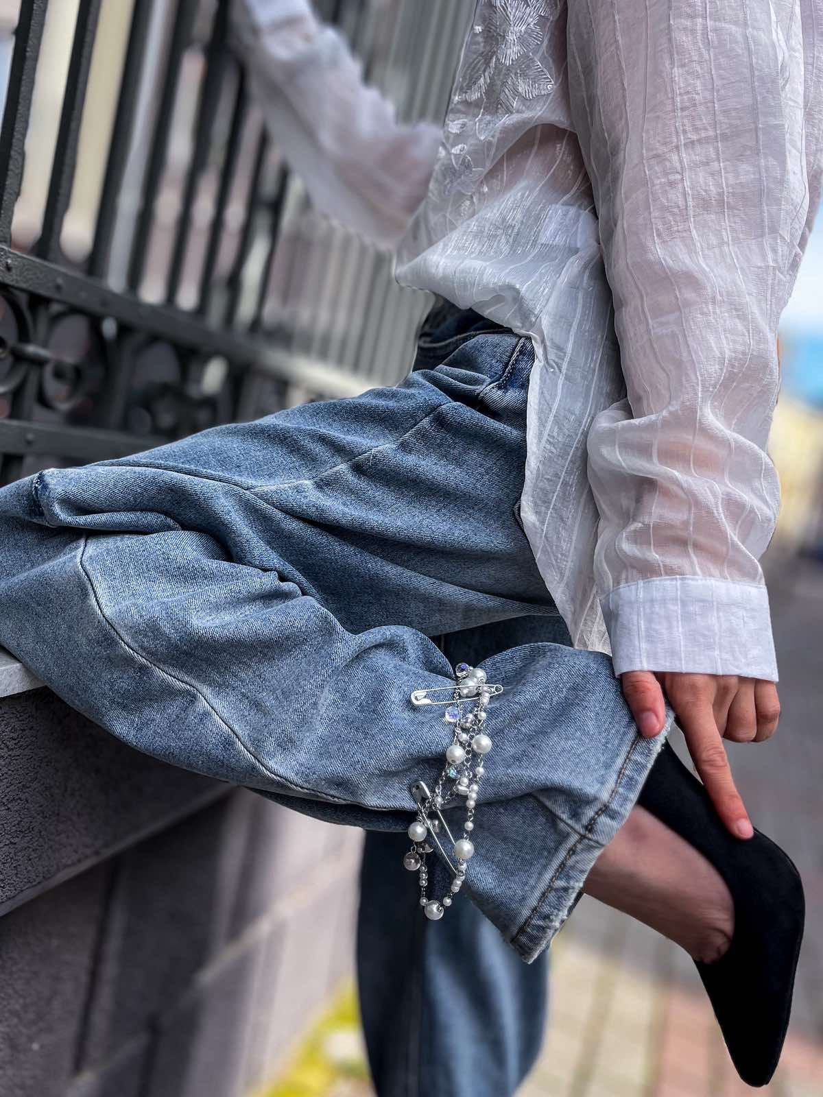 – като брошка на крачола на дънки – за смел, модерен силует