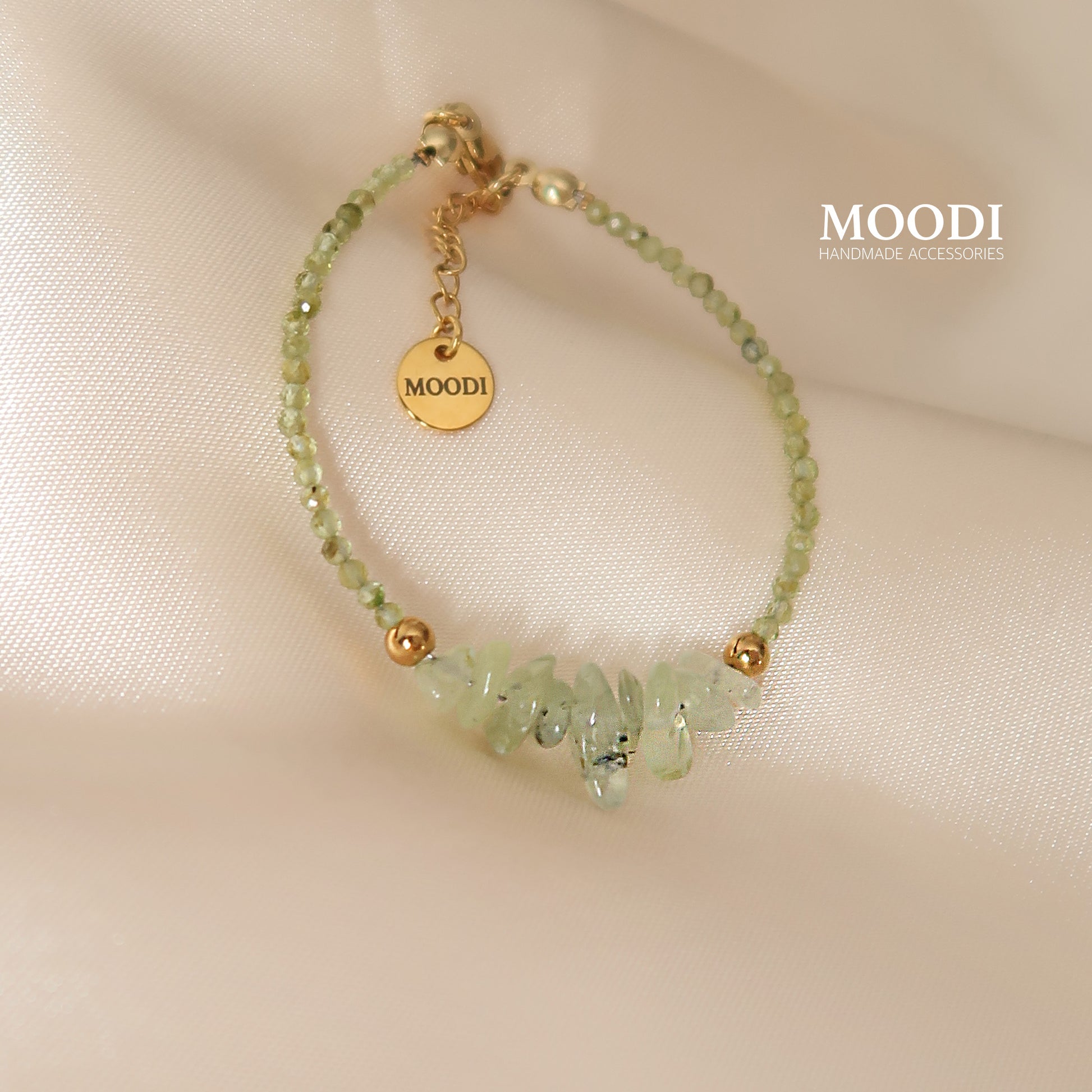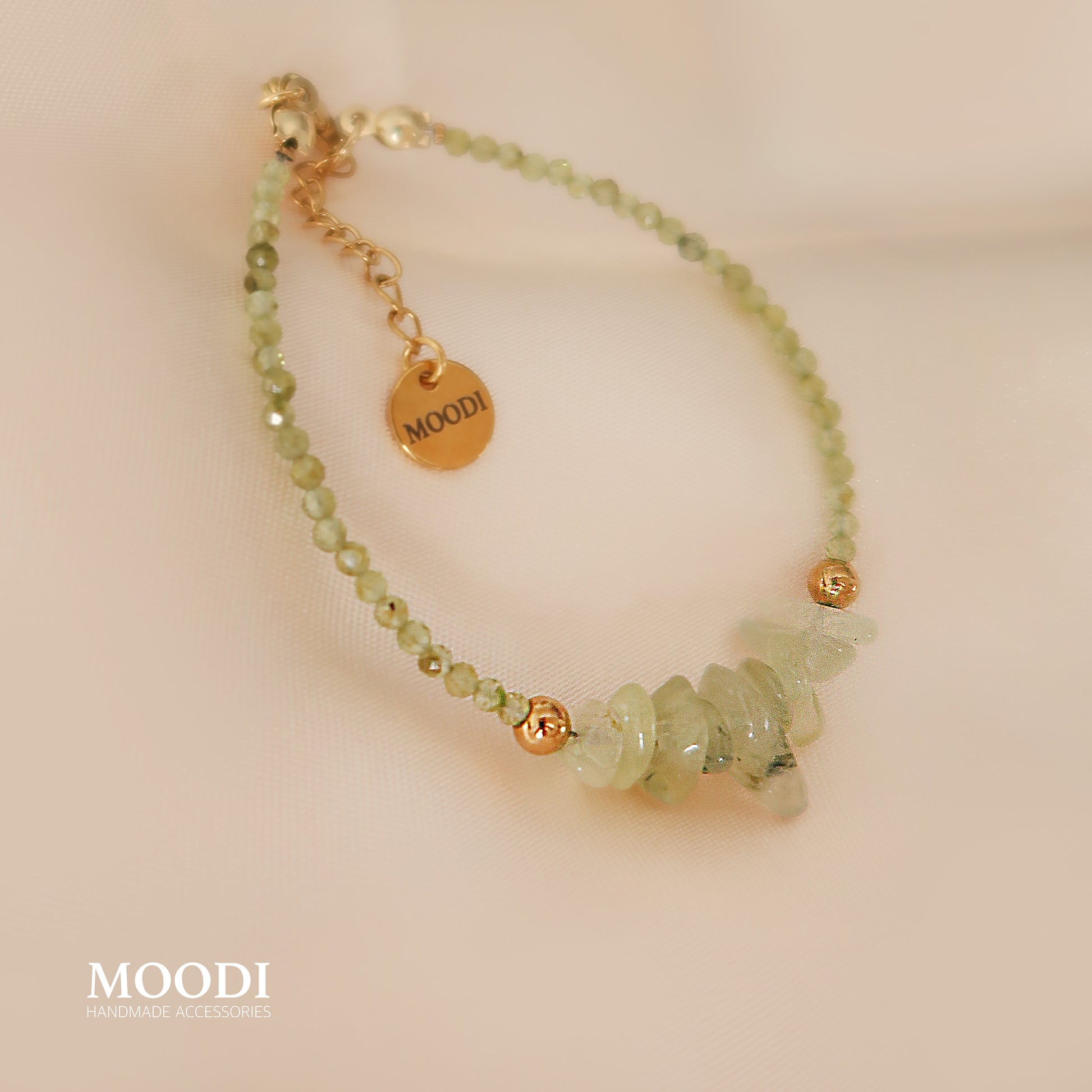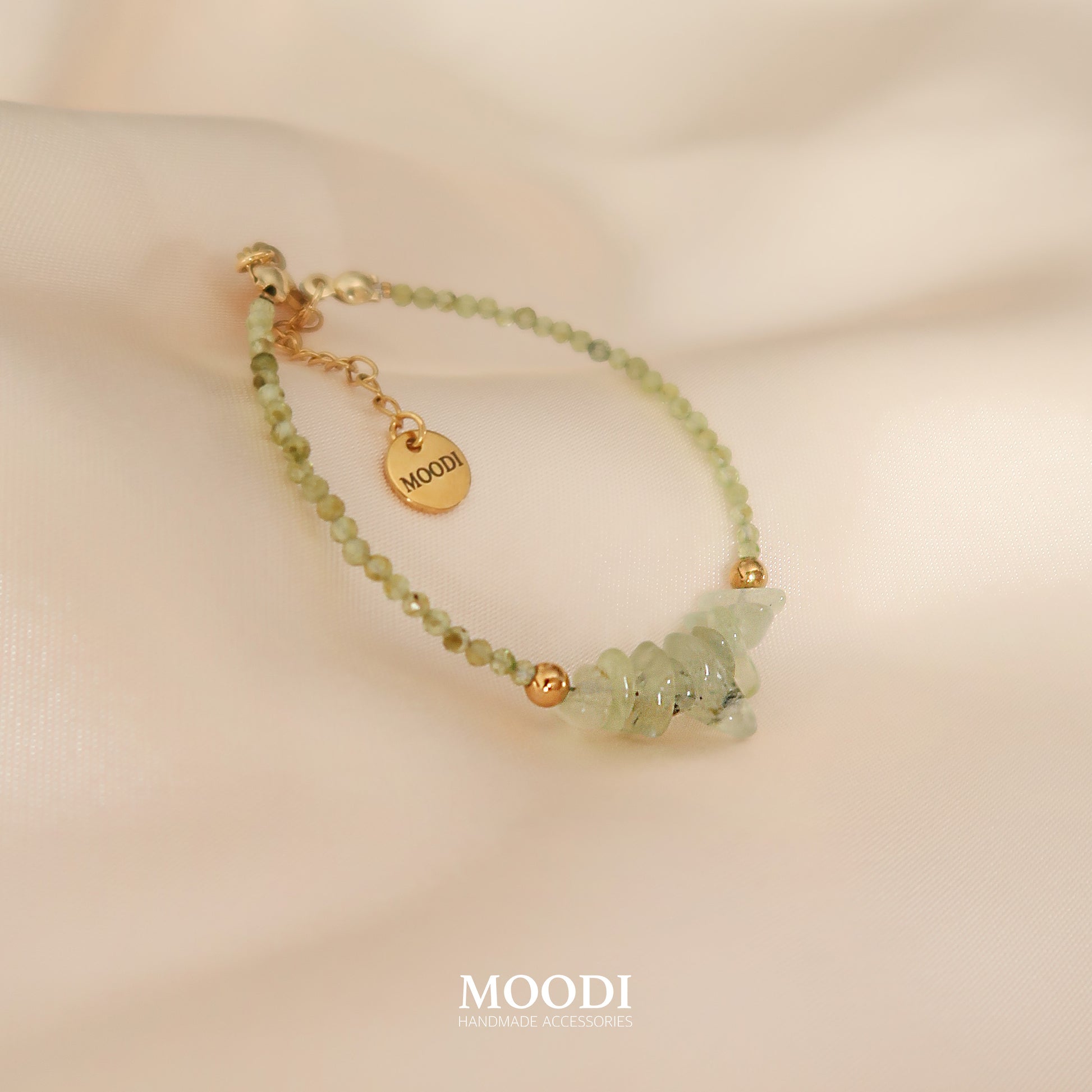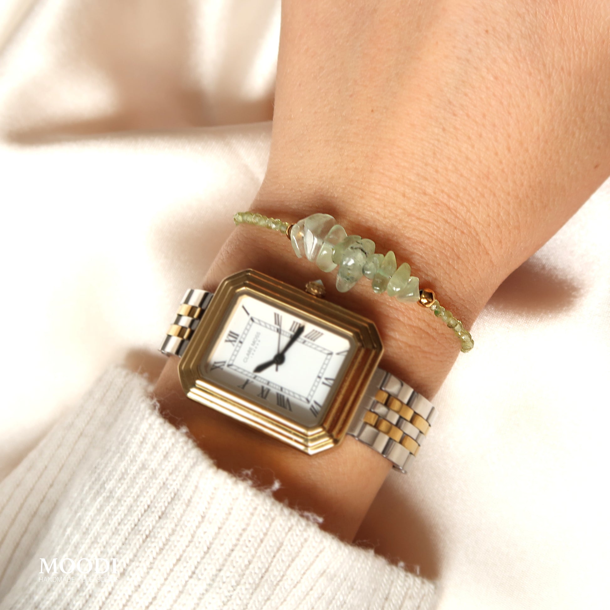 ✨ Пренит — камъкът на спокойствието и връзката със сърцето ✨ Нежен, ефирен и меко зелен — Пренитът е един от онези камъни, които не просто красят китката… а носят усещане. 🌿