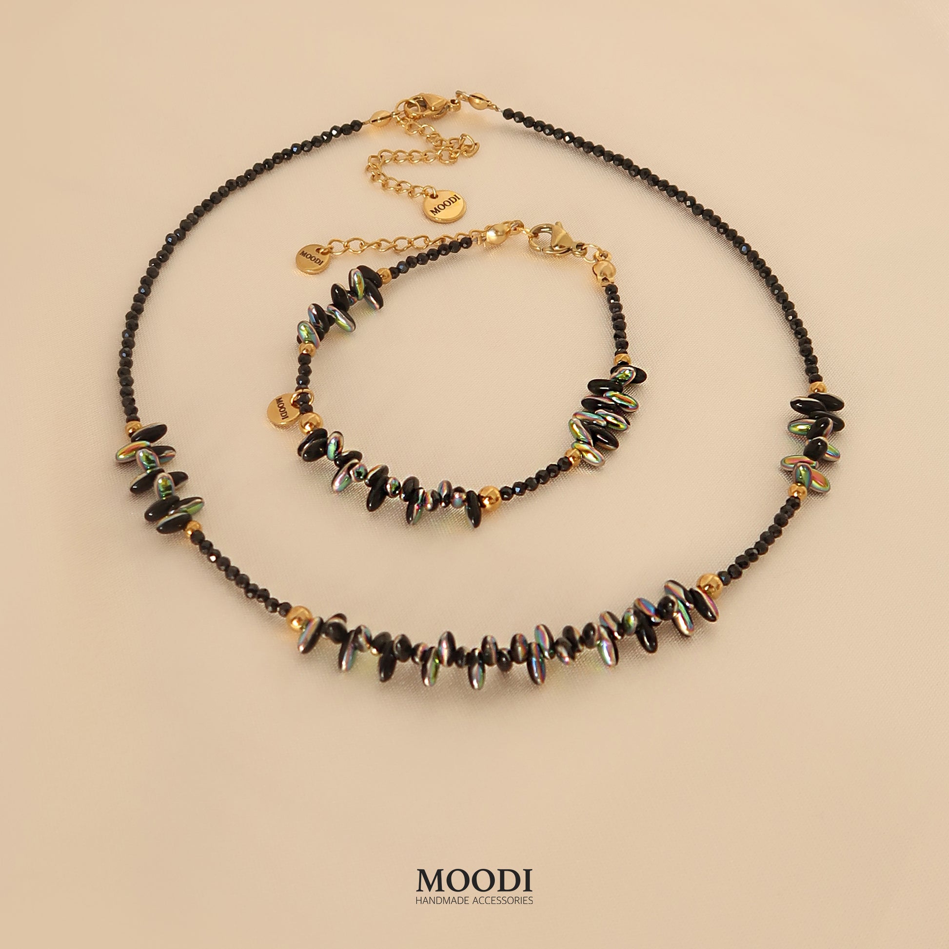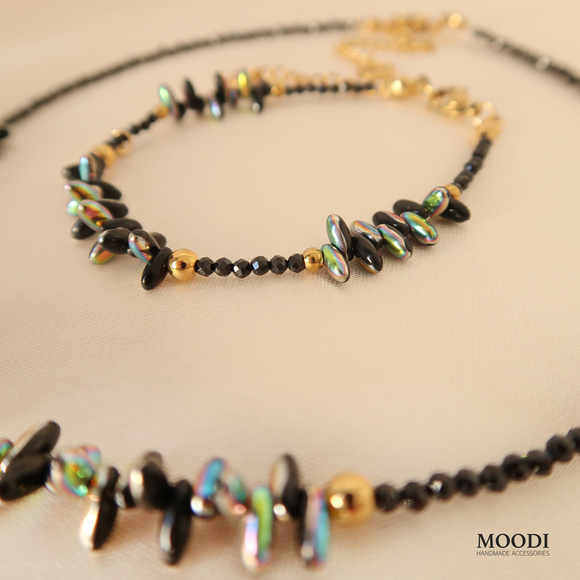- Материал: Гривна от естествени кристали Шпинел / Стоманени мъниста / закопчалки от позлатена стомана