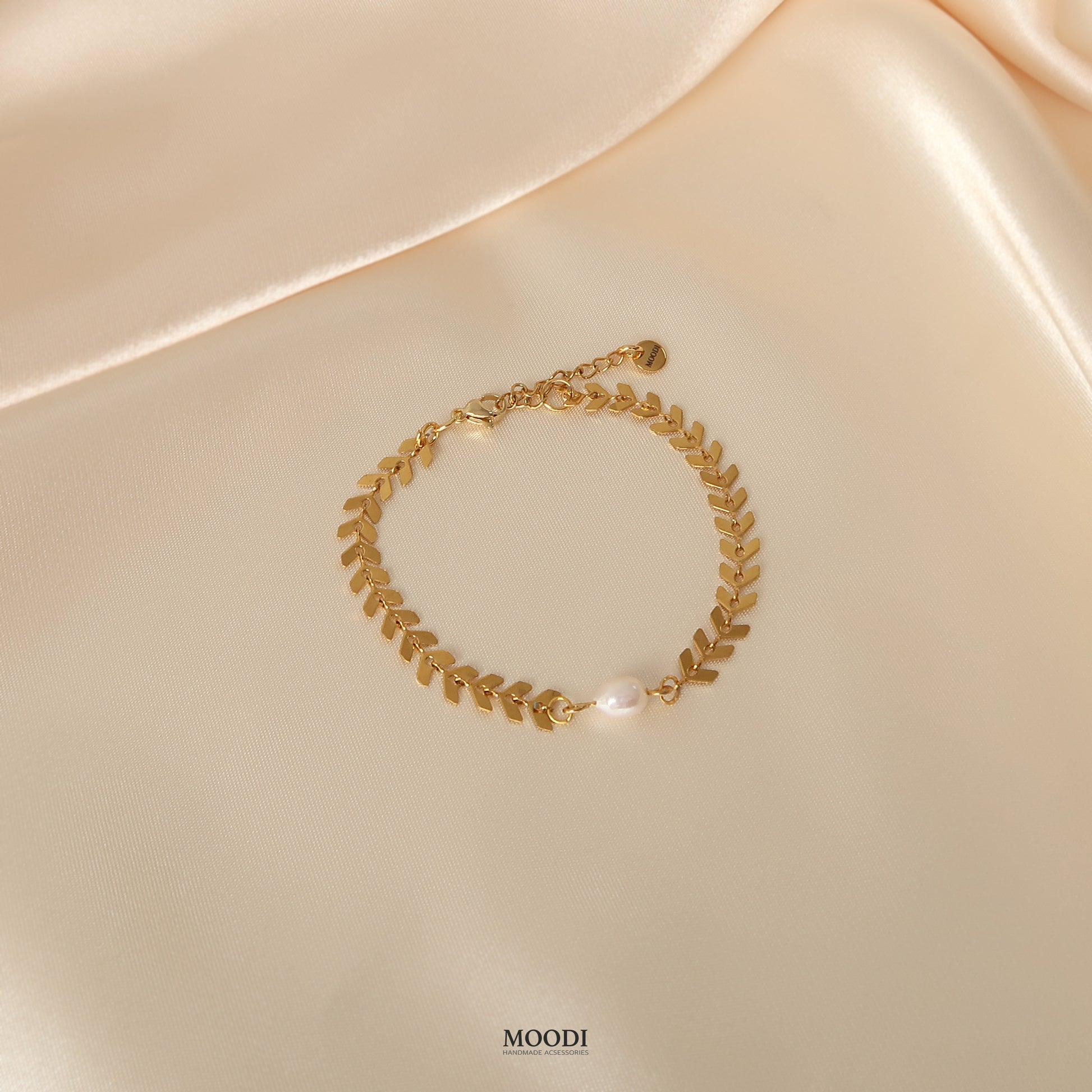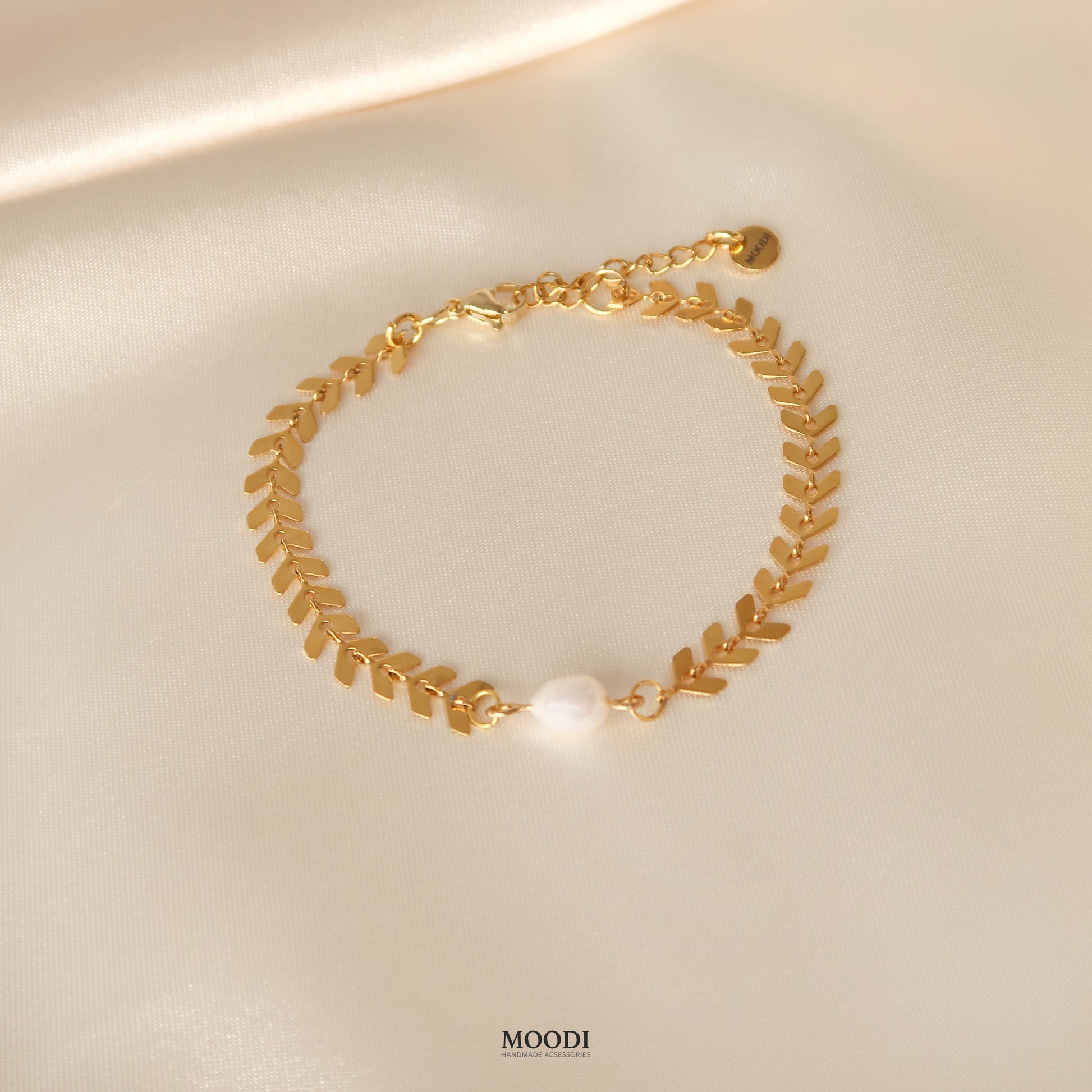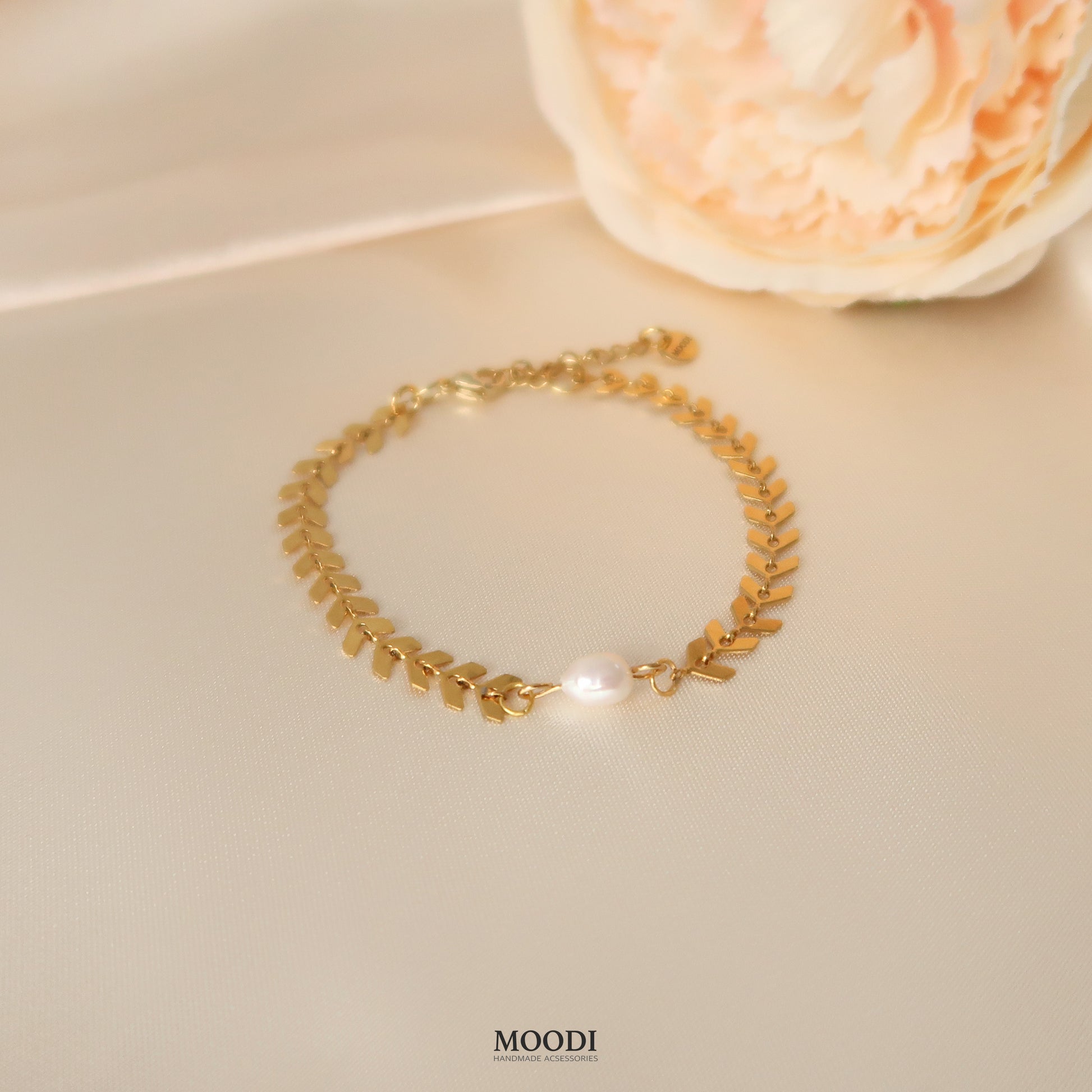 Гривна "Mika" с естественa перлa на синджир тип плетка от позлата 316L е бижуто коeто ще допълни вашата елегантност в работна, официална или по casual визия.