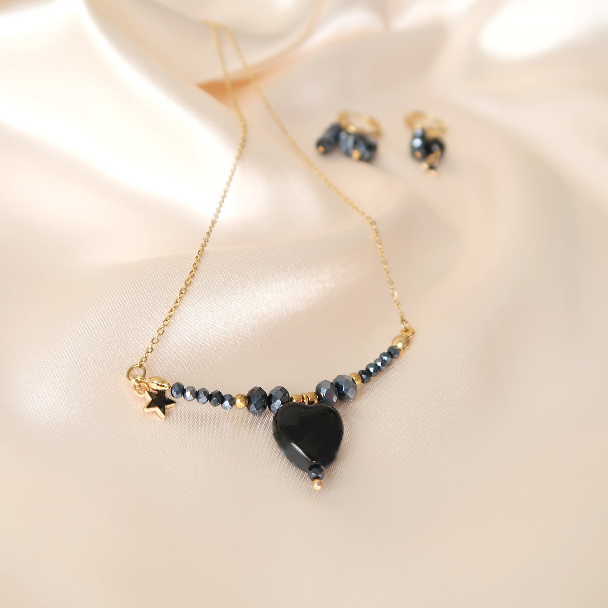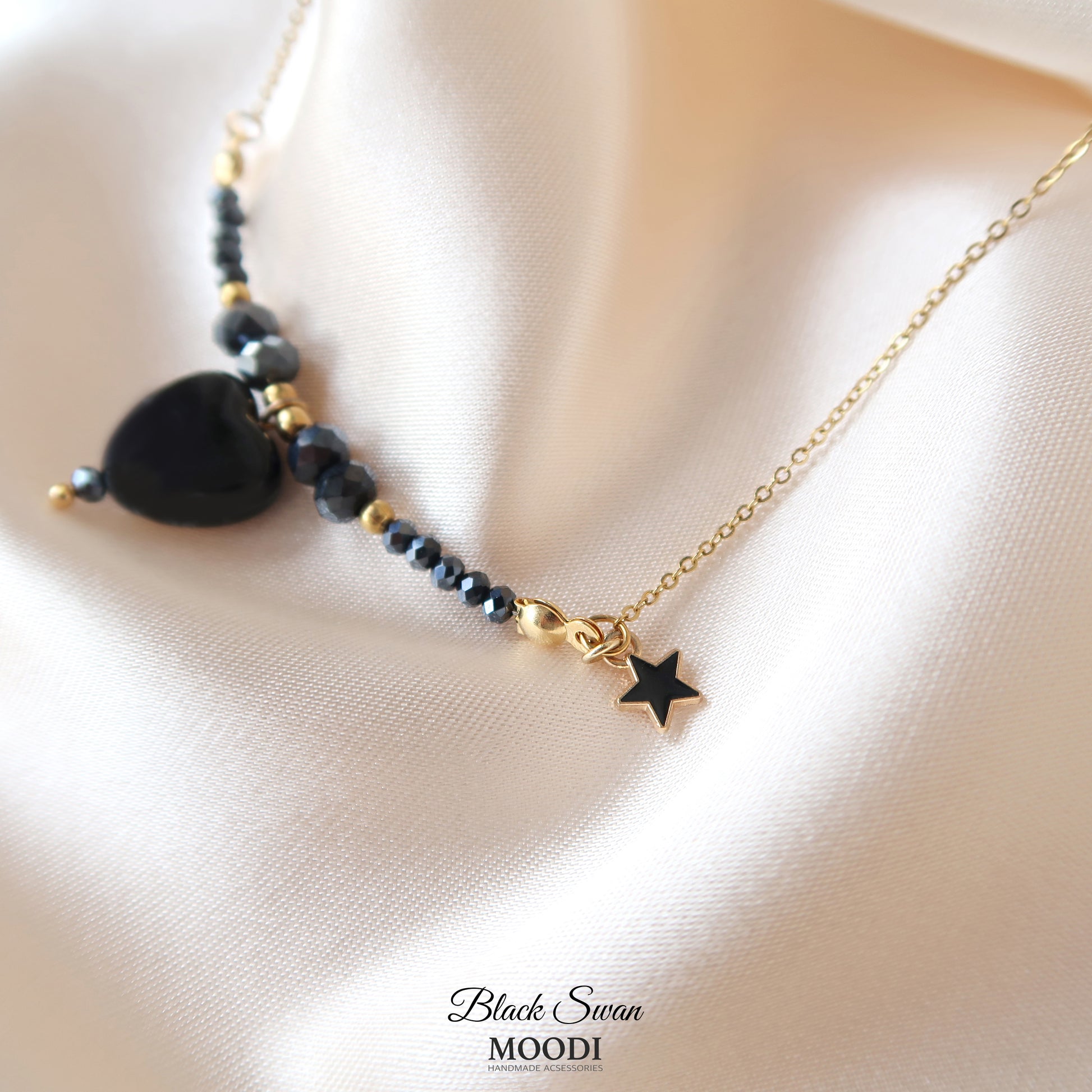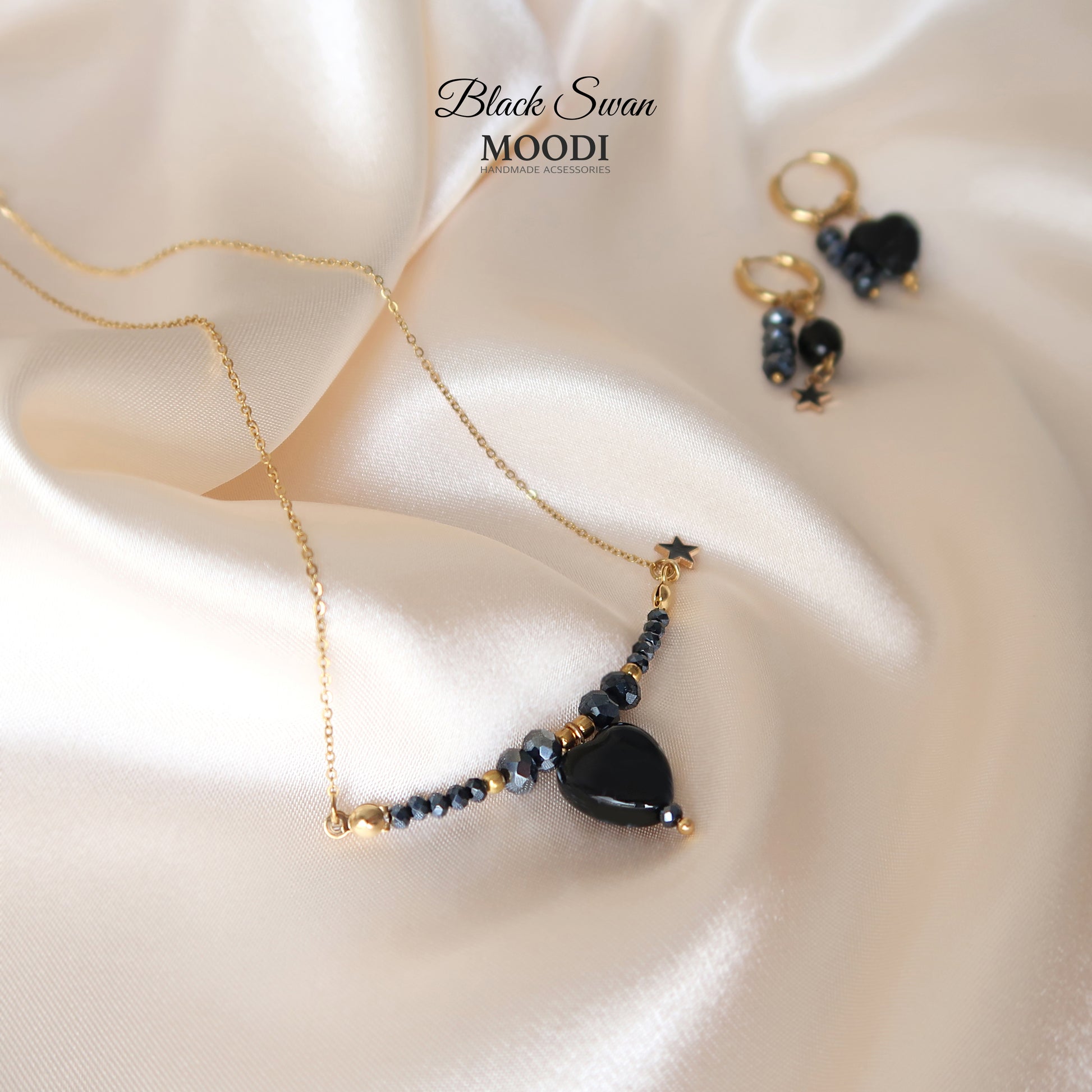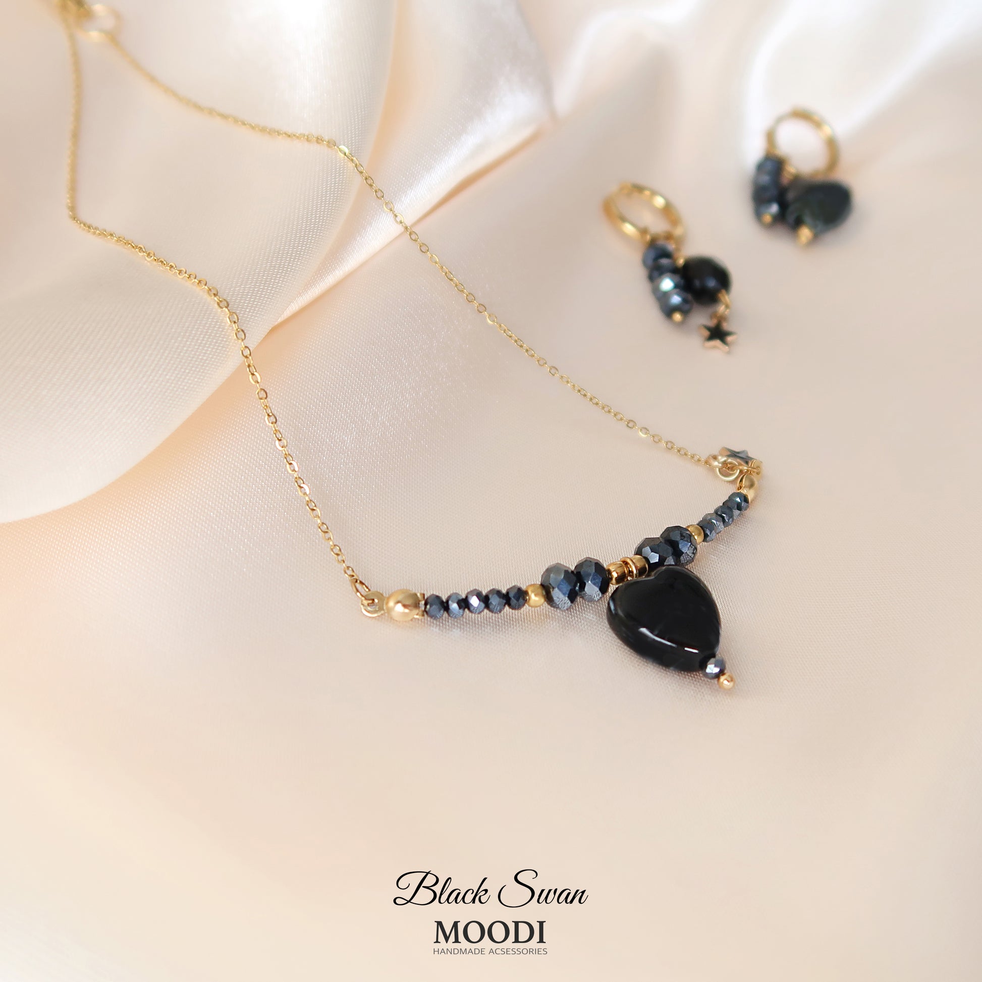 Нежно и бляскаво колие "Black Swan" привлича окото с различна и очарователна визия. Нежна 1,2мм верижка, красиви сиво-сини кристали и черно сърце - гарантираме ви, че това колие няма да остане незабелязано.