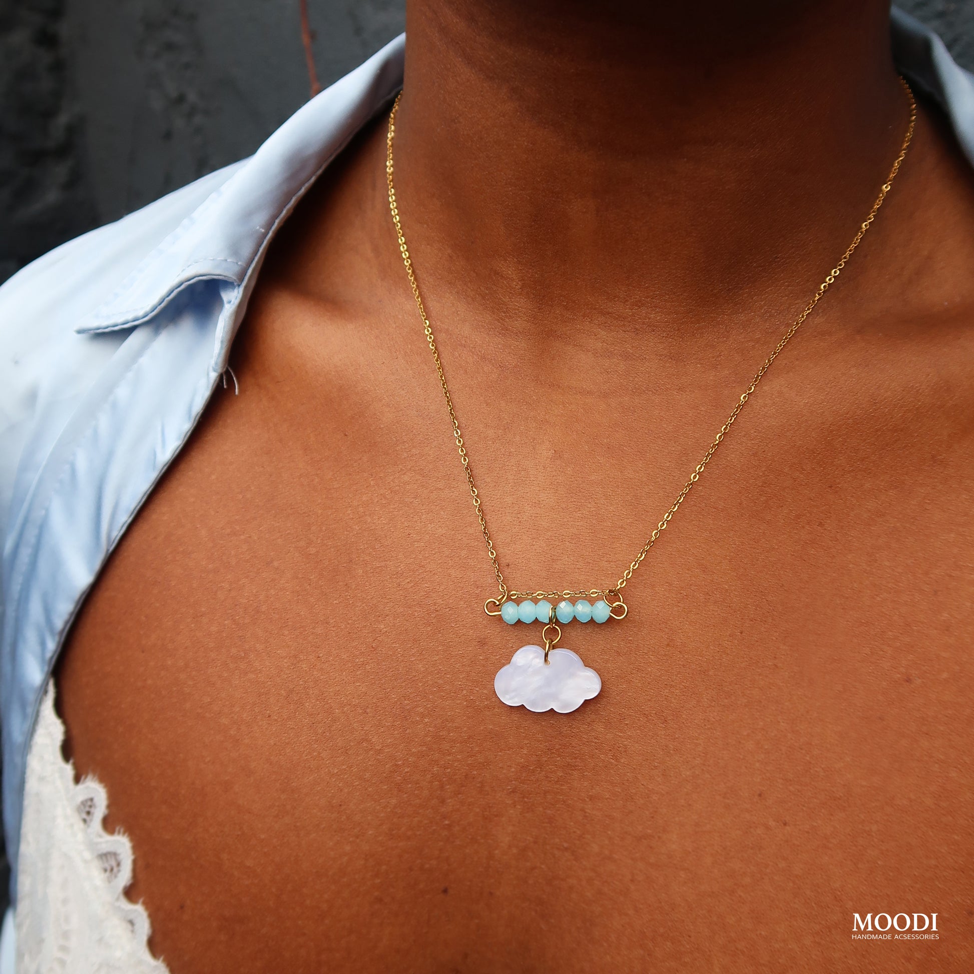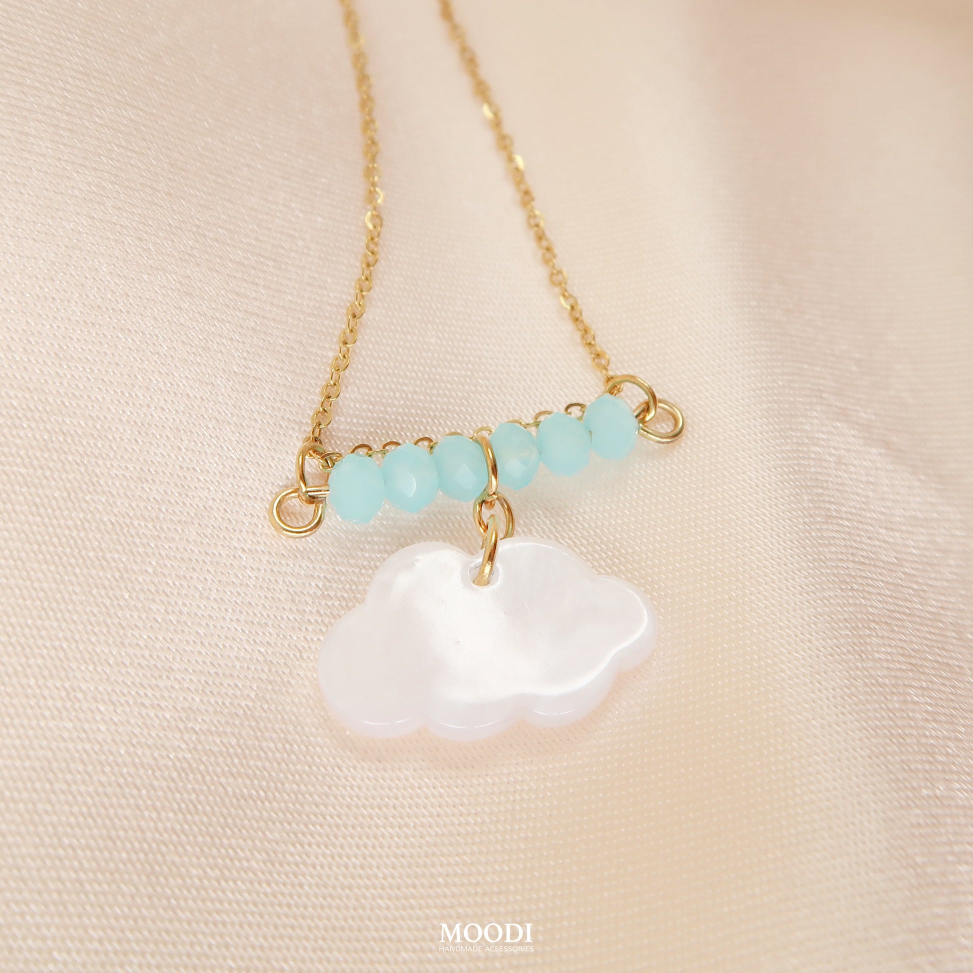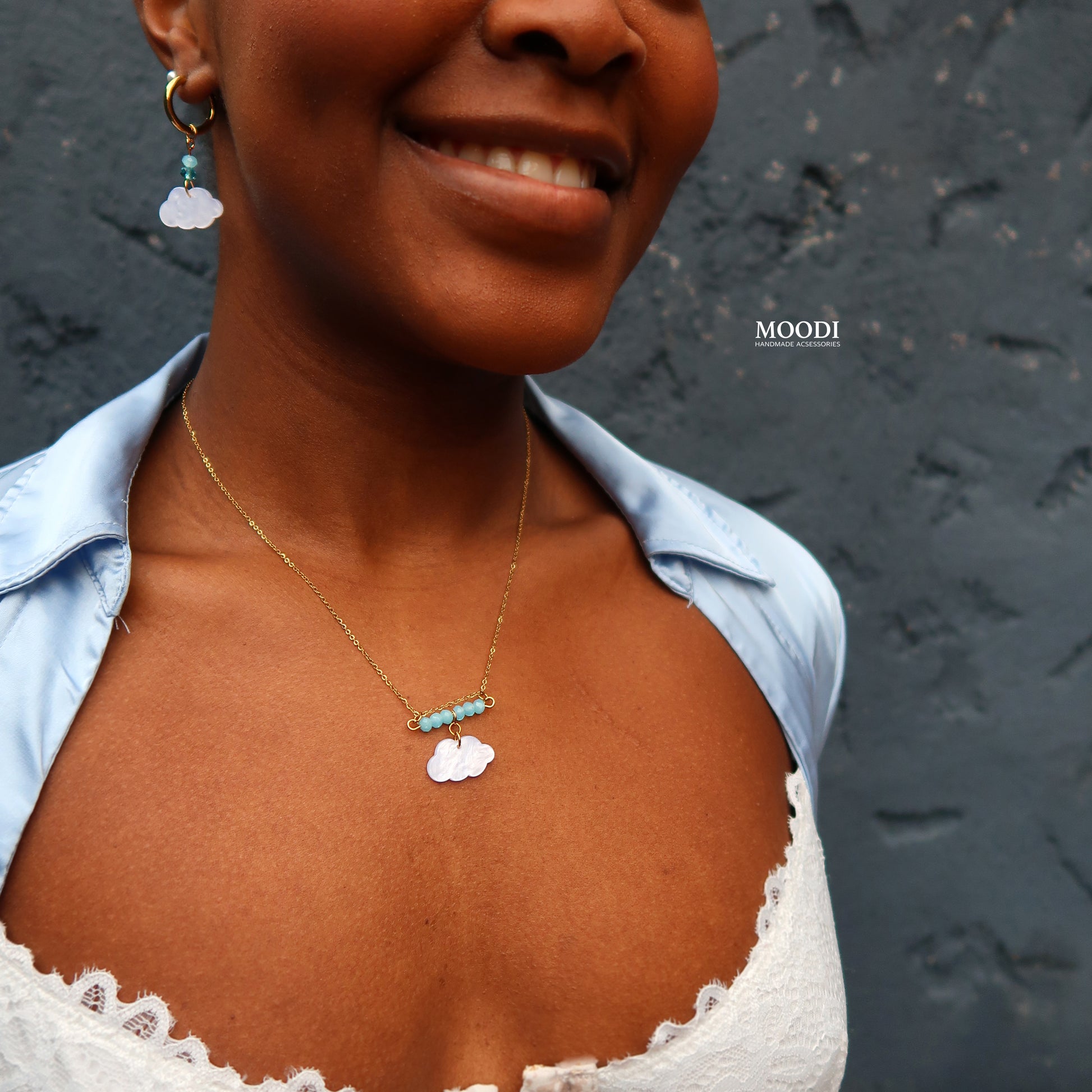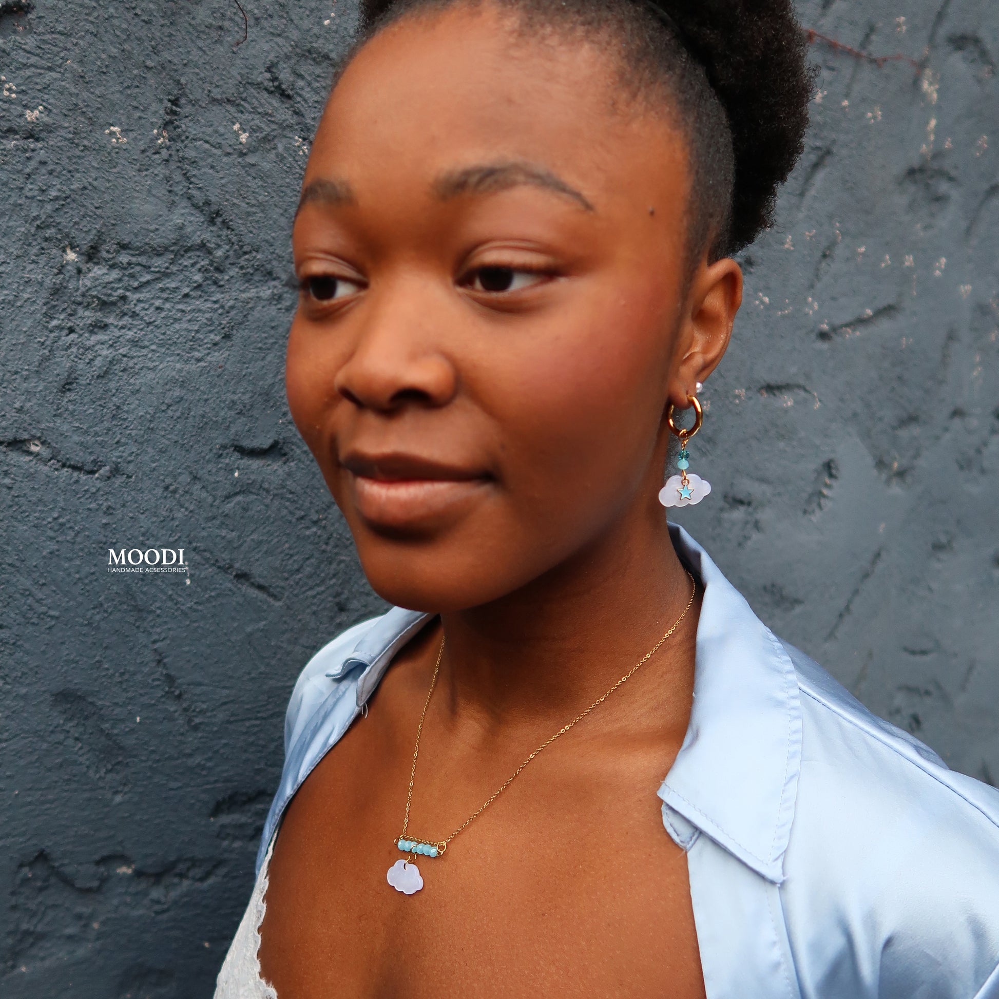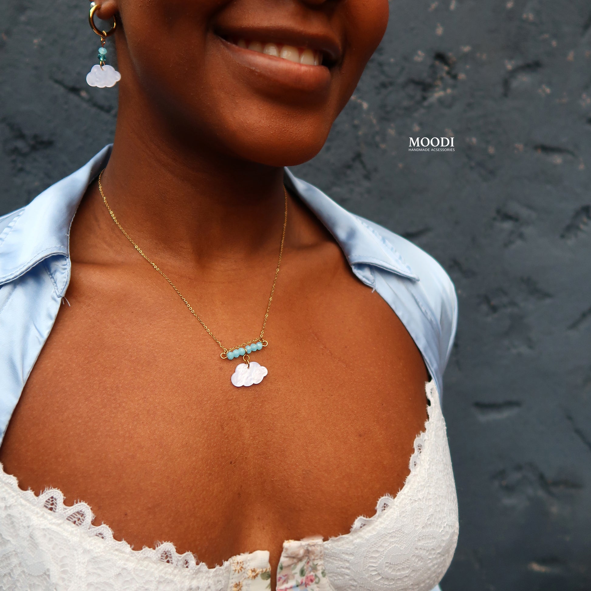 Обеци облачета от седеф и красиви сини мъниста стъклени мъниста. Обеците са от неръждаема медицинска стомана - хипоалергенни и водоустойчиви