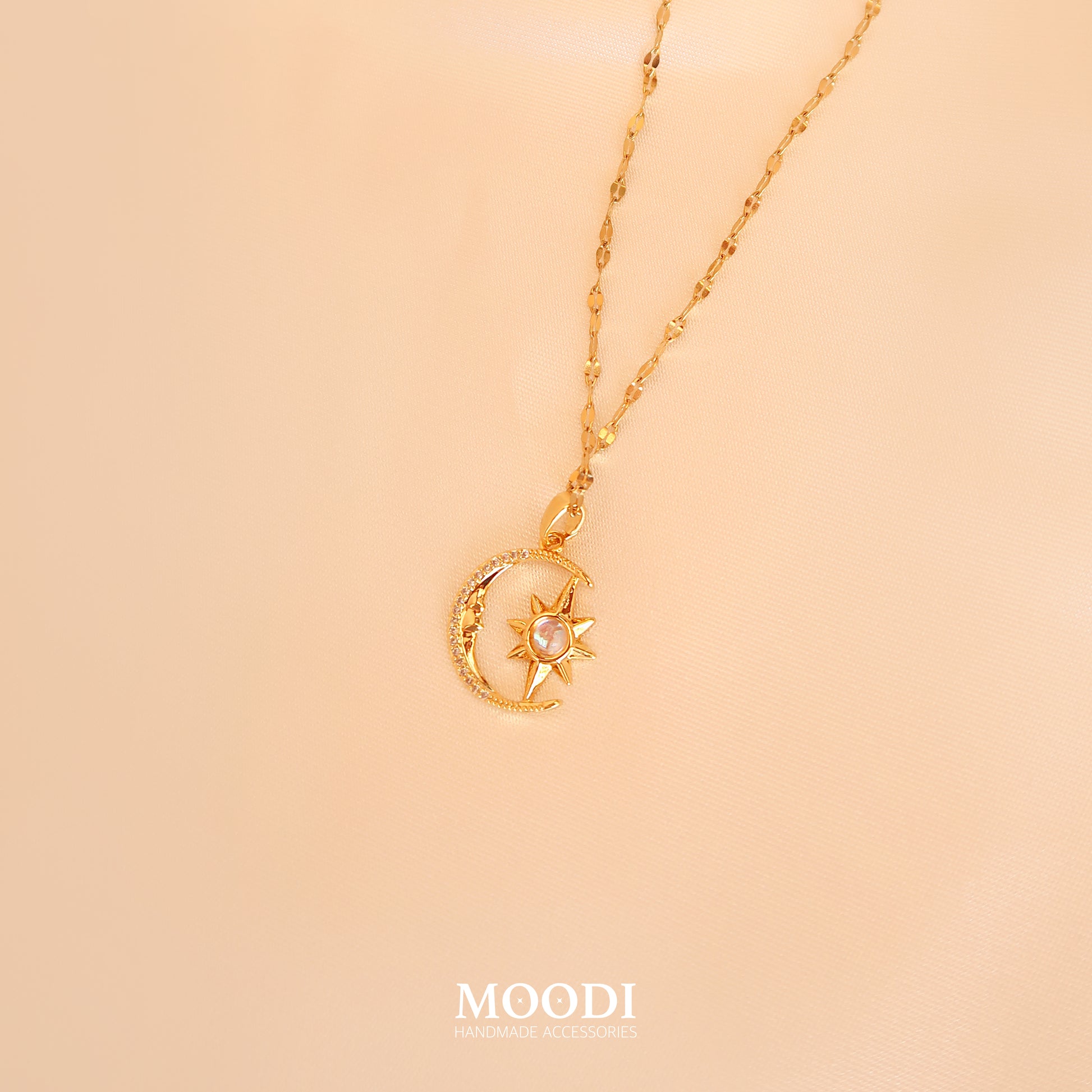 Красиво колие луна и звезда за което е акцентиран красим малус лунен камък.