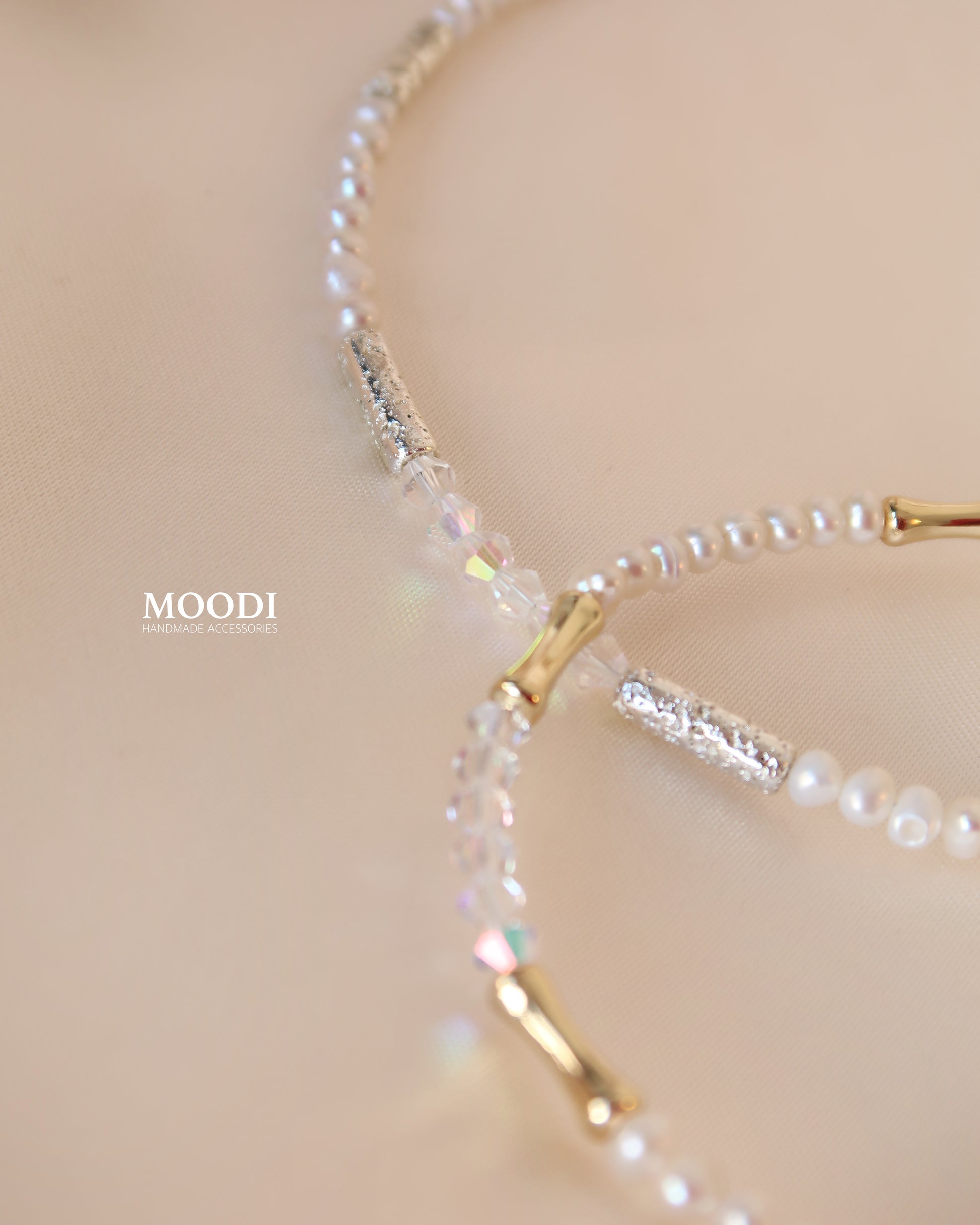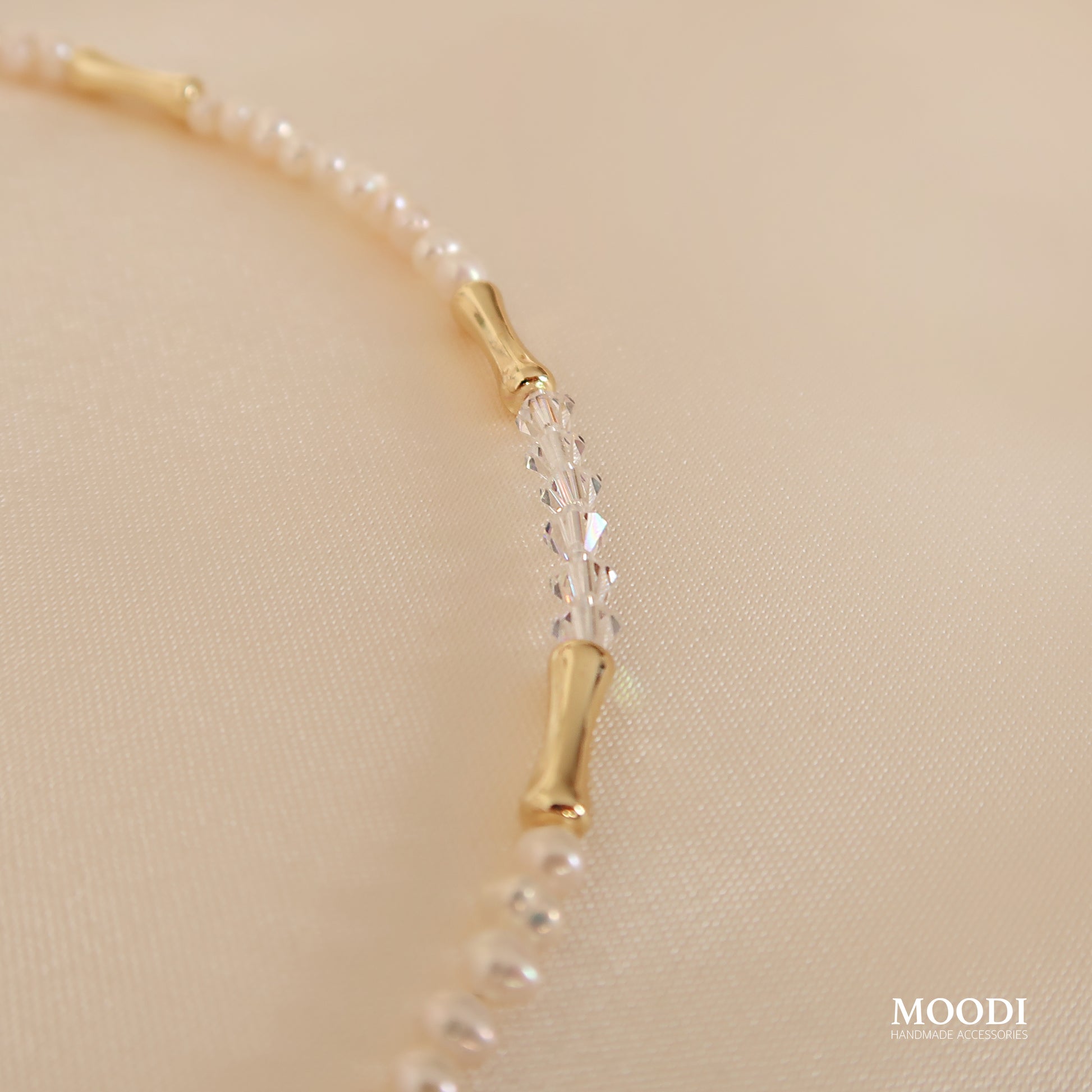 - Материал: Естествени сладководни перли 3х3,5мм / Кристали swarovski / 14к позлатени елементи