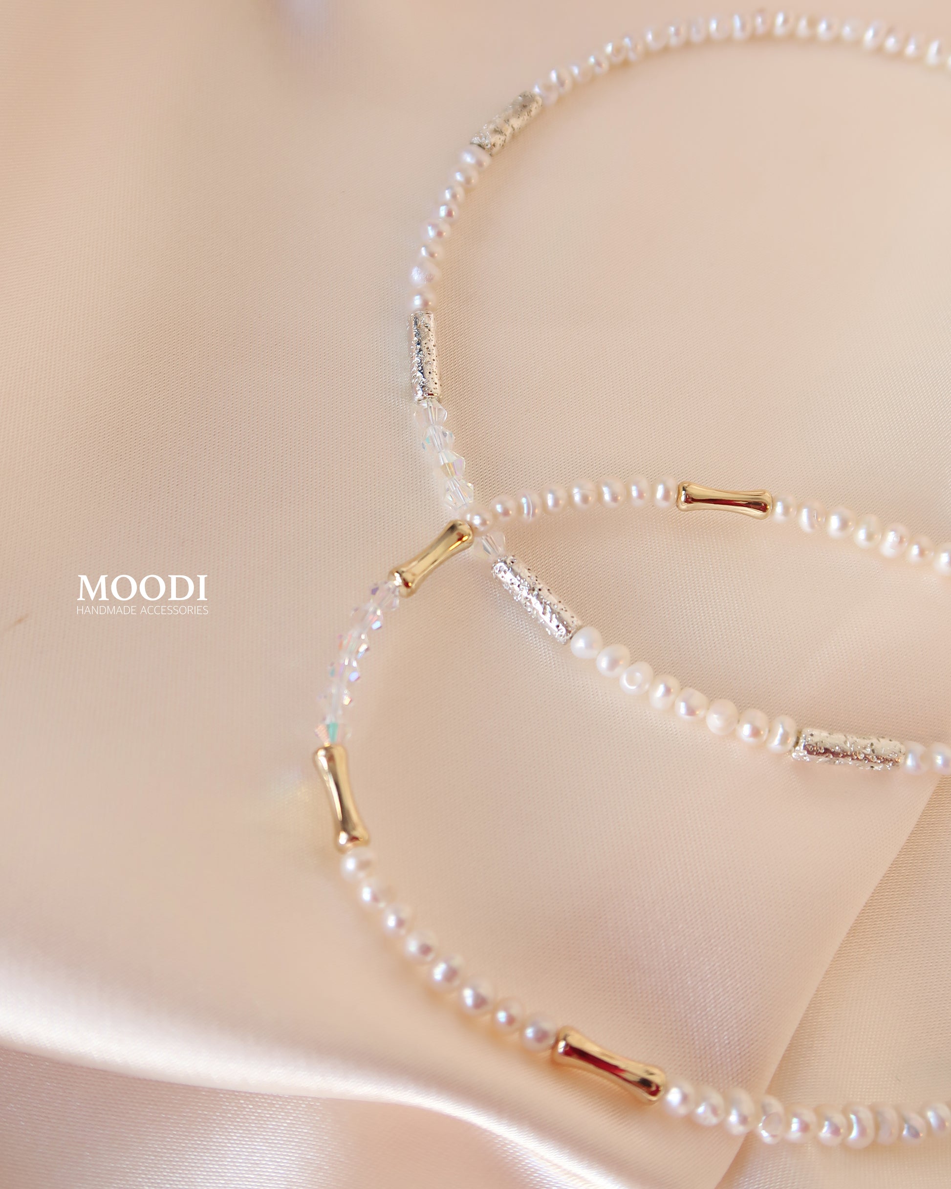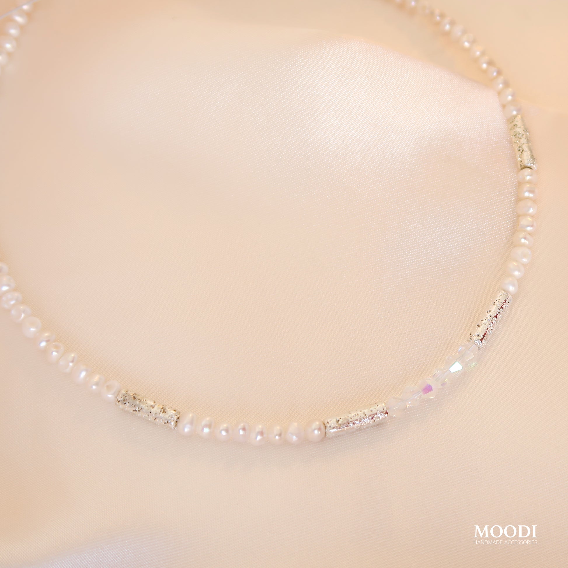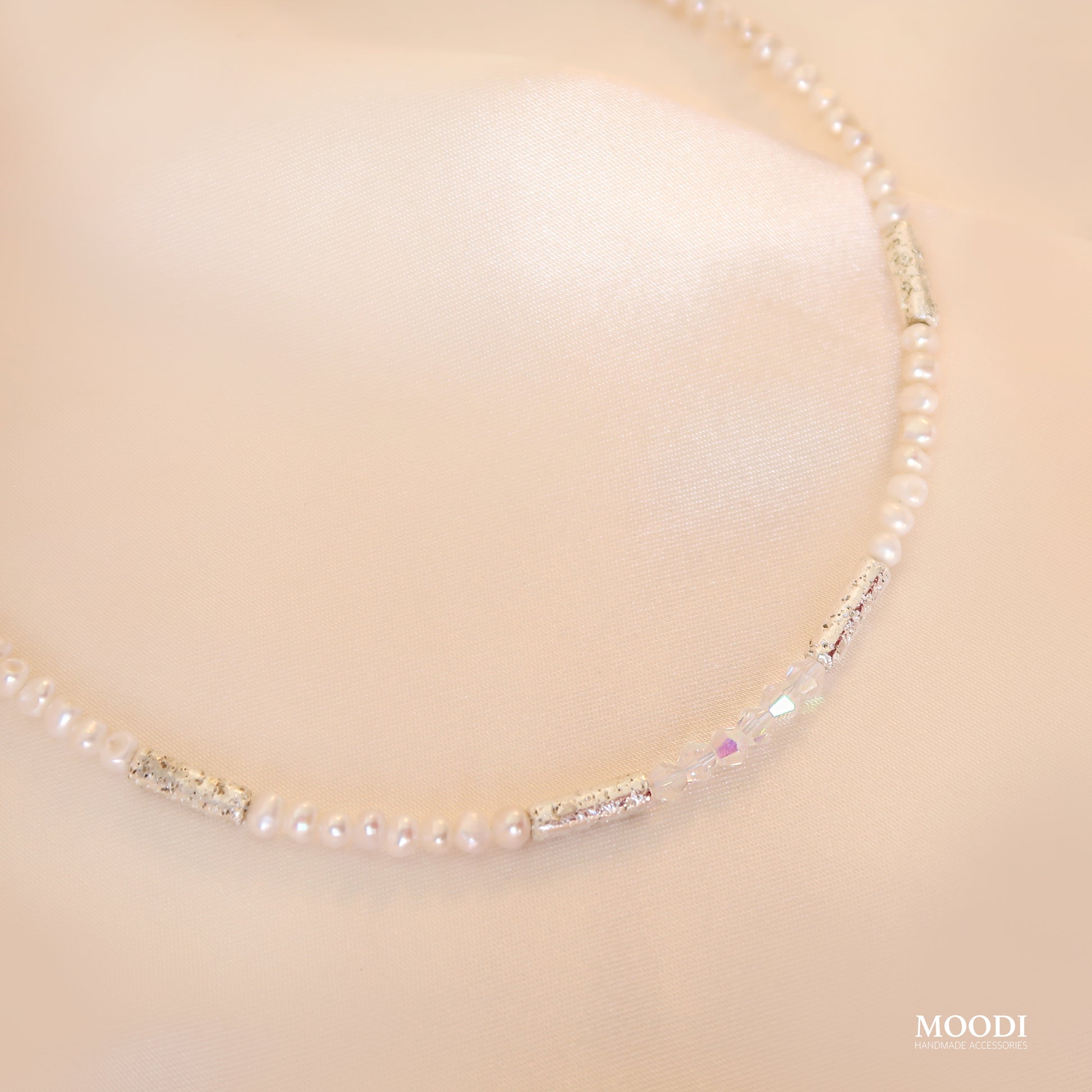 С колие "Bella" около врата ви ще блестят изискани перли, нежно обгърнати от 14К позлатени елементи, които добавят нотка на изисканост и лукс. За допълнителен блясък, съм добавила и искрящи кристали Preciosa, които улавят светлината и създават неповторима игра на цветове.