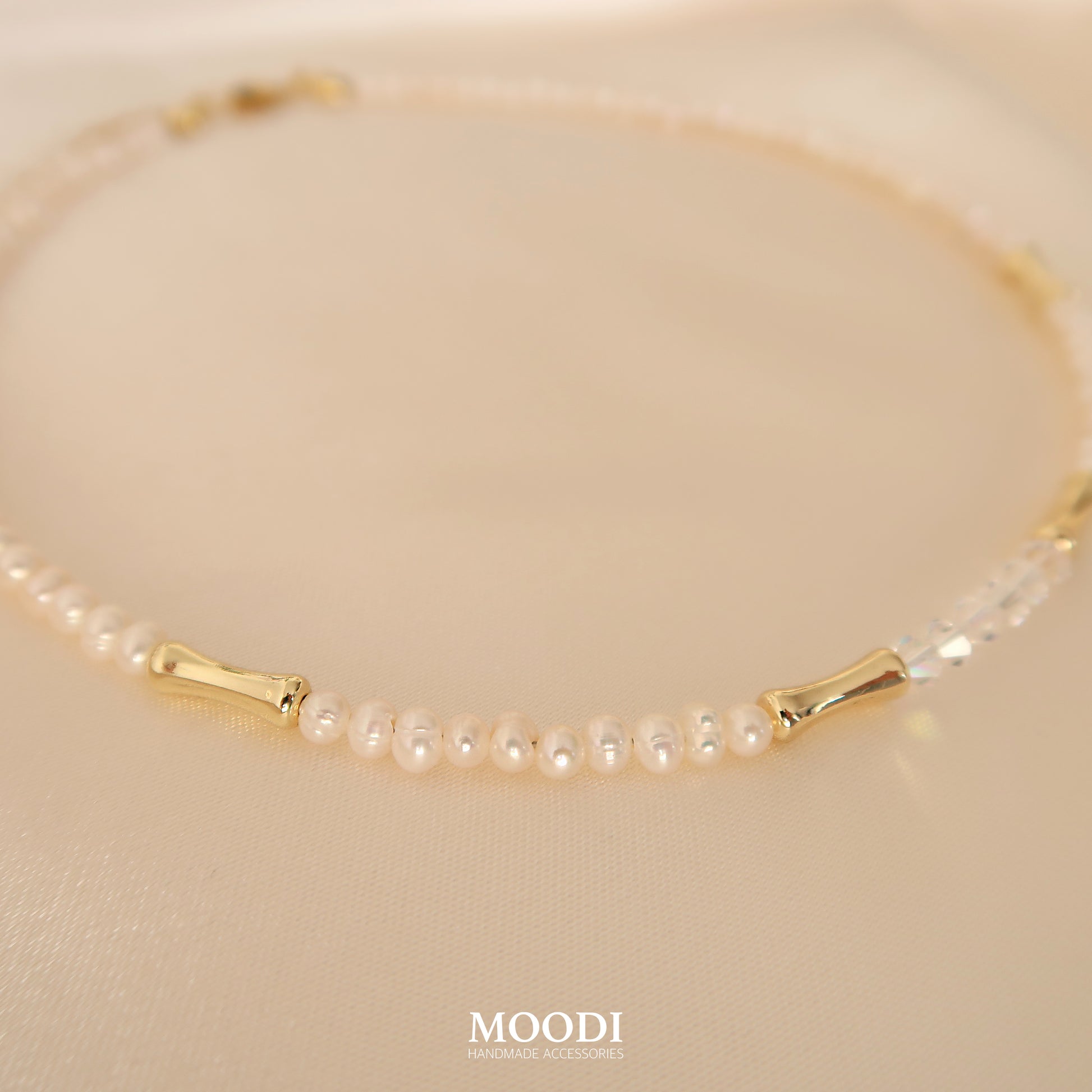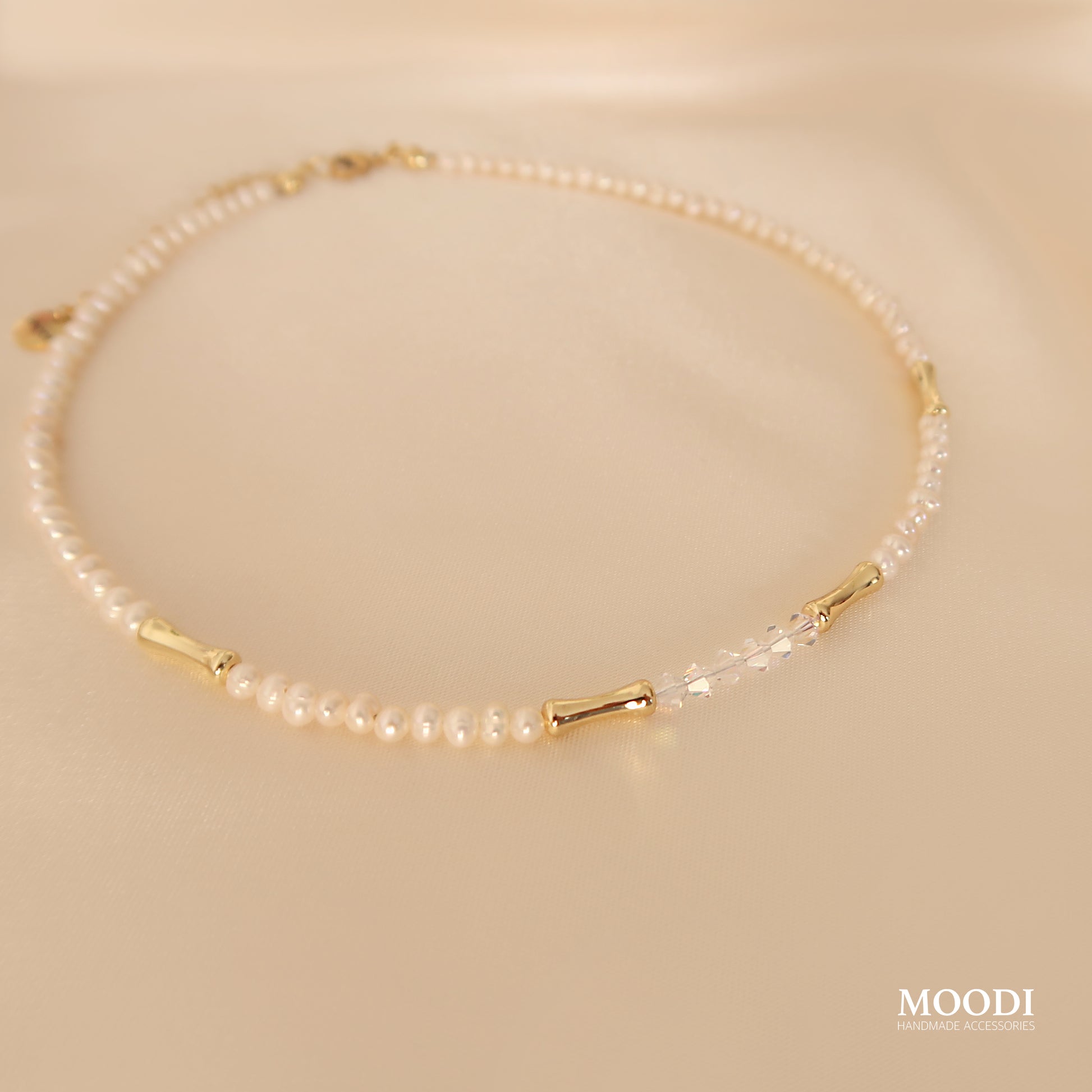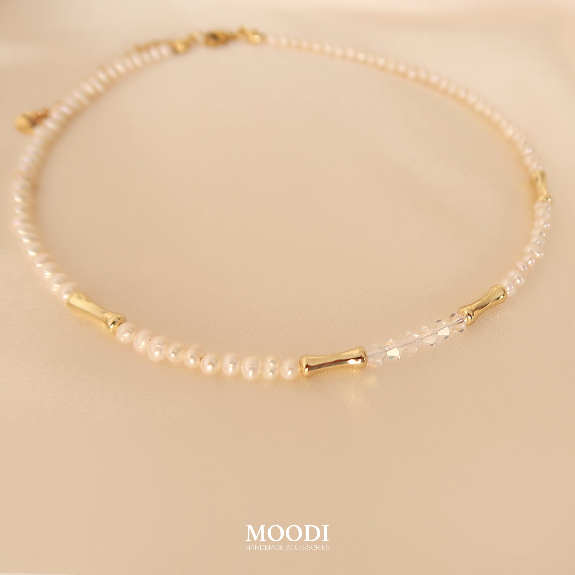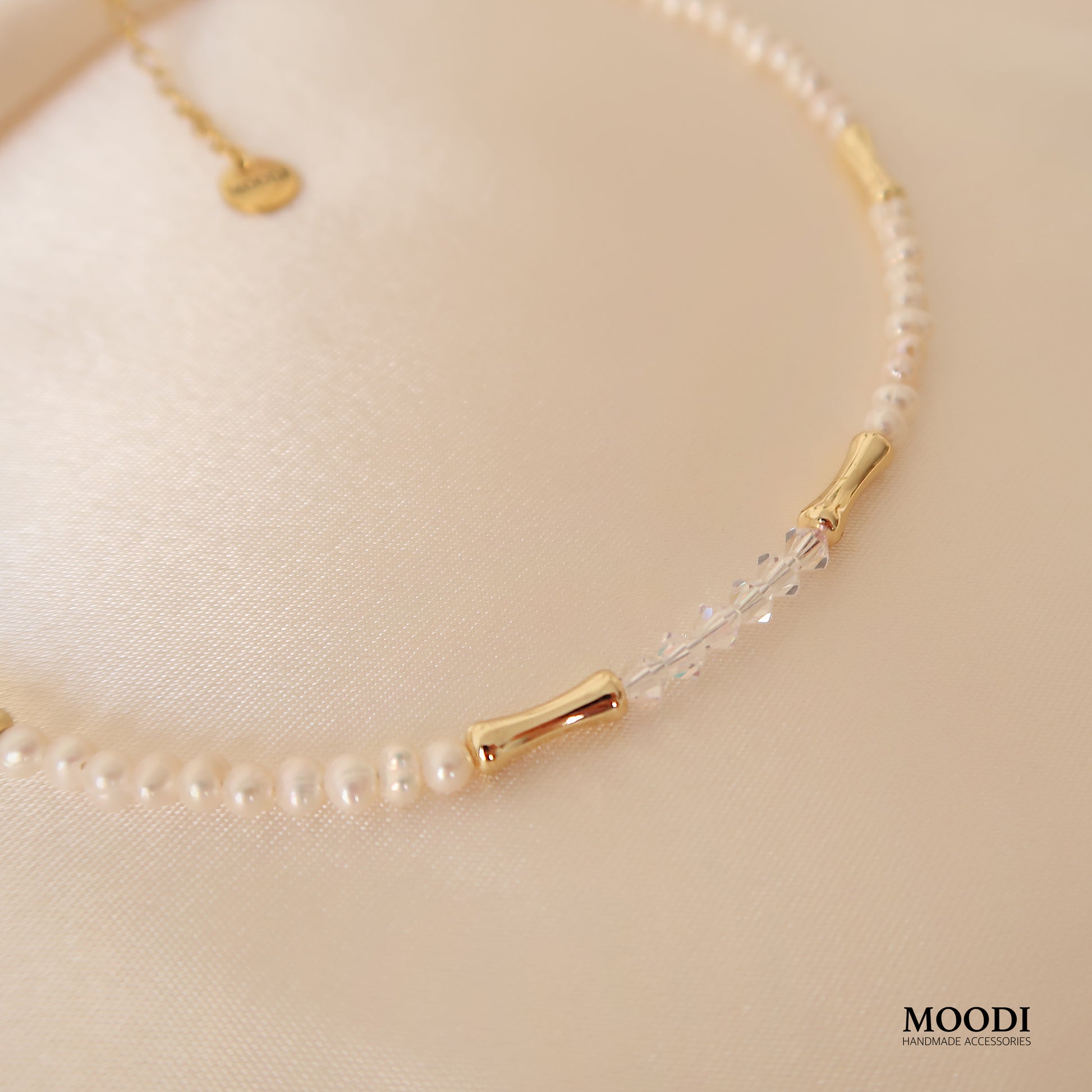 Колие "Bella" перли и 14k позлатени елементи и Swarovaski Кристали