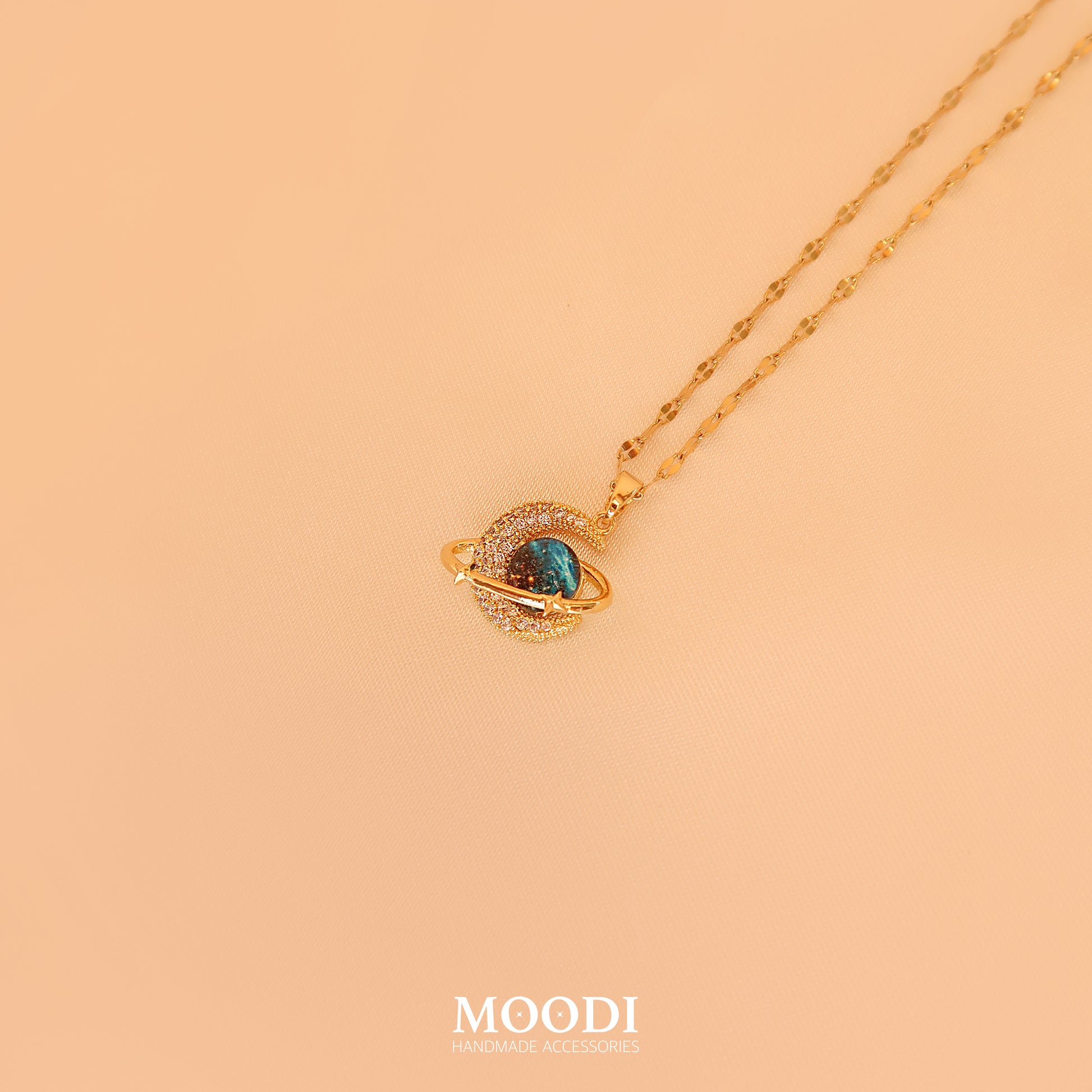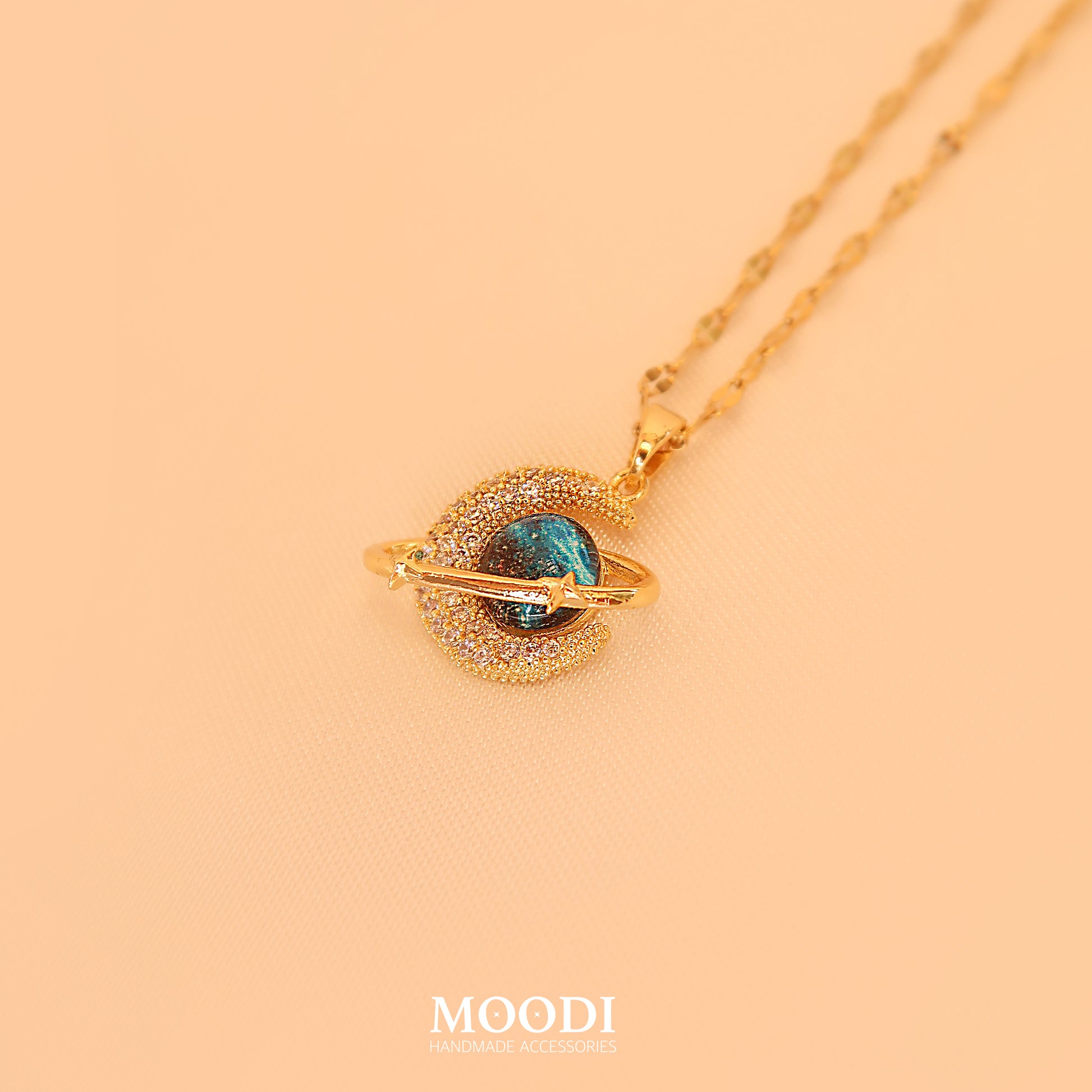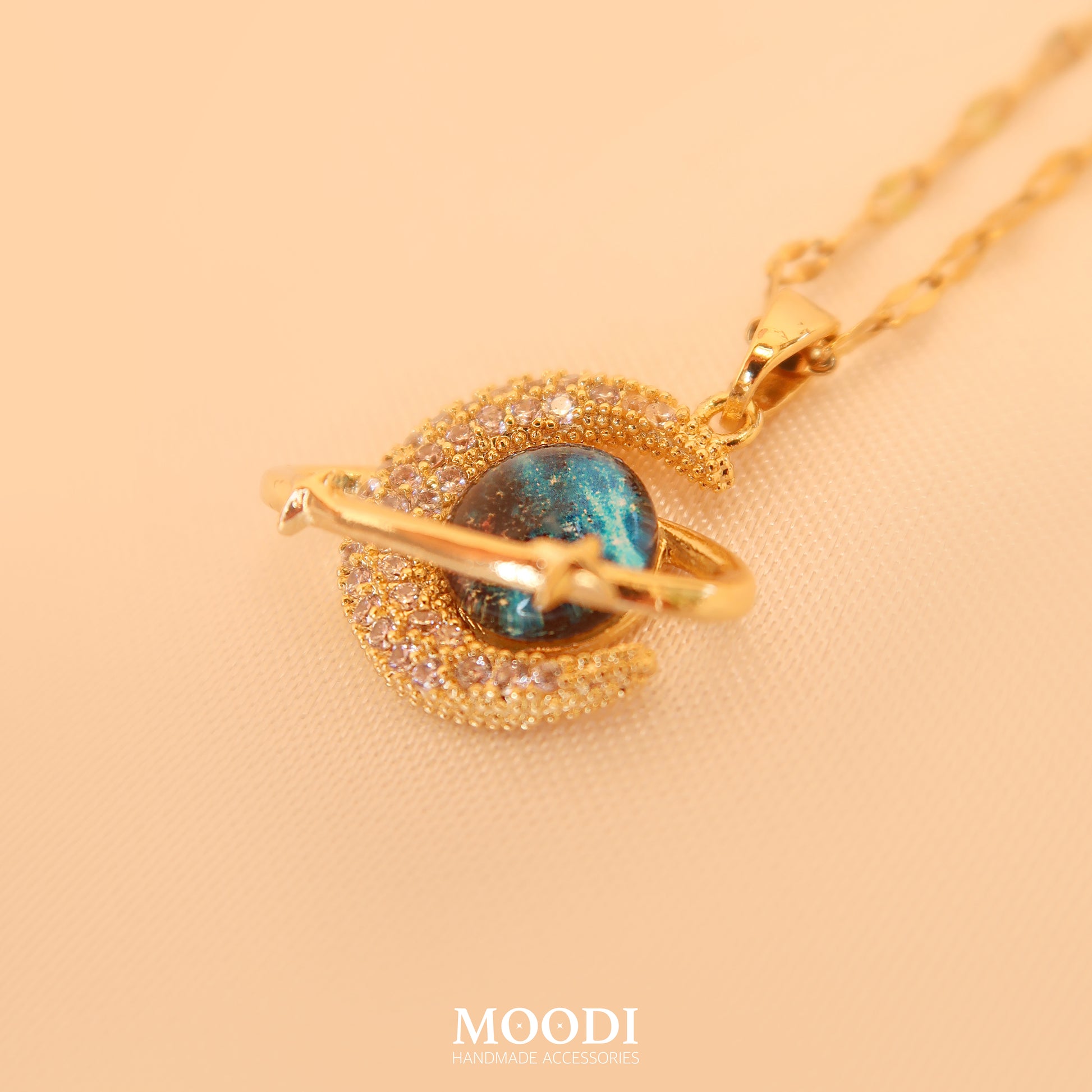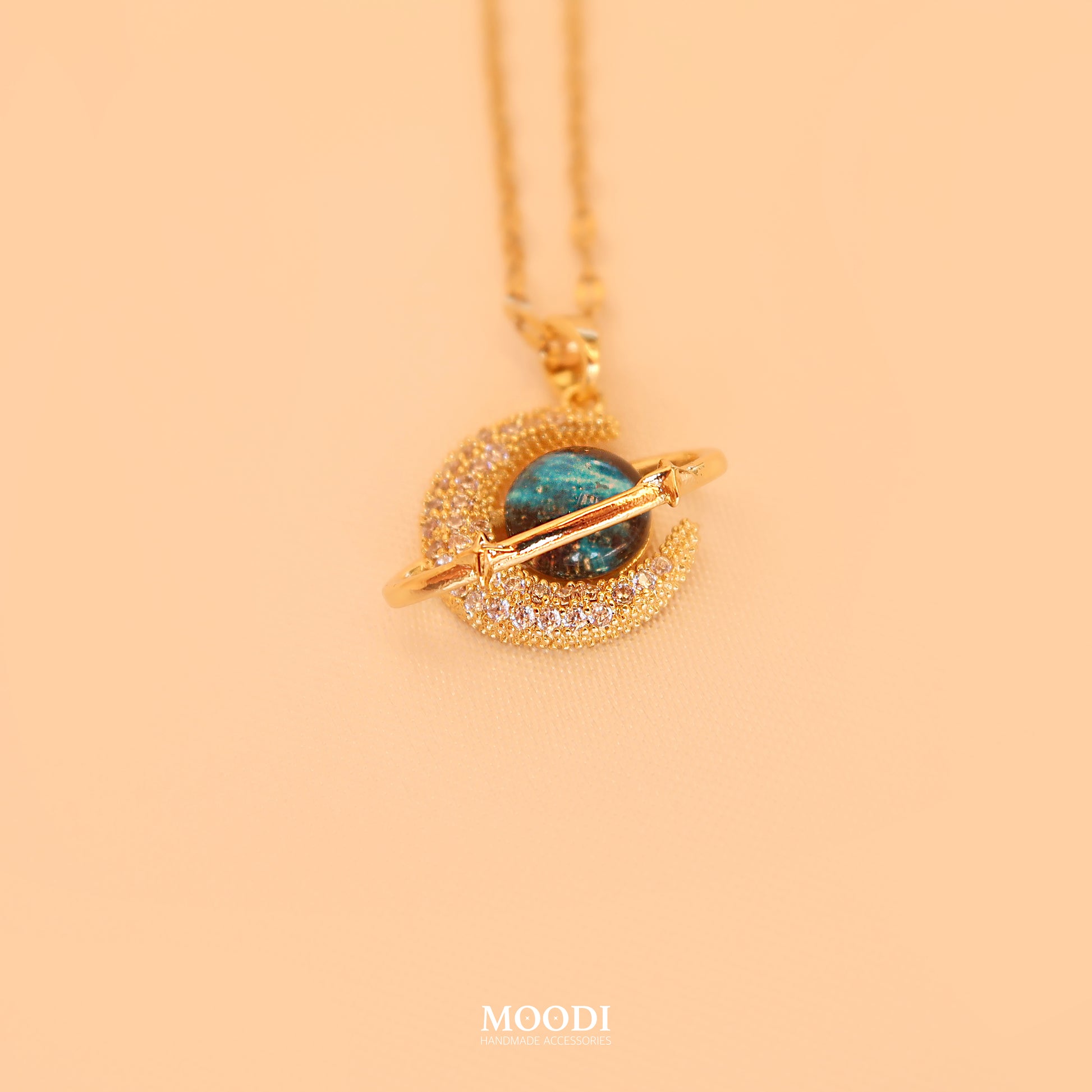 Магическо колие с бляскава форма земя и красиви циркониеви камъчета.