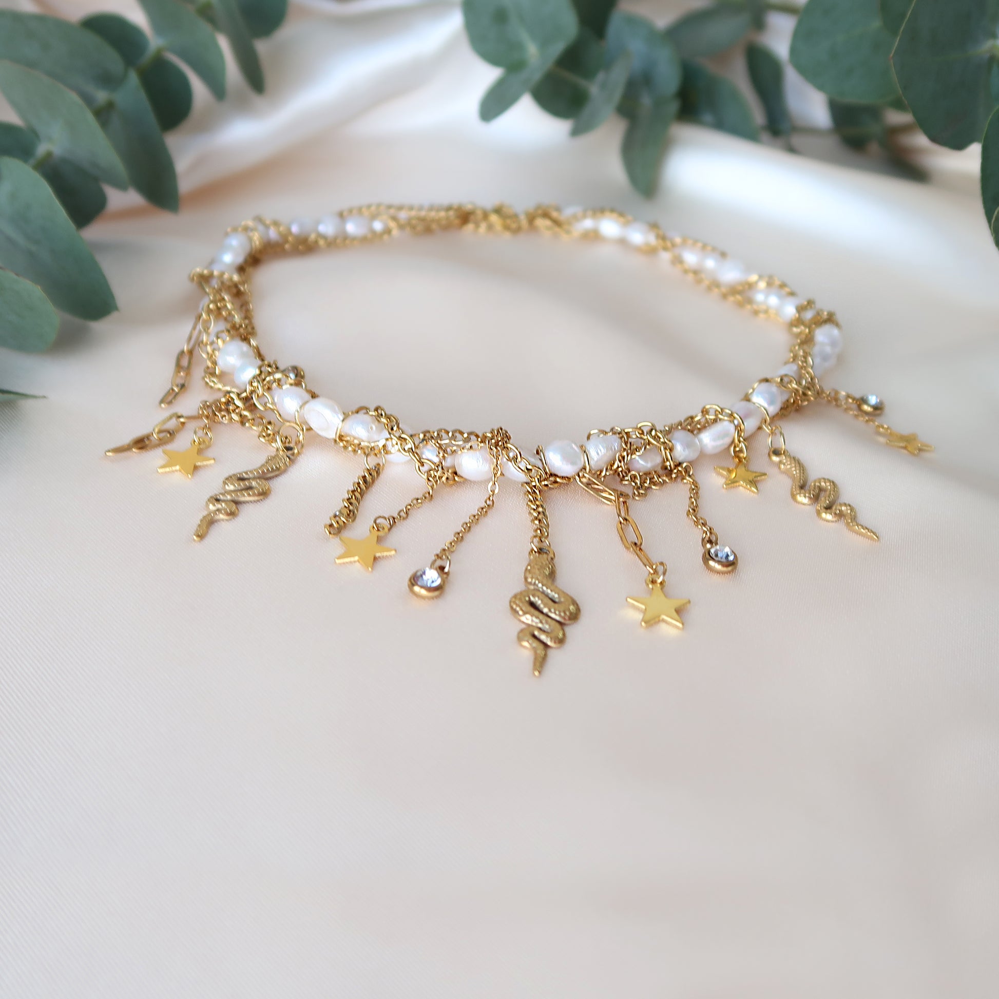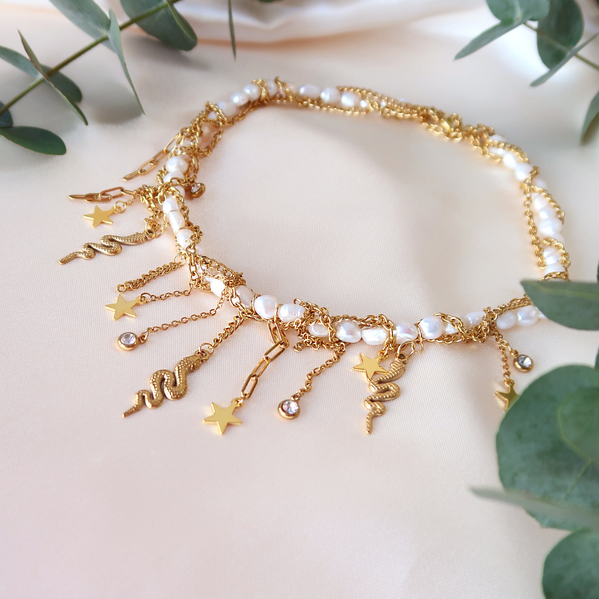 Ръчно изработено колие "Nāga" впечатляващо и с характер. Гарантира забележителна визия и стилно излъчване.
