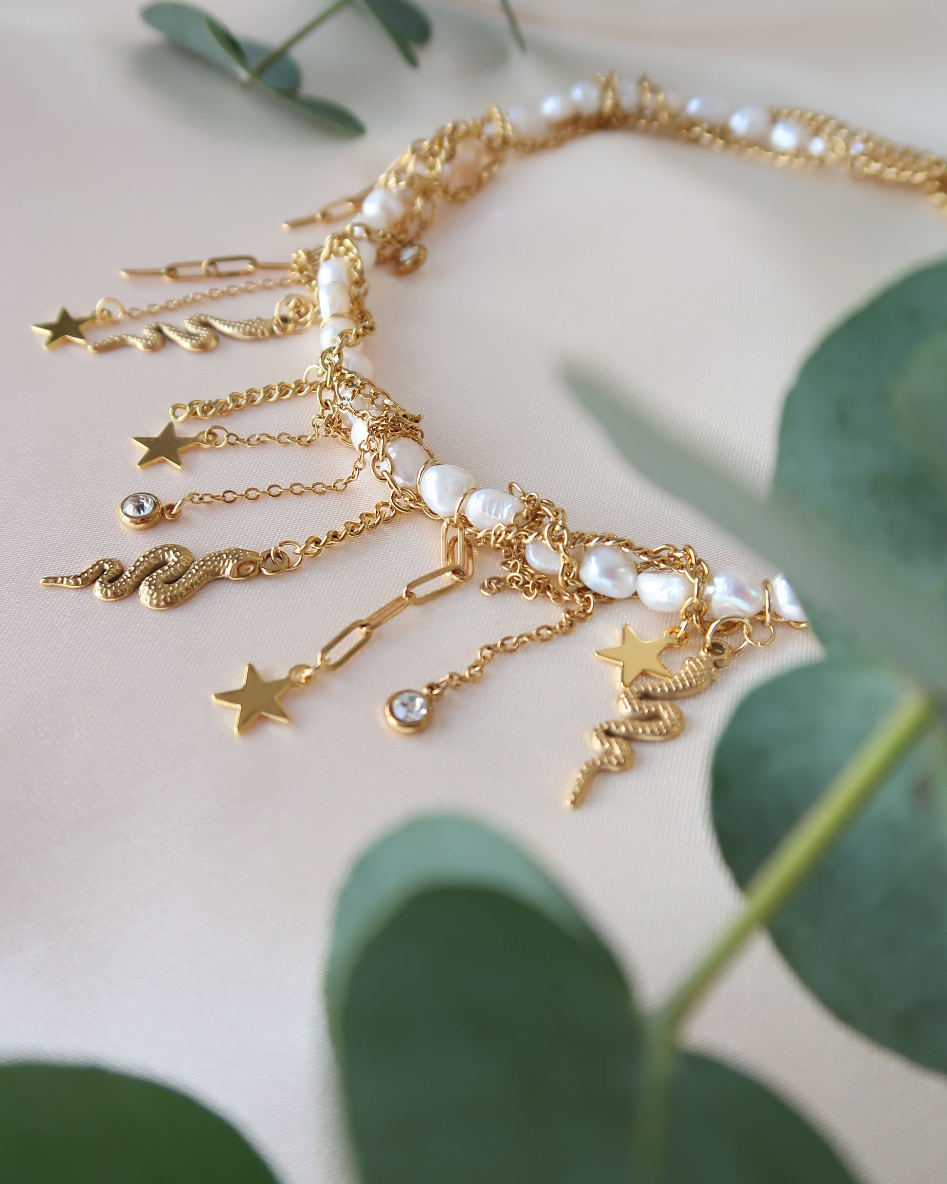 - Висулки / змии / звезди / и малки циркониеви камъни / - Позлатена стомана