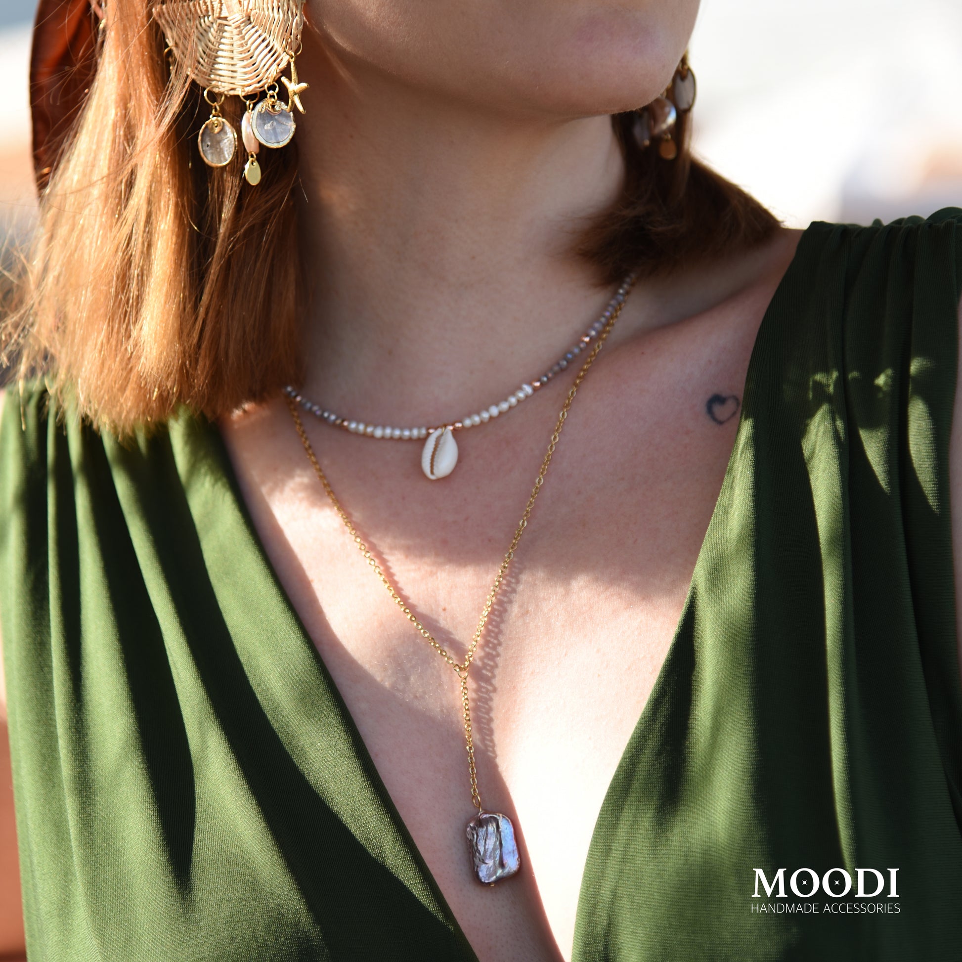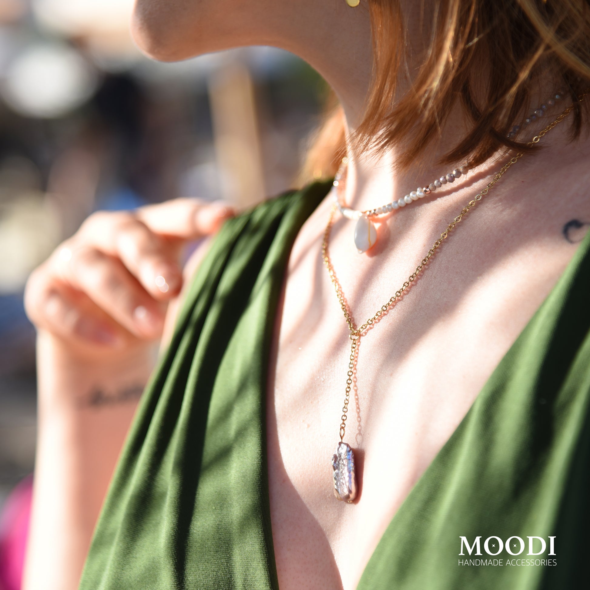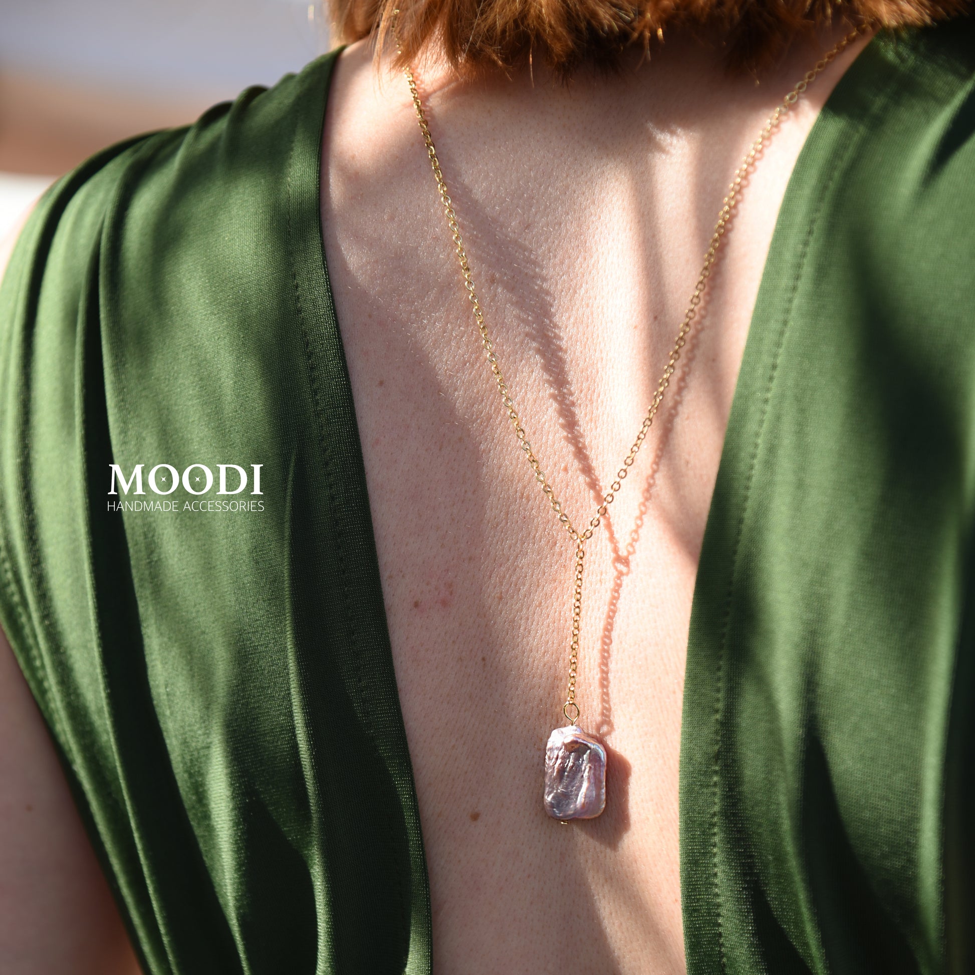 - Материал: Дълго колие с една красива висококачествена Барокова перла / Позлатена Стомана верига