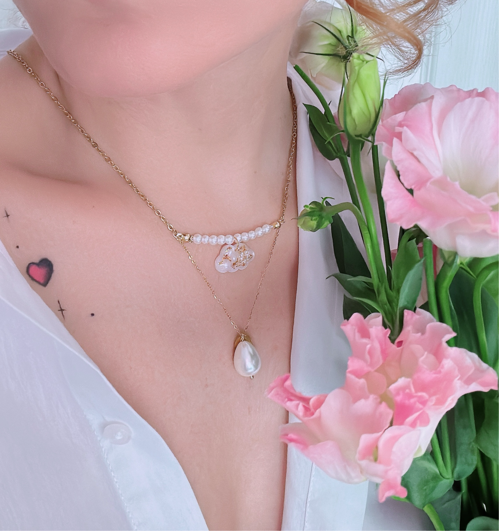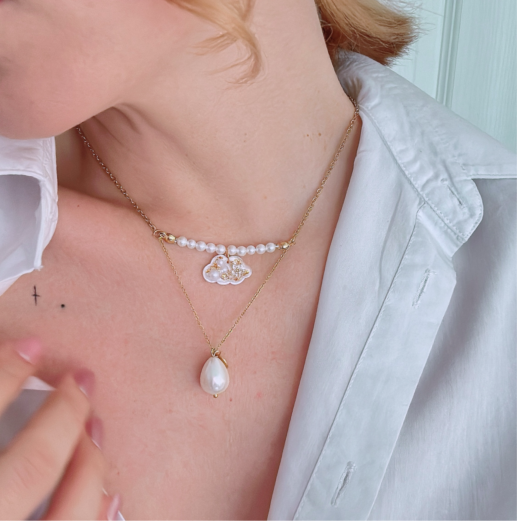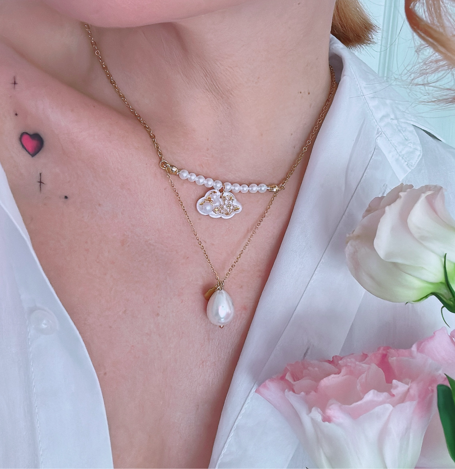 - Материал: Перла майорка, седефен облак с перли и циркониеви камъни на стоманен синджир