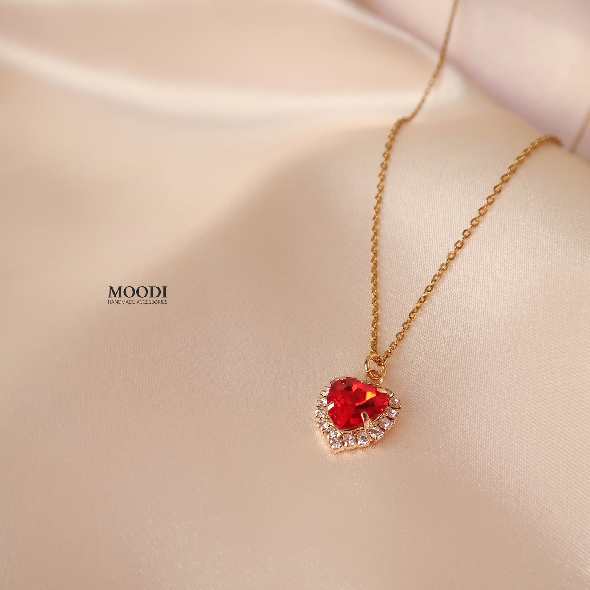 - Верижка от медицинска стомана клас 316L с интересна форма/ Висулка сърце от кристали и циркониеви камъни