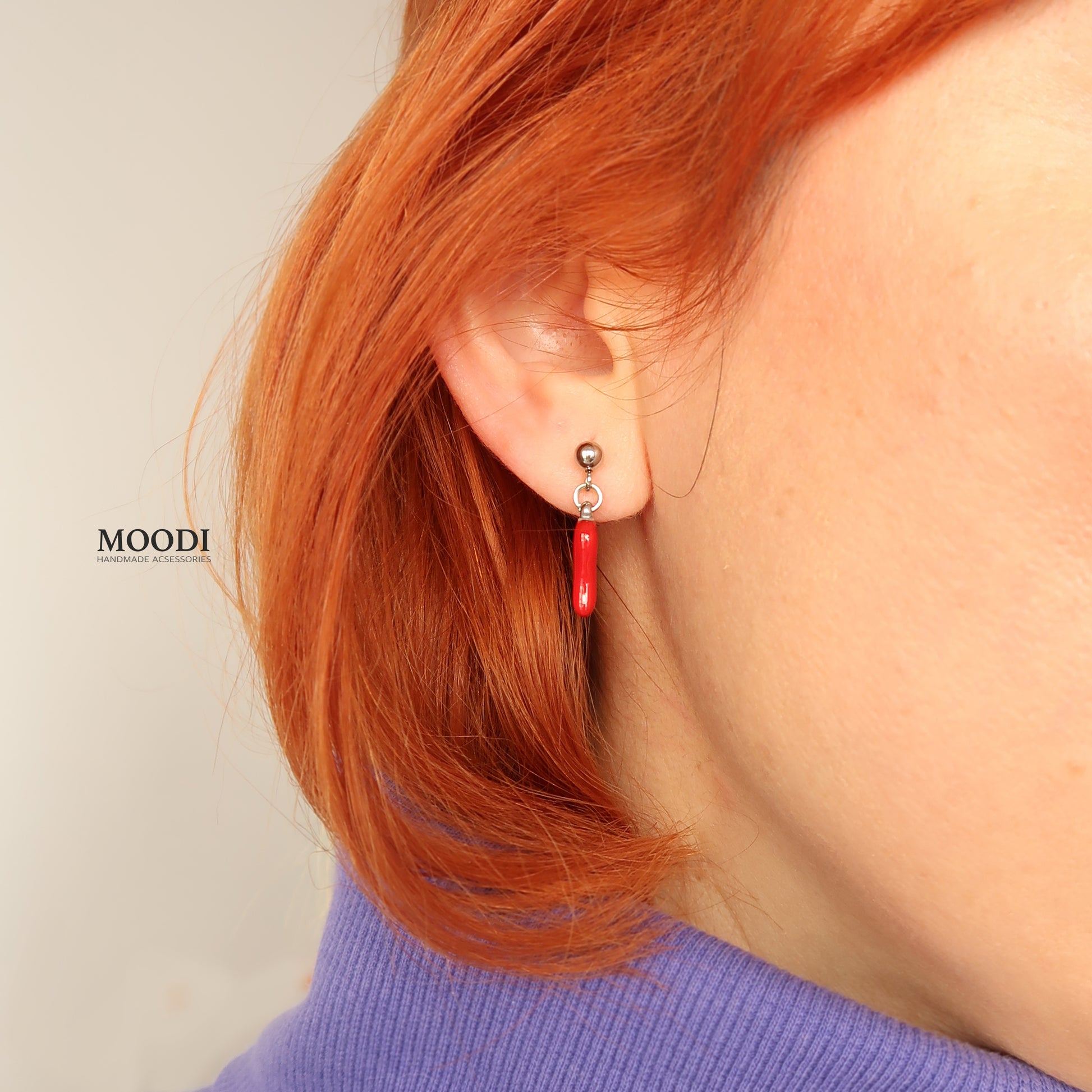 Време е да си лютиво гореща! Привлекателни обеци с червени чили чушки. Комбинация, създадена за любов от пръв поглед.