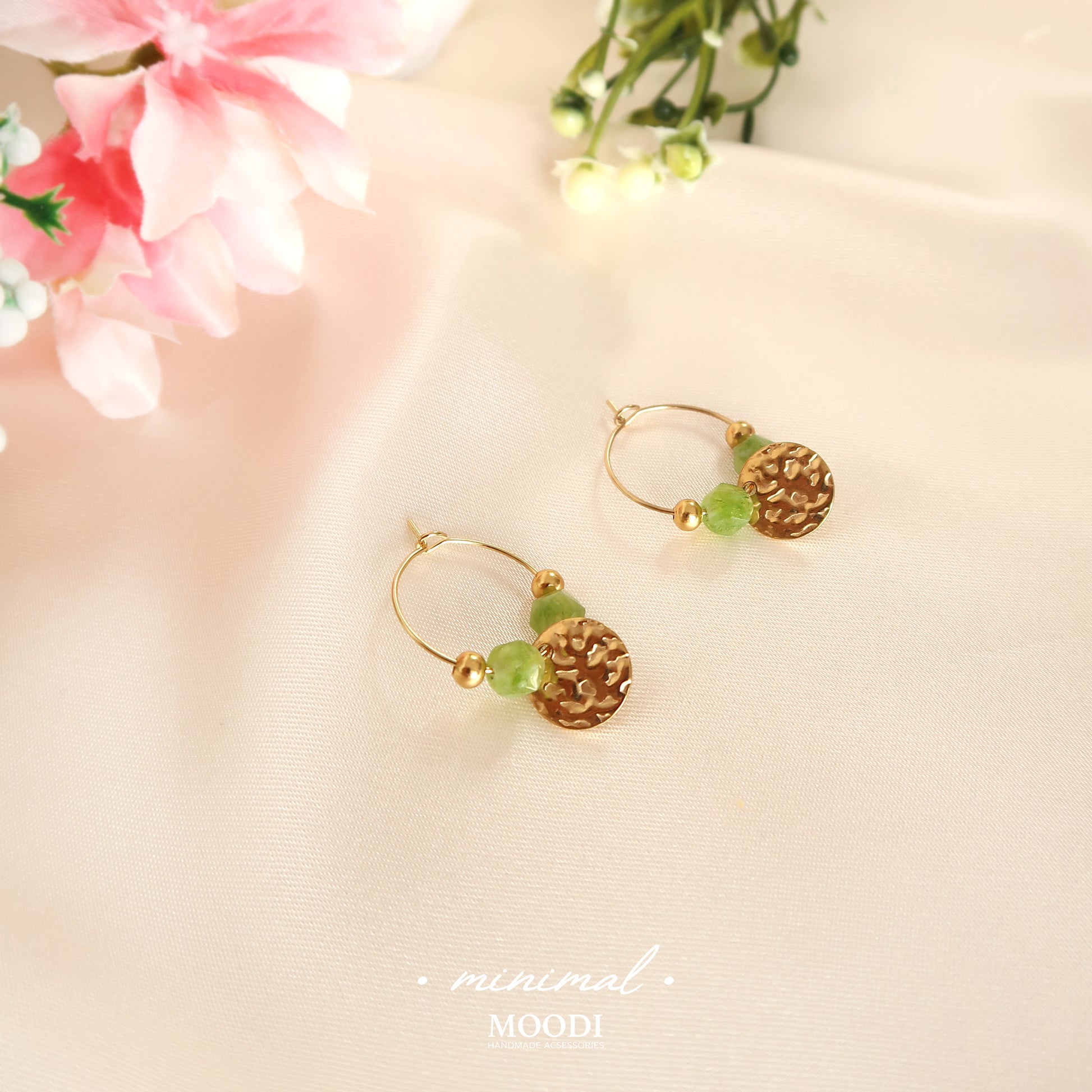 - Материал: Обеци висулки медицинска стомана клас 316L, Естествени камъни зелен нефрит
