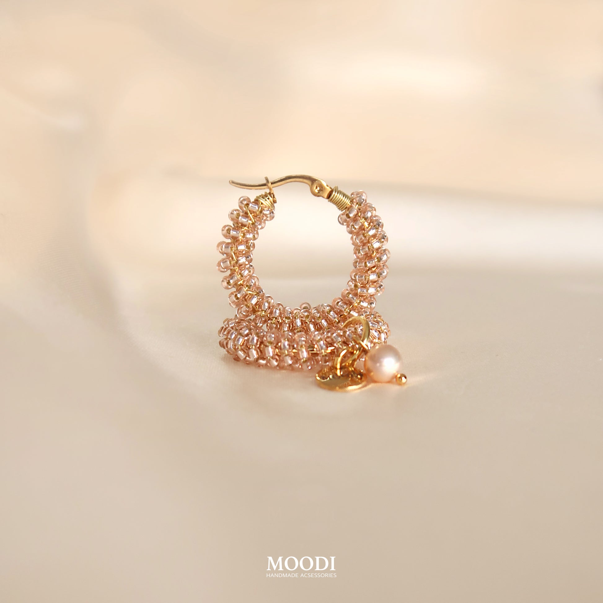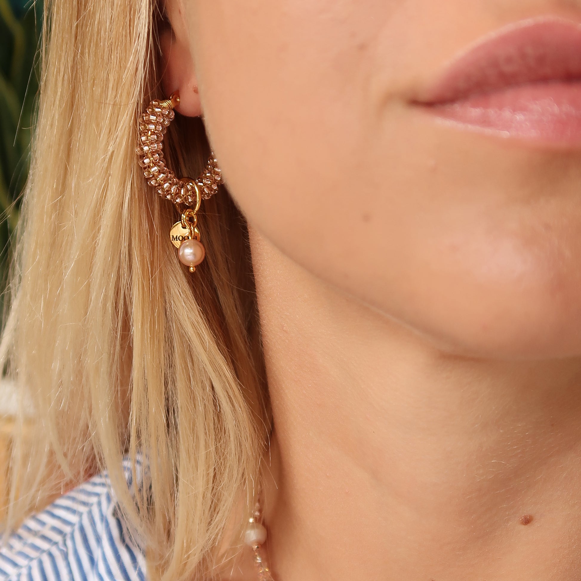 - Мъниста Miyuki в цвят кафе лате с делитакет блясък + прекрасна висулка бежава естествена перла