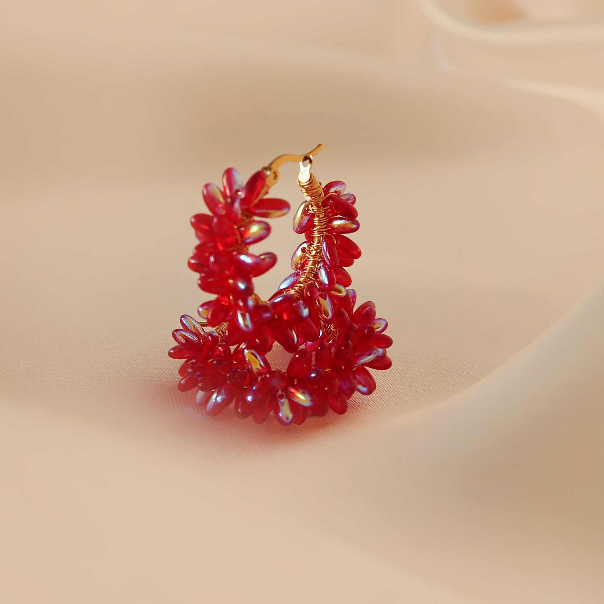 Прекрасни бляскави червени обеци. Чудесен начин да зарадвате ваш любим човек или да се откроите с индивидуален стил с тях.