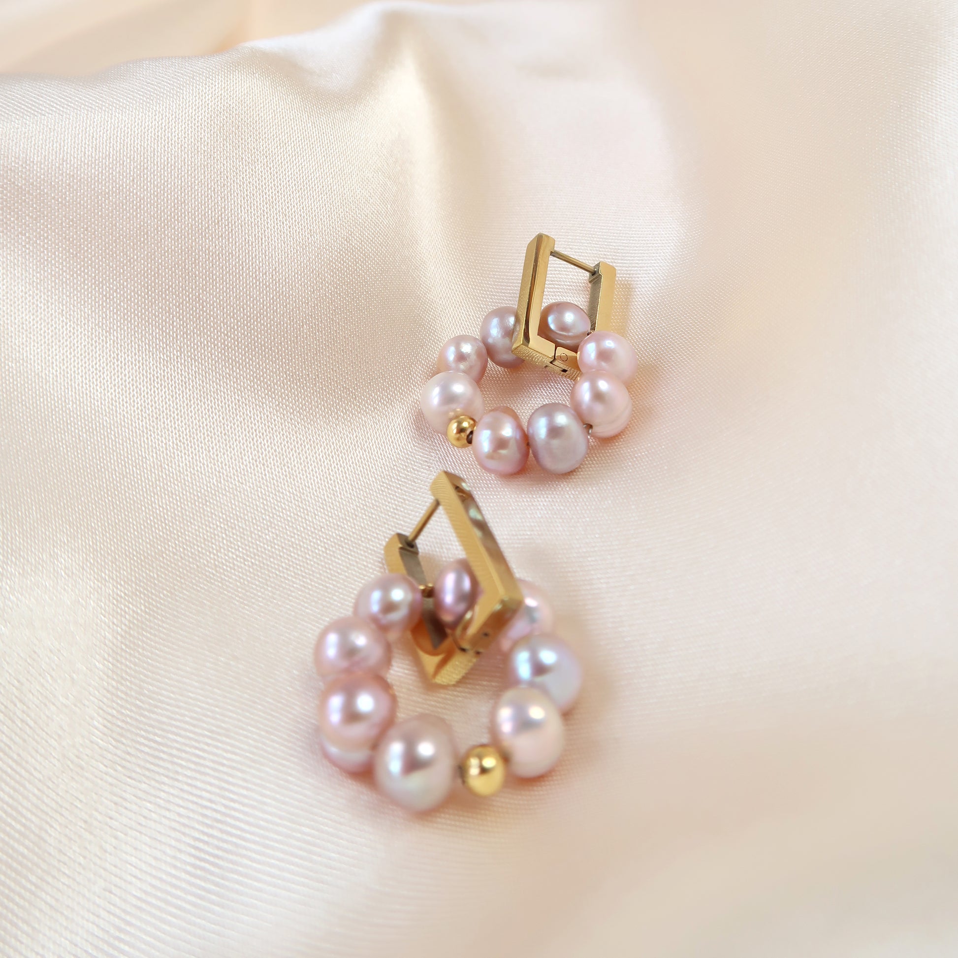 Перли с розоро-лилав отенък придават по-различна екстравагантна визия. Елегантни но и ежедневно-модерни, може да ги носите както с по-спортни дрехи така и с изискан костюм.