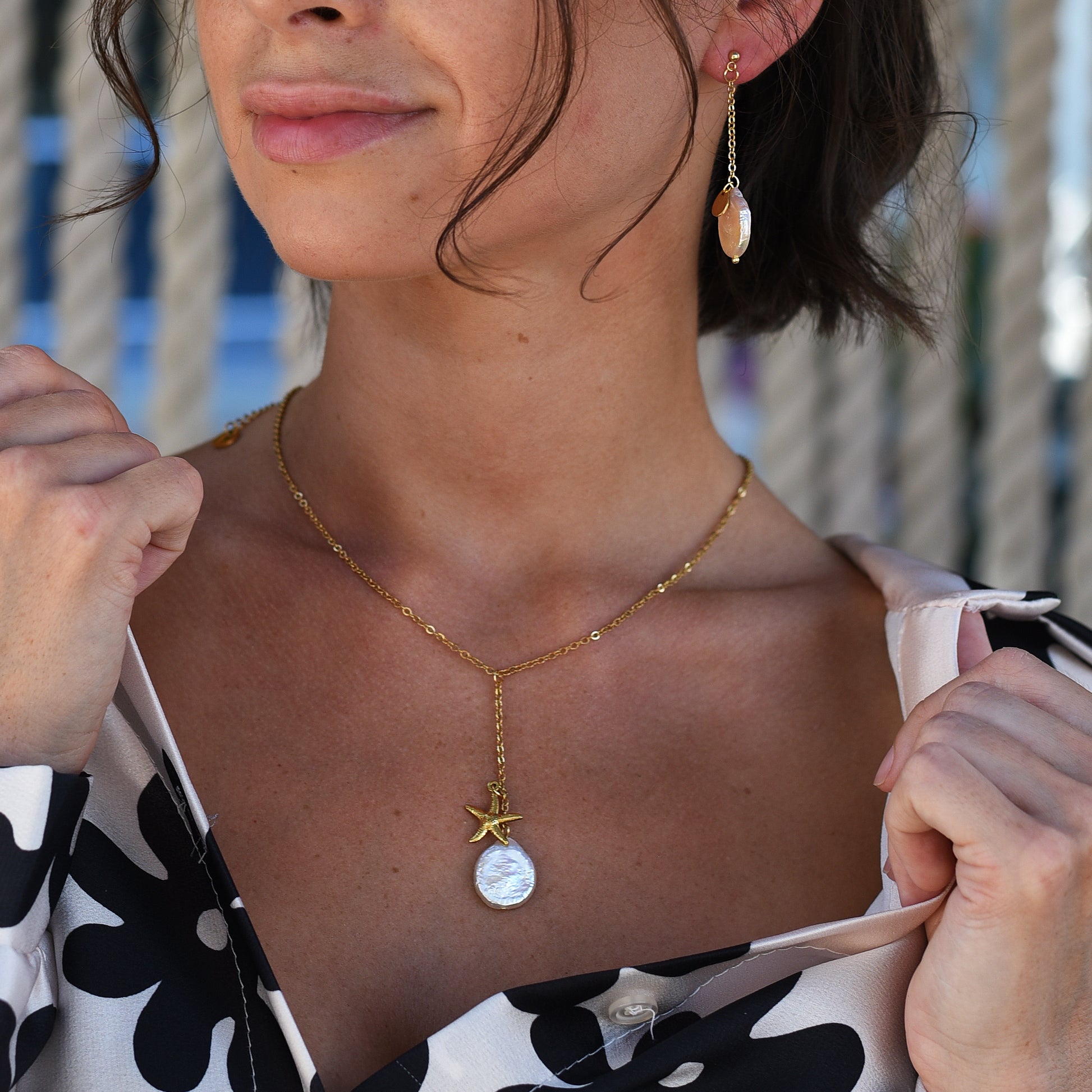 - Материал: Уникално колие с барокова естествена перла и красива морска звезда