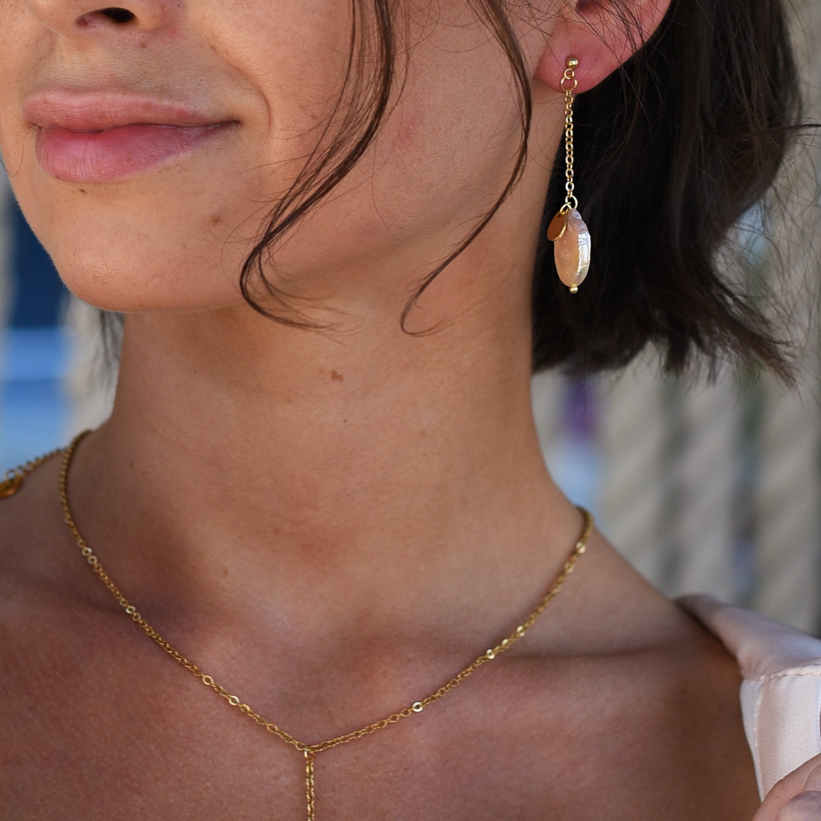Материал: Красиви обеци тип Пин висящи грасиви Барокови кръгли естествени перли