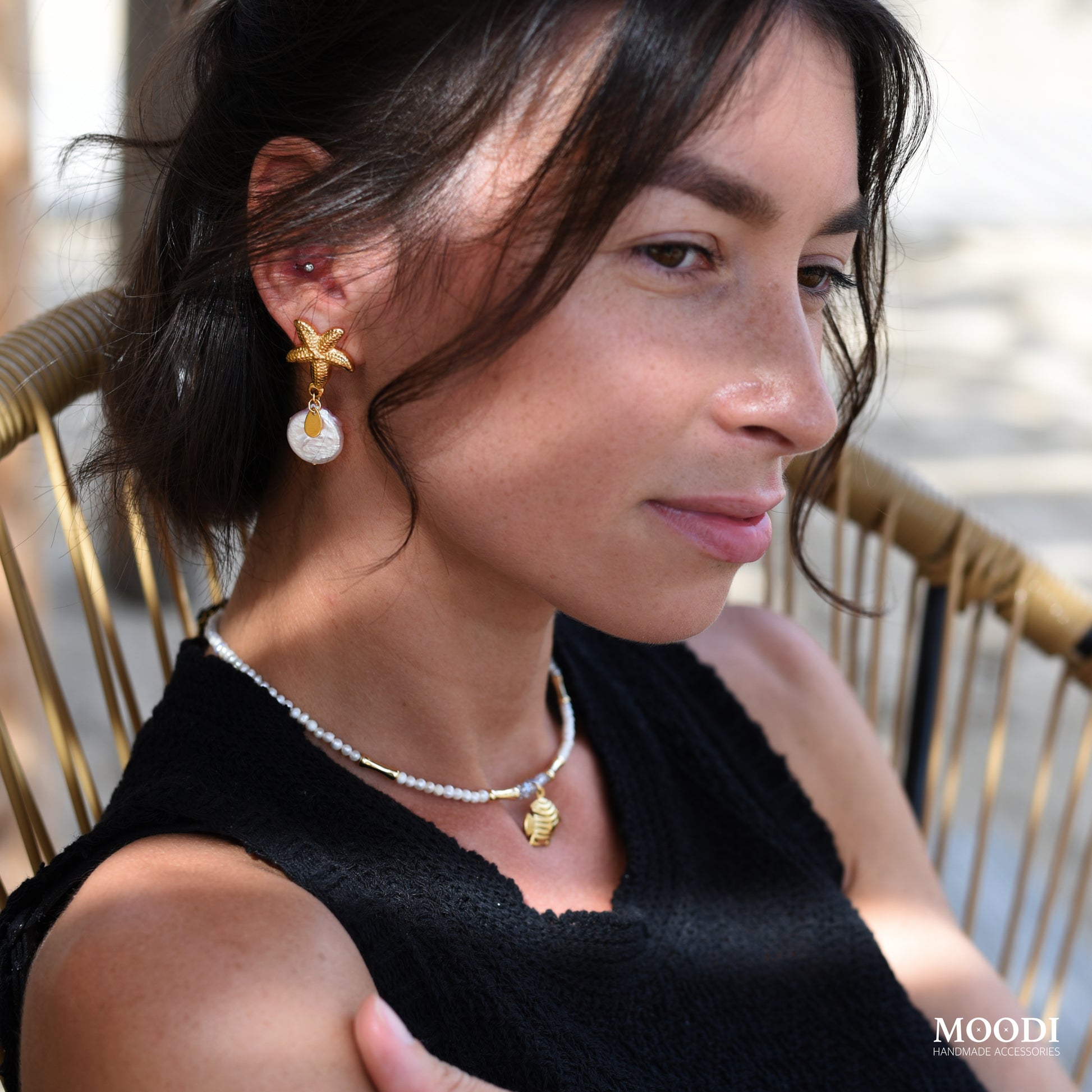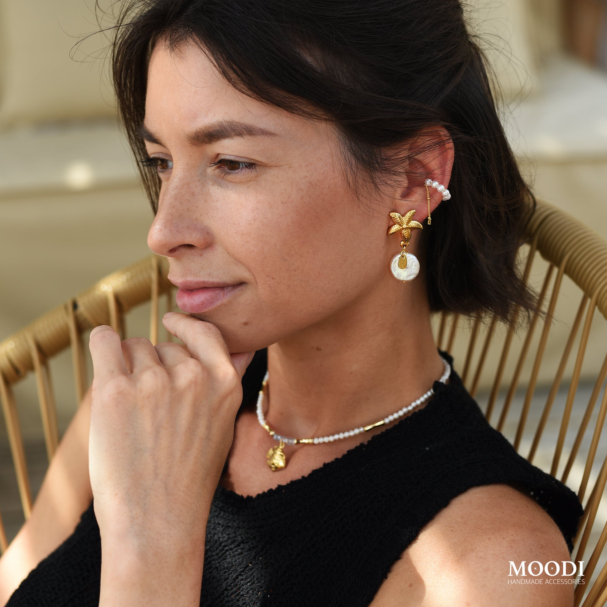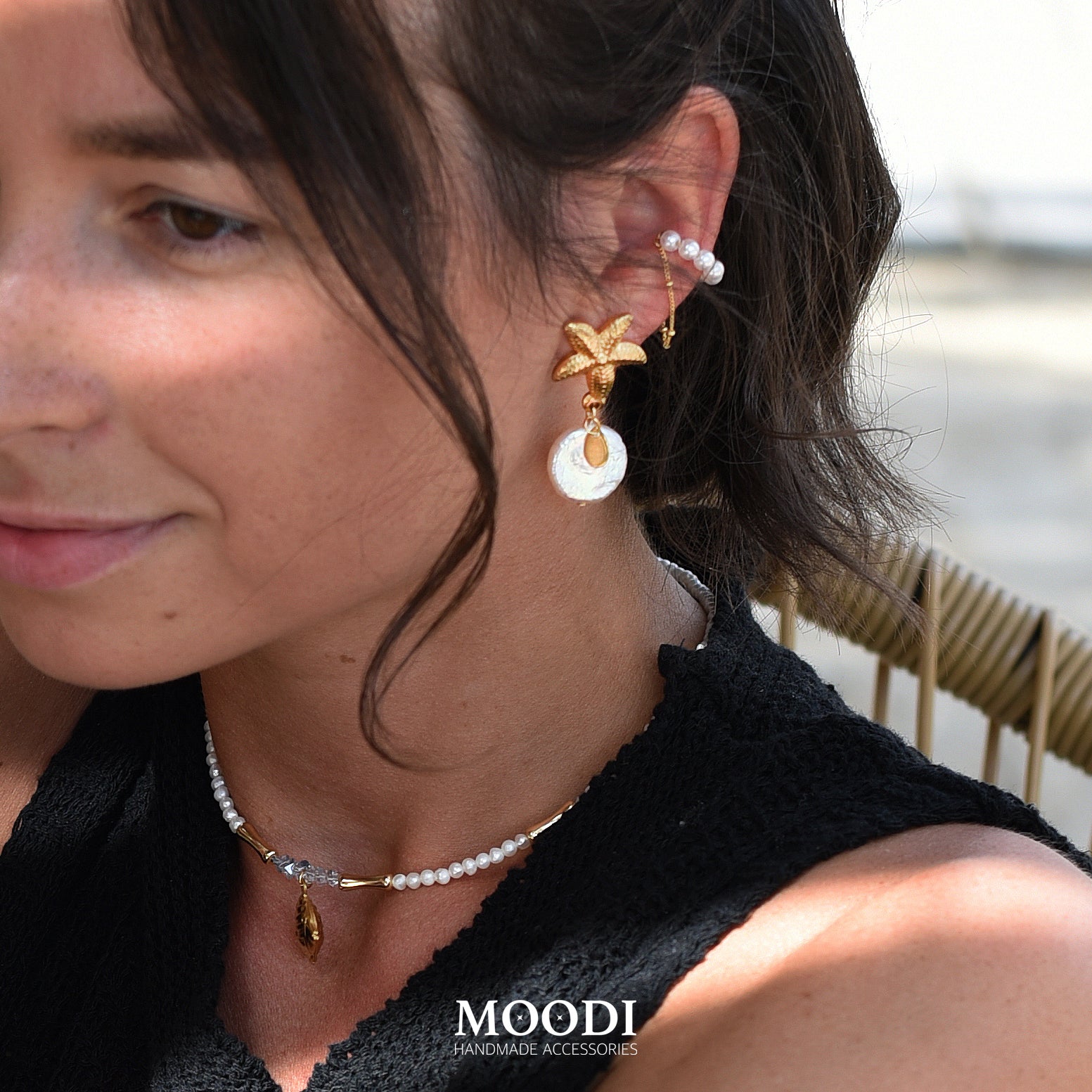 - Материал: Хипоалергенна позлатена стомана / Естествени барокови перли ( можете да прочетете за Бароковите перли от статията в нашия блокпост )