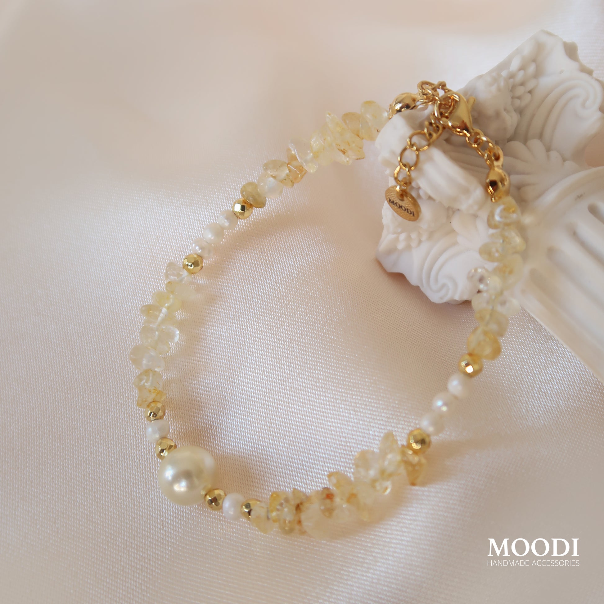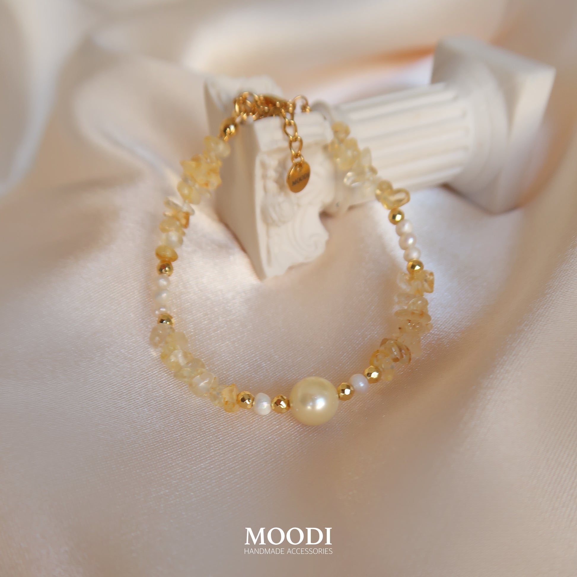естествен камък Цитрин / Малки сладководни перли / Голяма перла майорка / хематити
