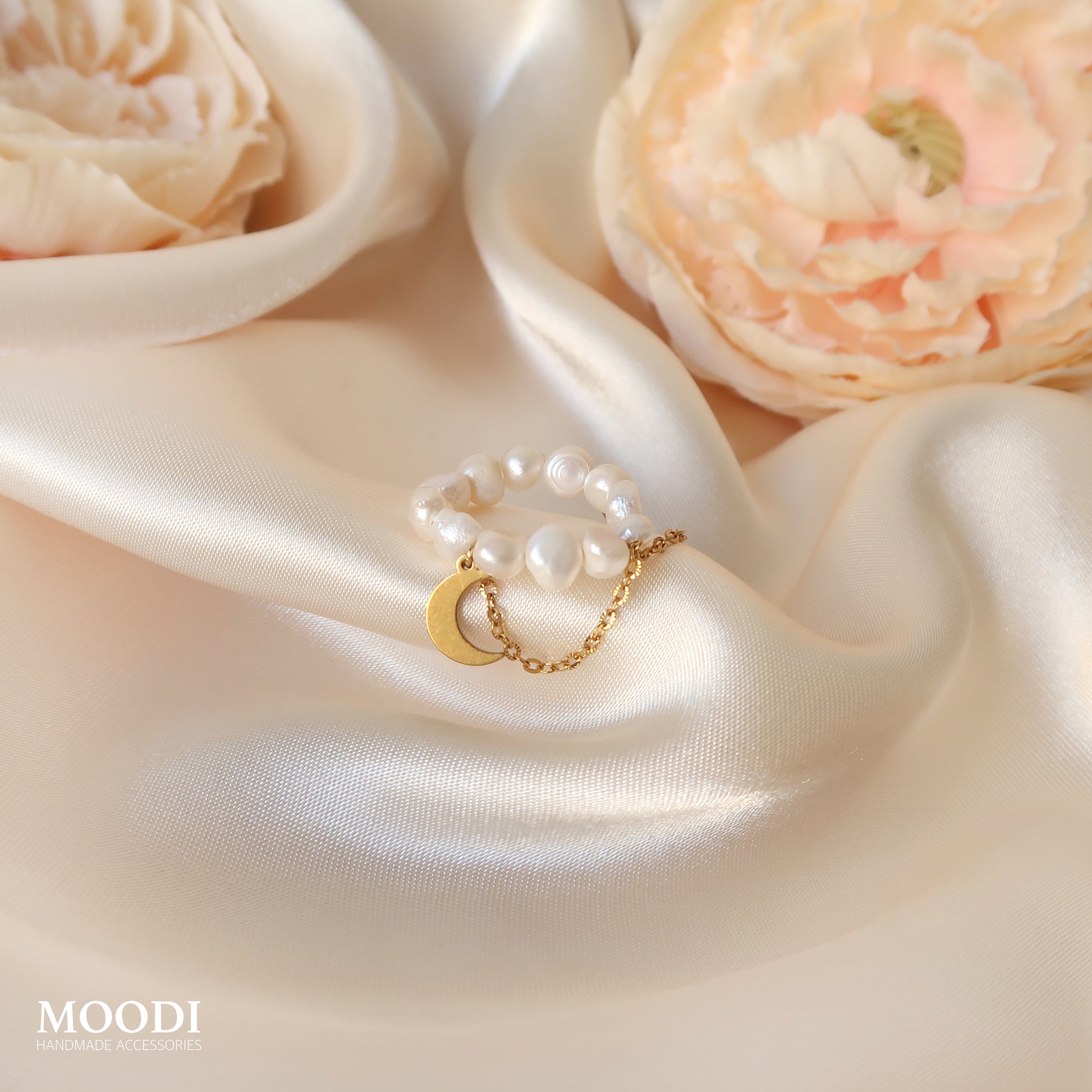 ✨ Пръстен с естествени перли стоманена висулка луна и за акцнт синдрир ✨