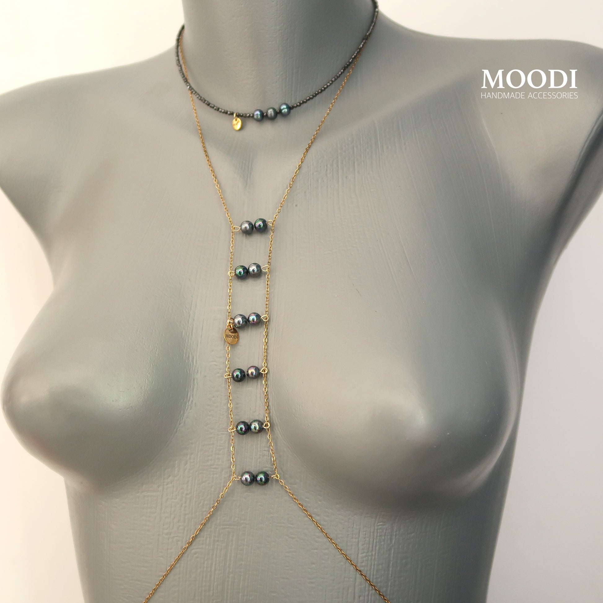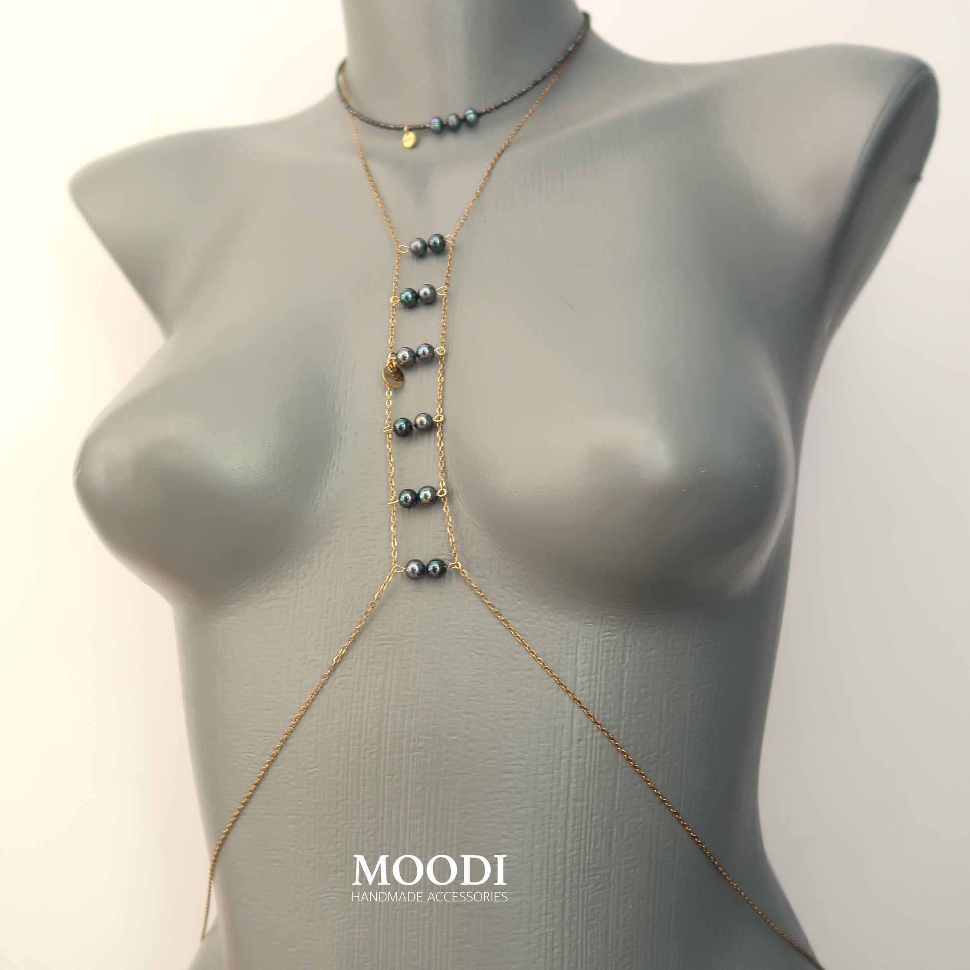 - Материал: Черни седефени мъниста / Синджир позлатена и хипоалергенни стомана