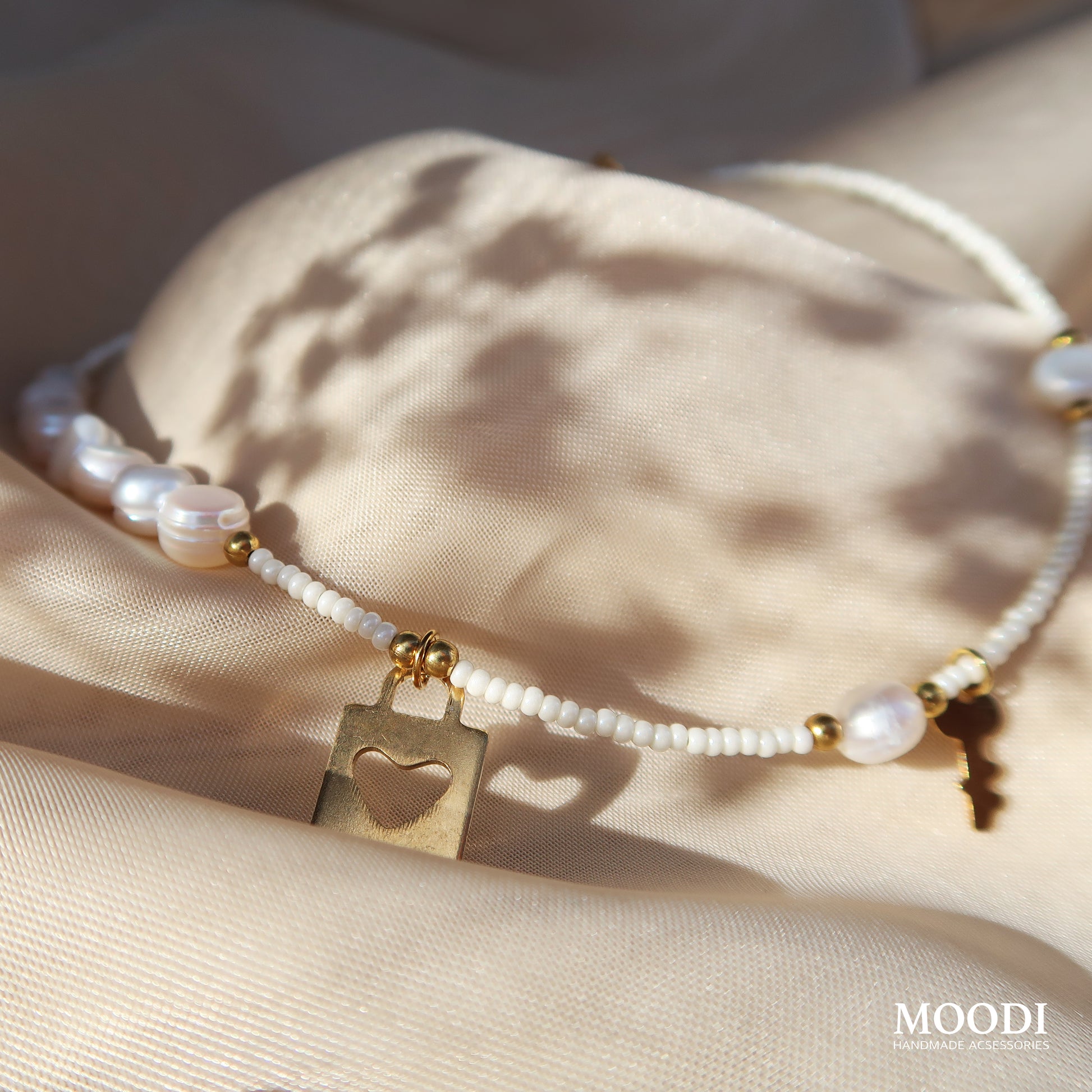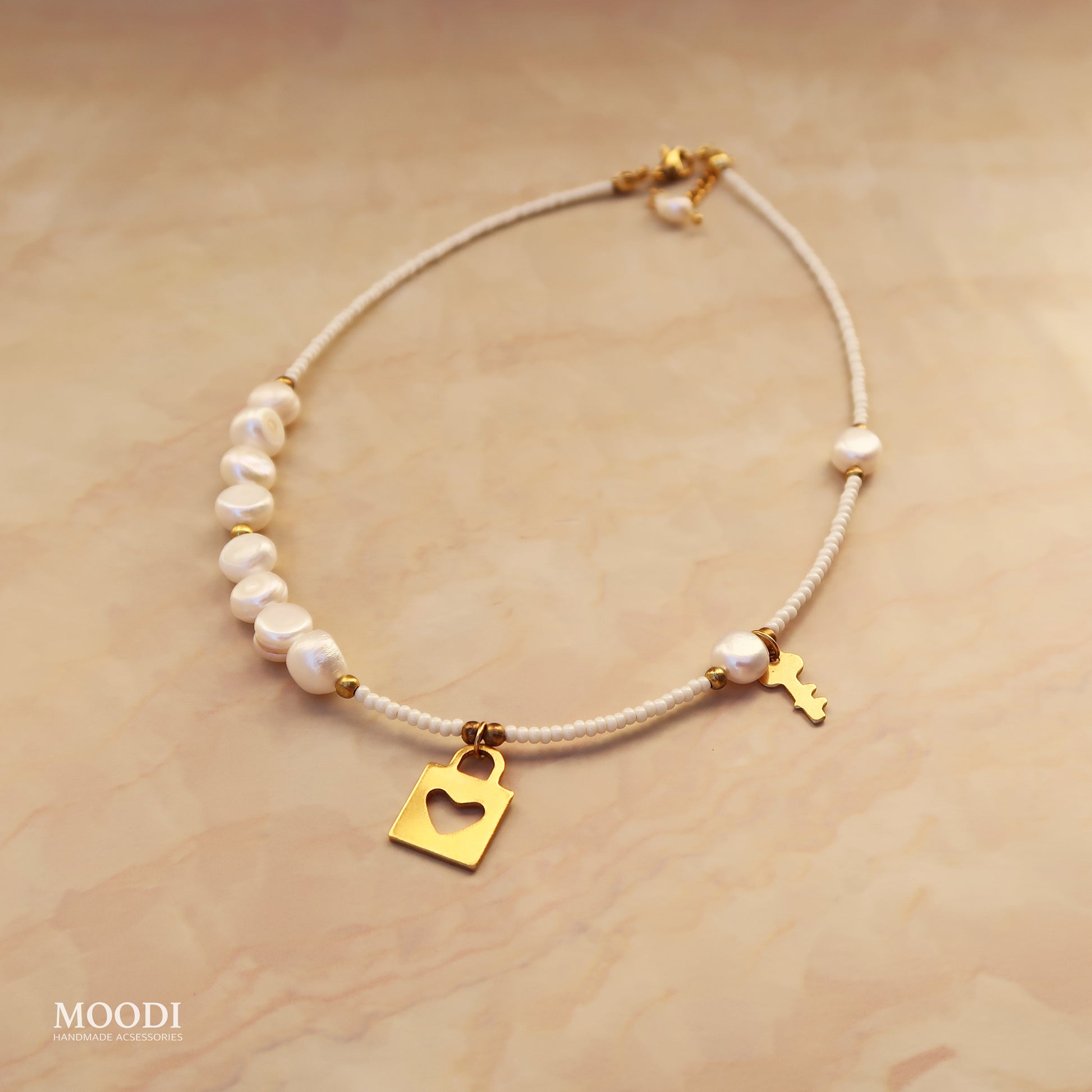 Изработена e с качестени продукти и позлатени стоманени с L316 - закопчалки и прекрасен малък аксесоар под формата на ключалка сърце и малко ключе за акцент.