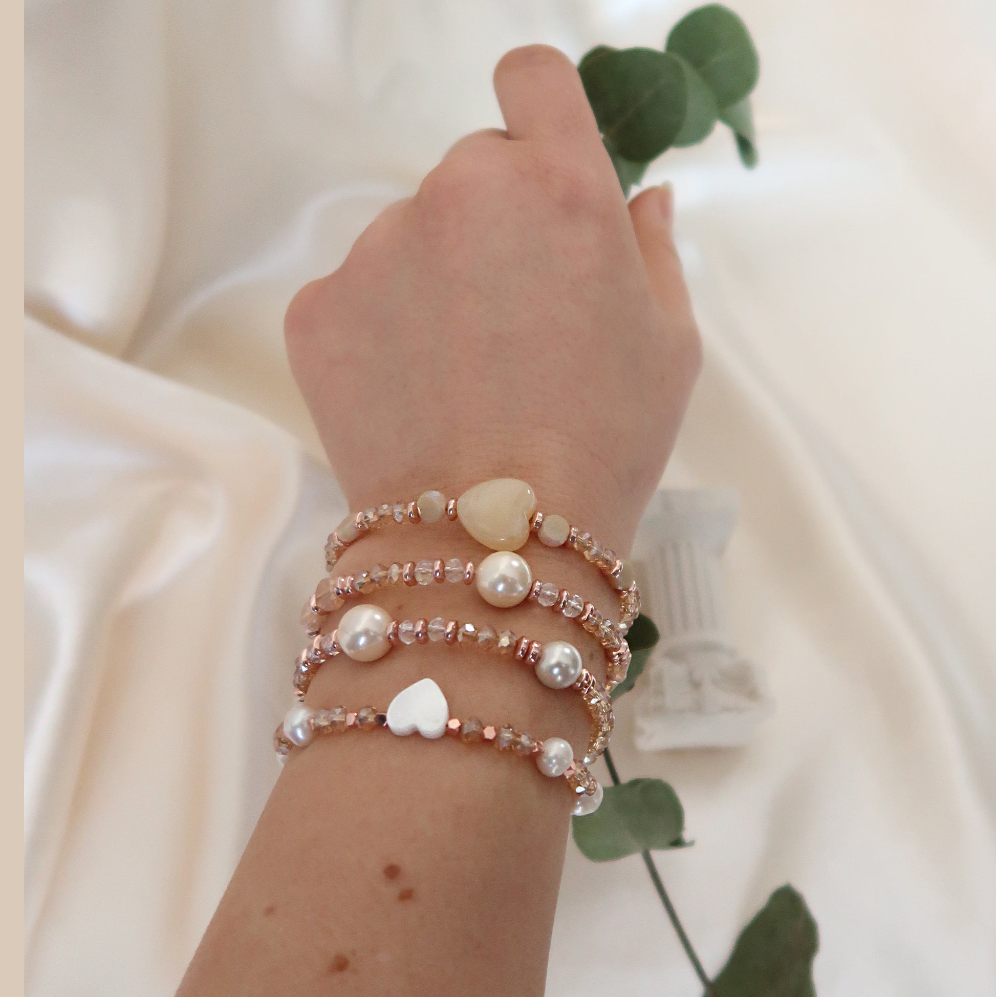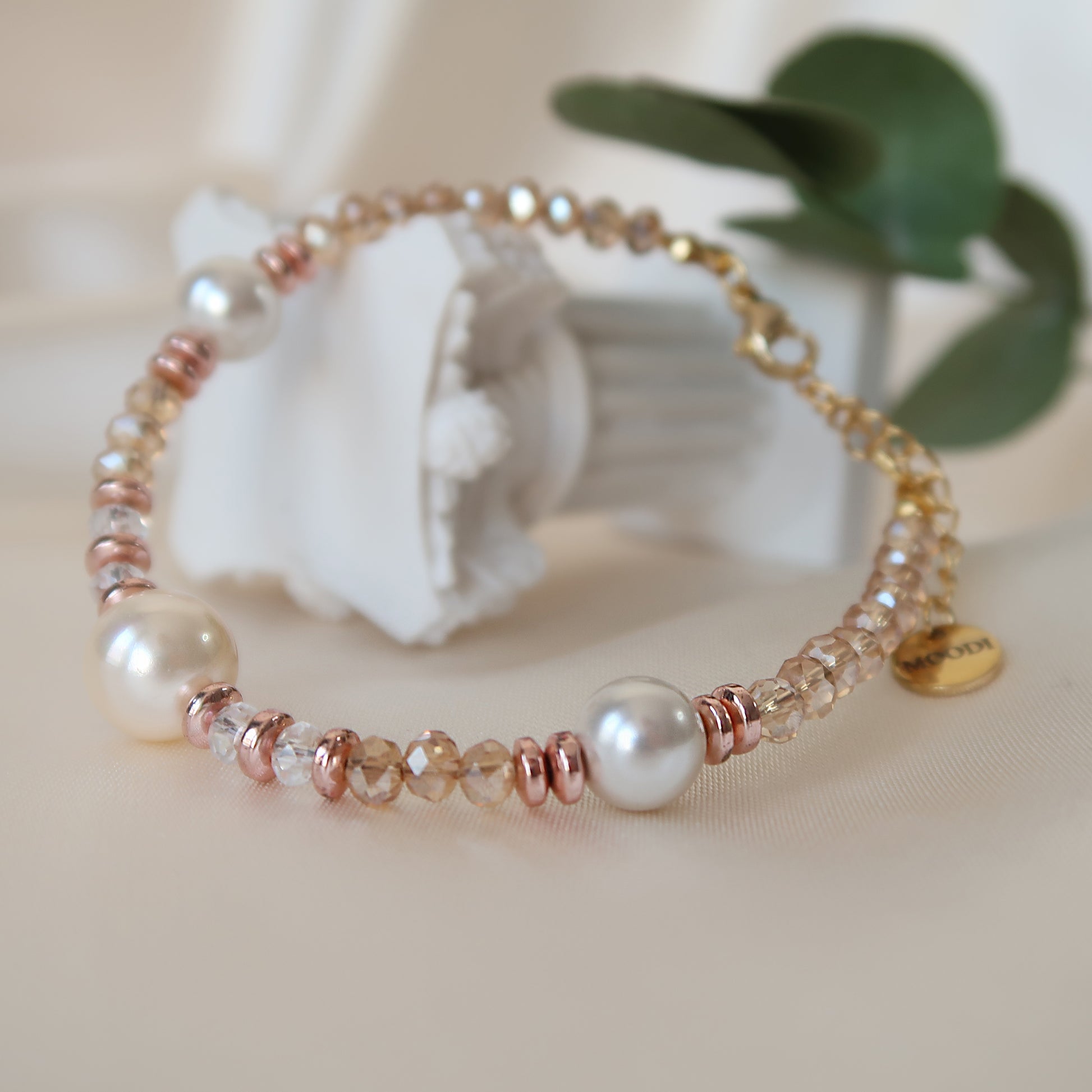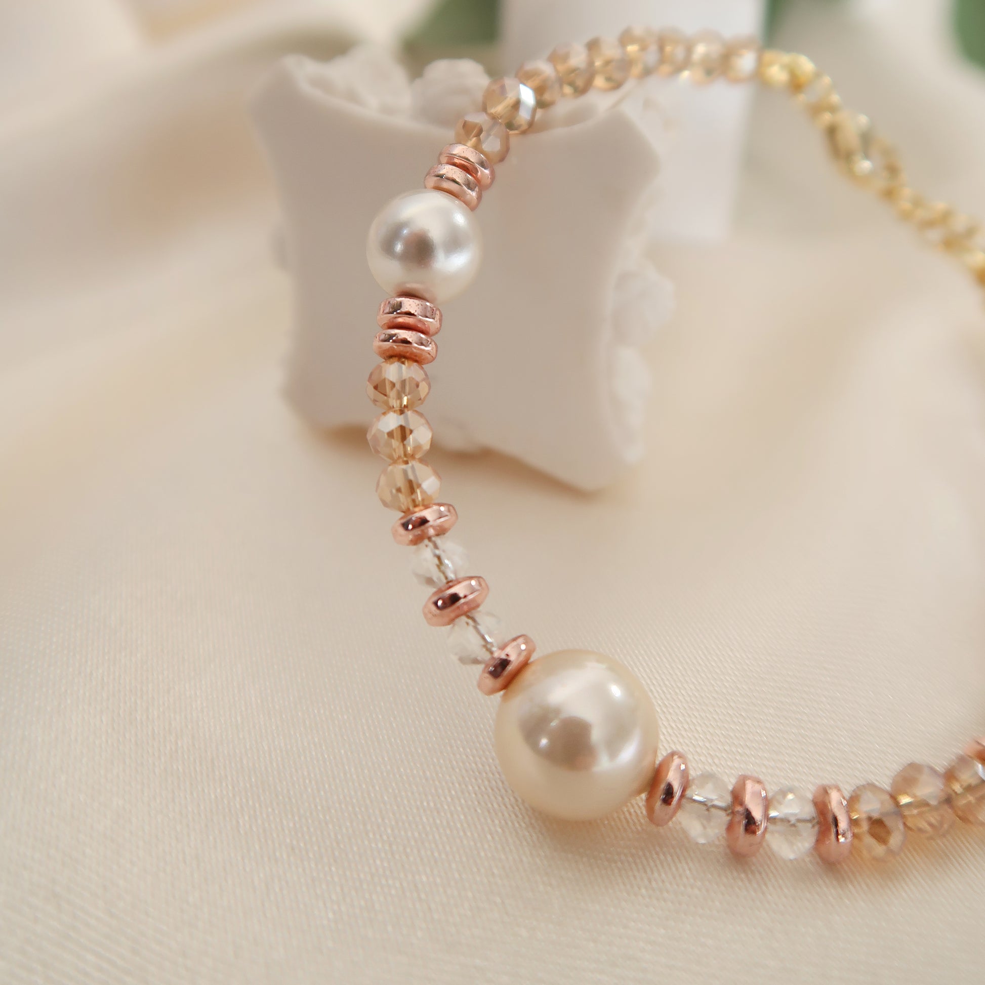 - Материал: Перли майорка, Стъклени мъниста, хематити, закопчалки от медицинска 316L стомана