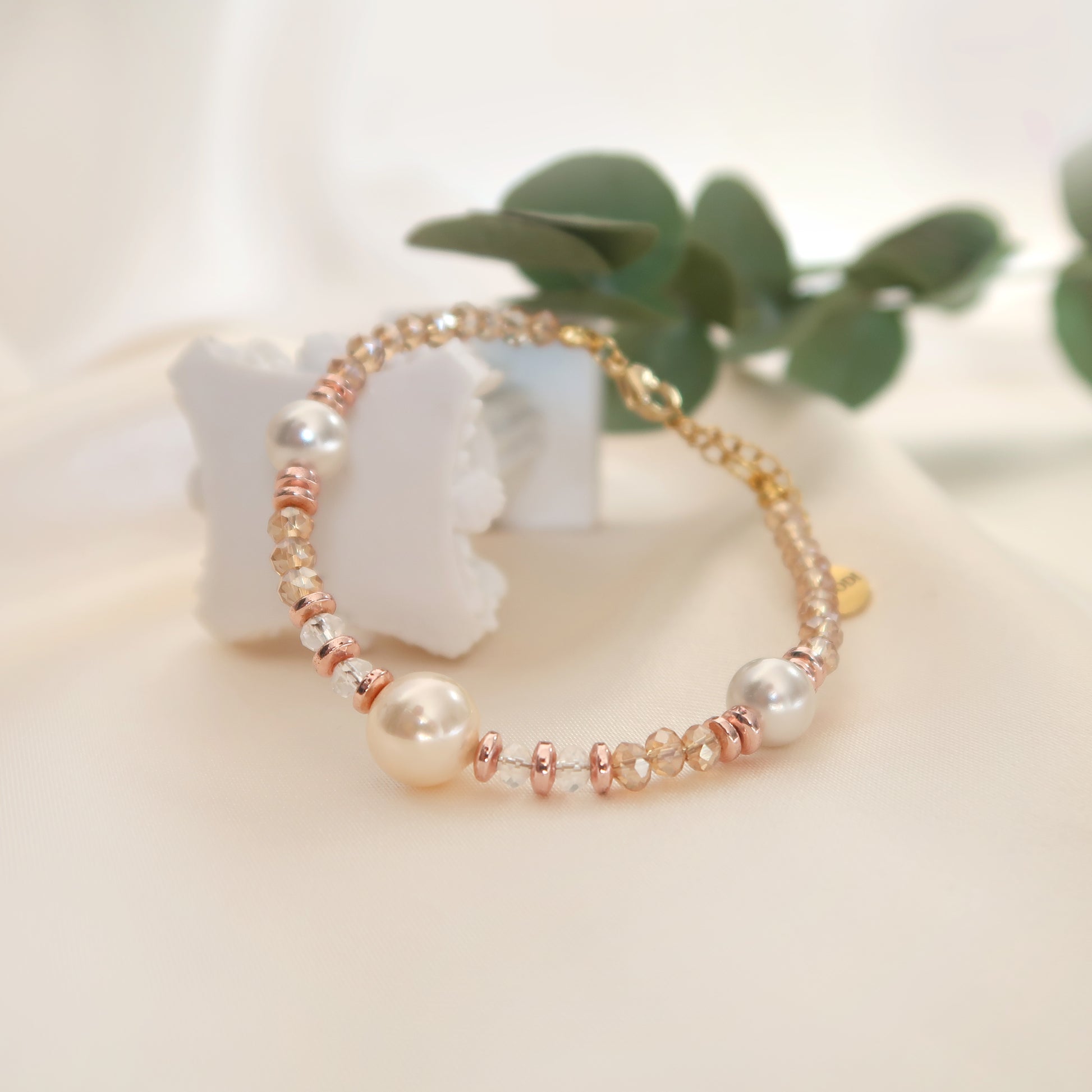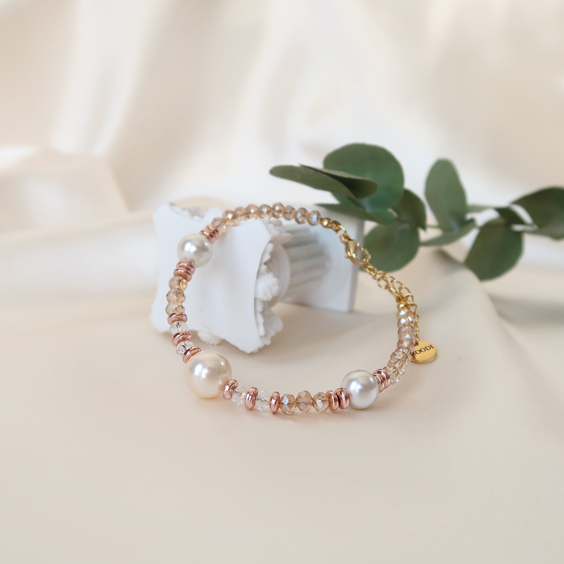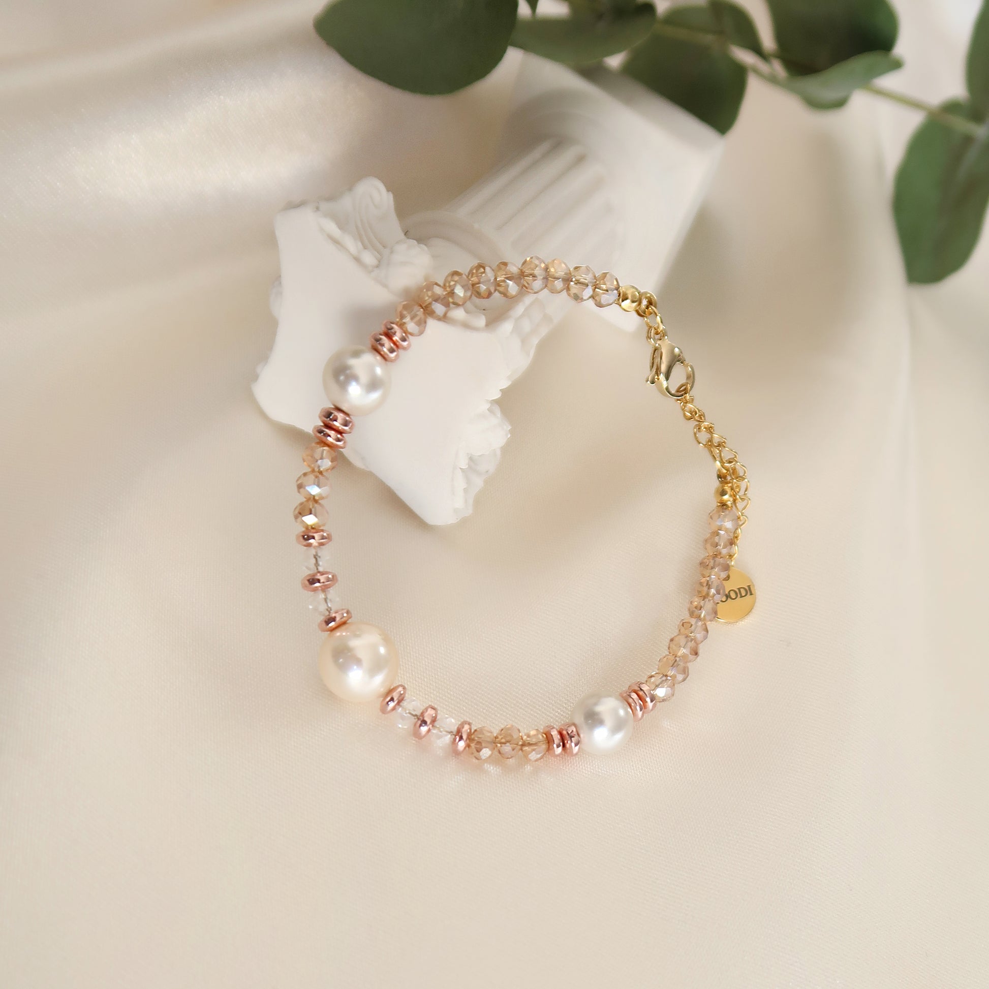 - Материал: Перли майорка, Стъклени мъниста, хематити, закопчалки от медицинска 316L стомана