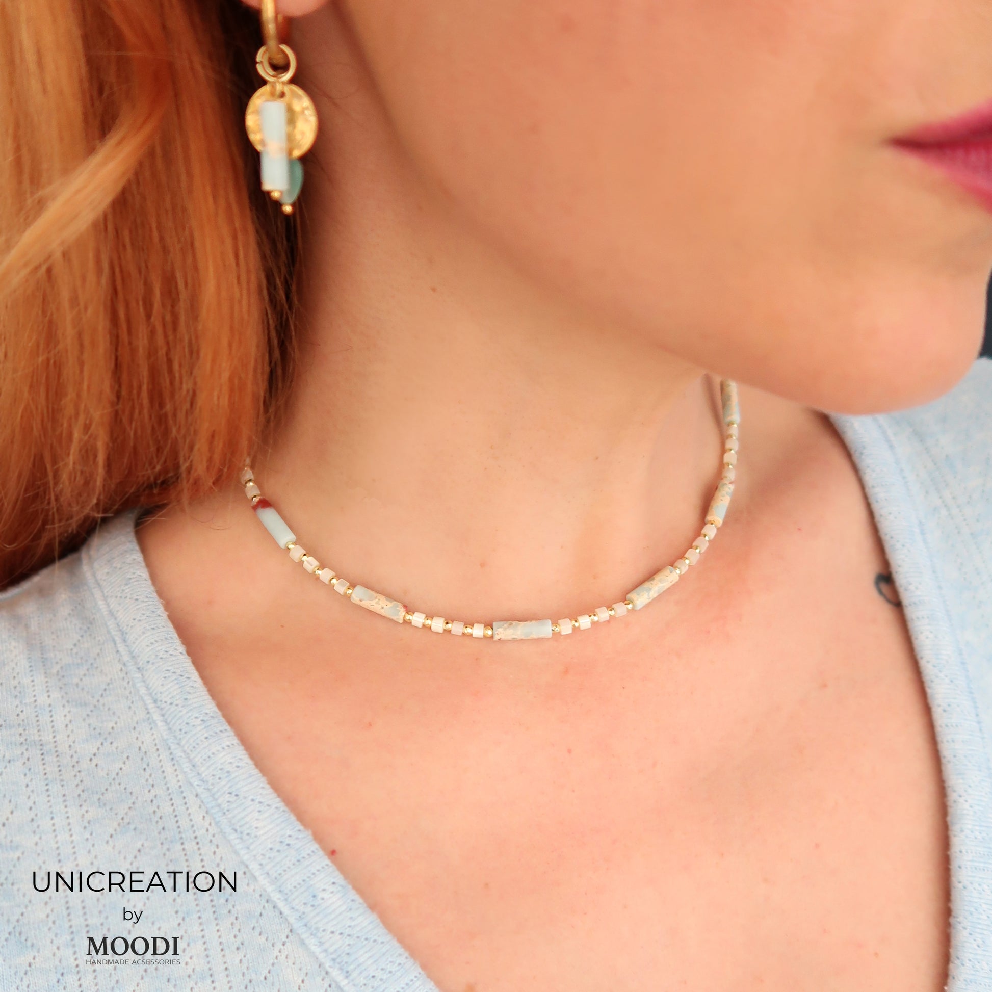 - Материал: Eстествени камъни амазонит•Естествен седеф•Златен хематит