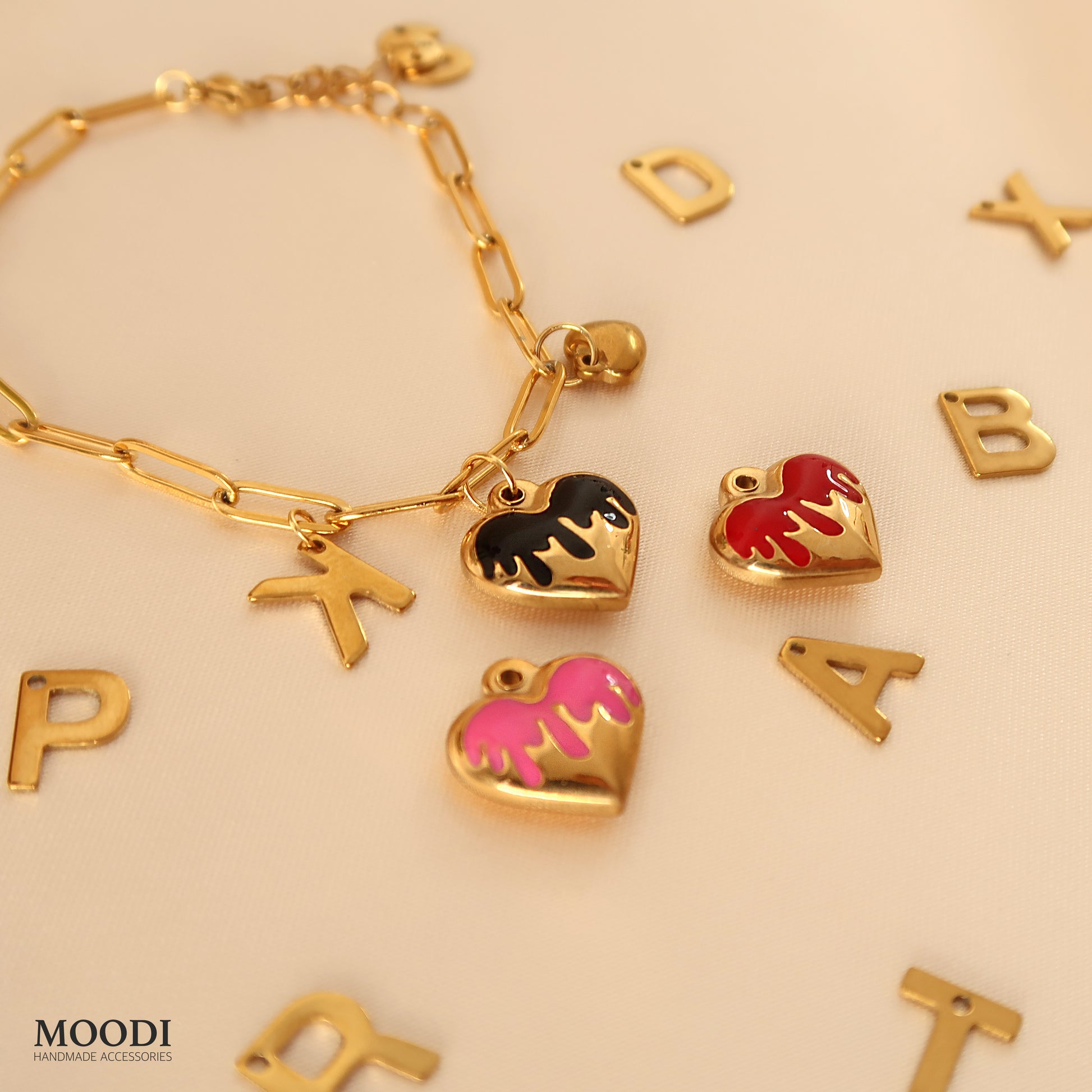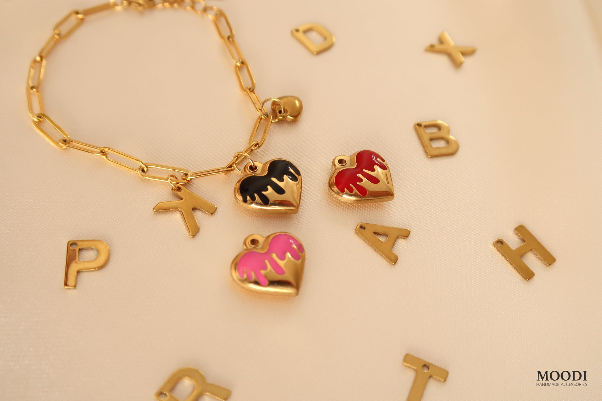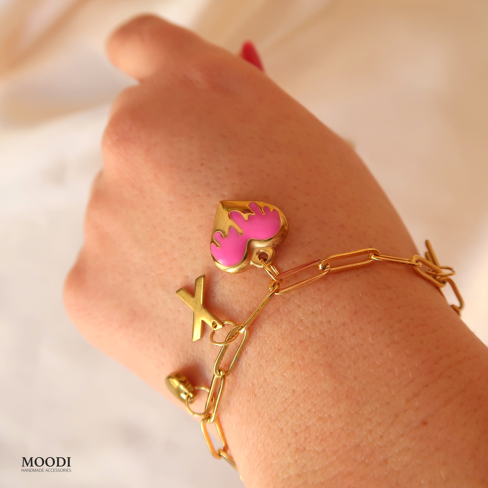 Уникална персонализирана гривна с Буква по избор и красиво огнено сърце в три цвята.