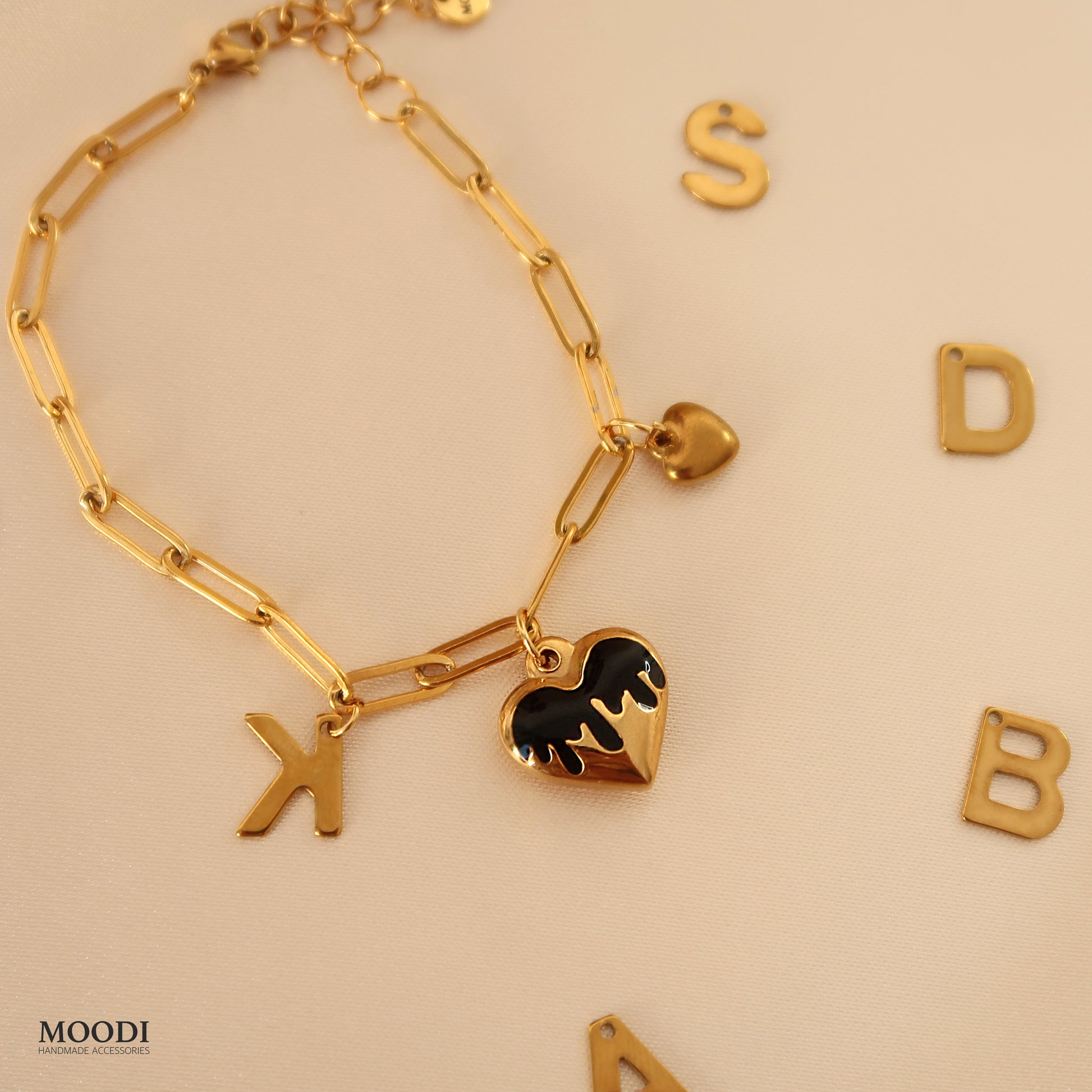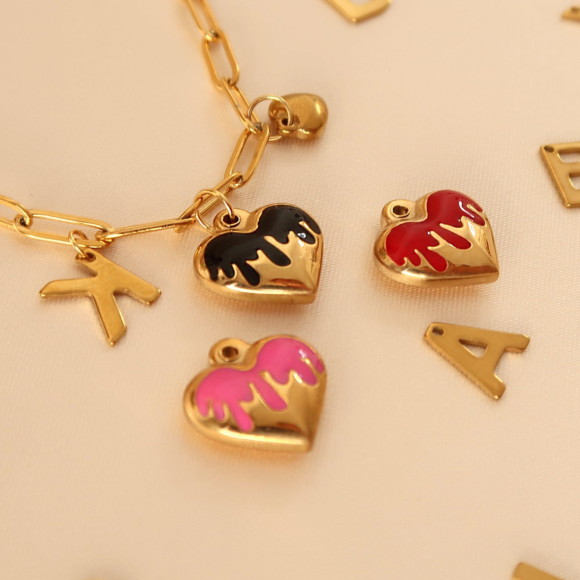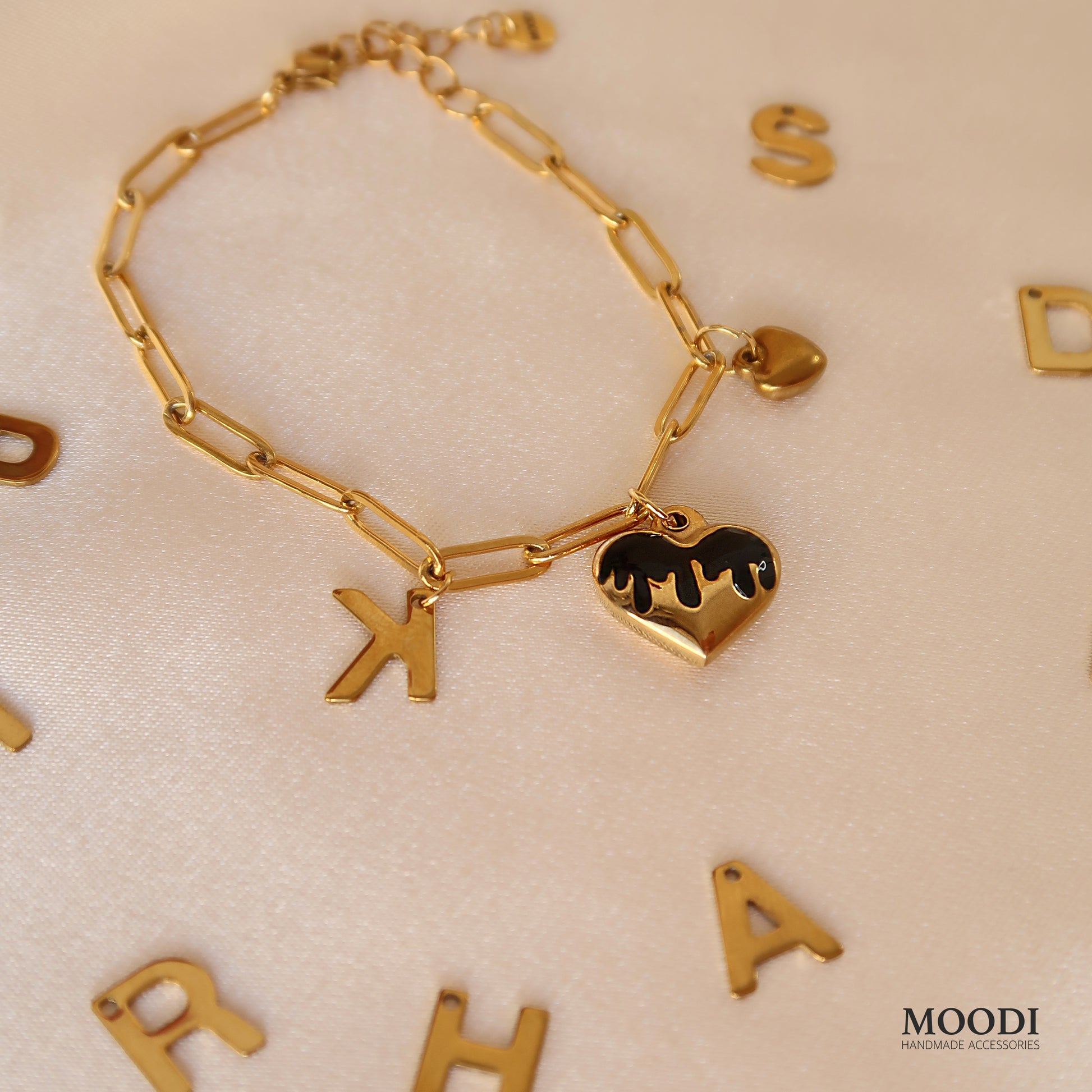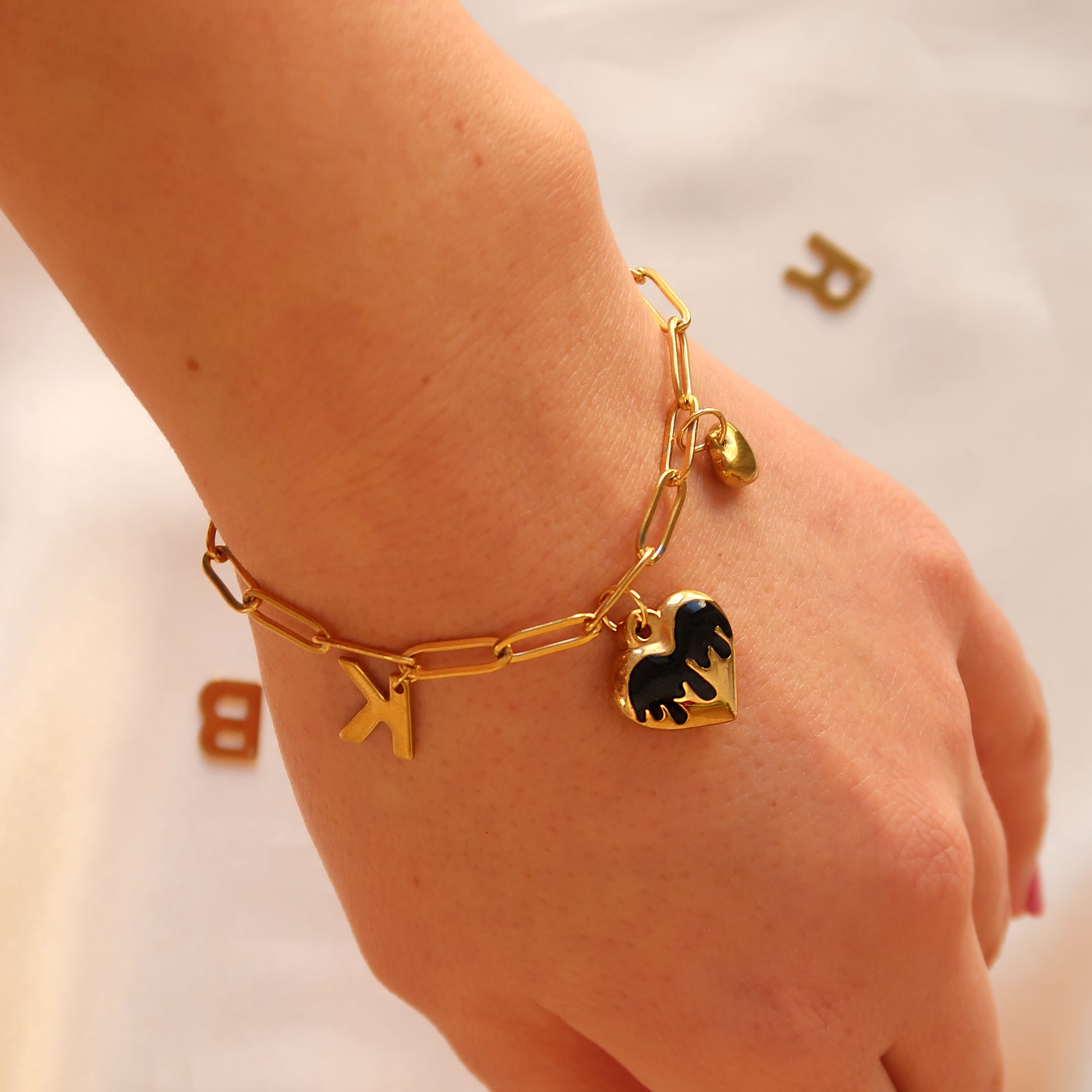 Уникална персонализирана гривна с Буква по избор и красиво огнено сърце в три цвята.