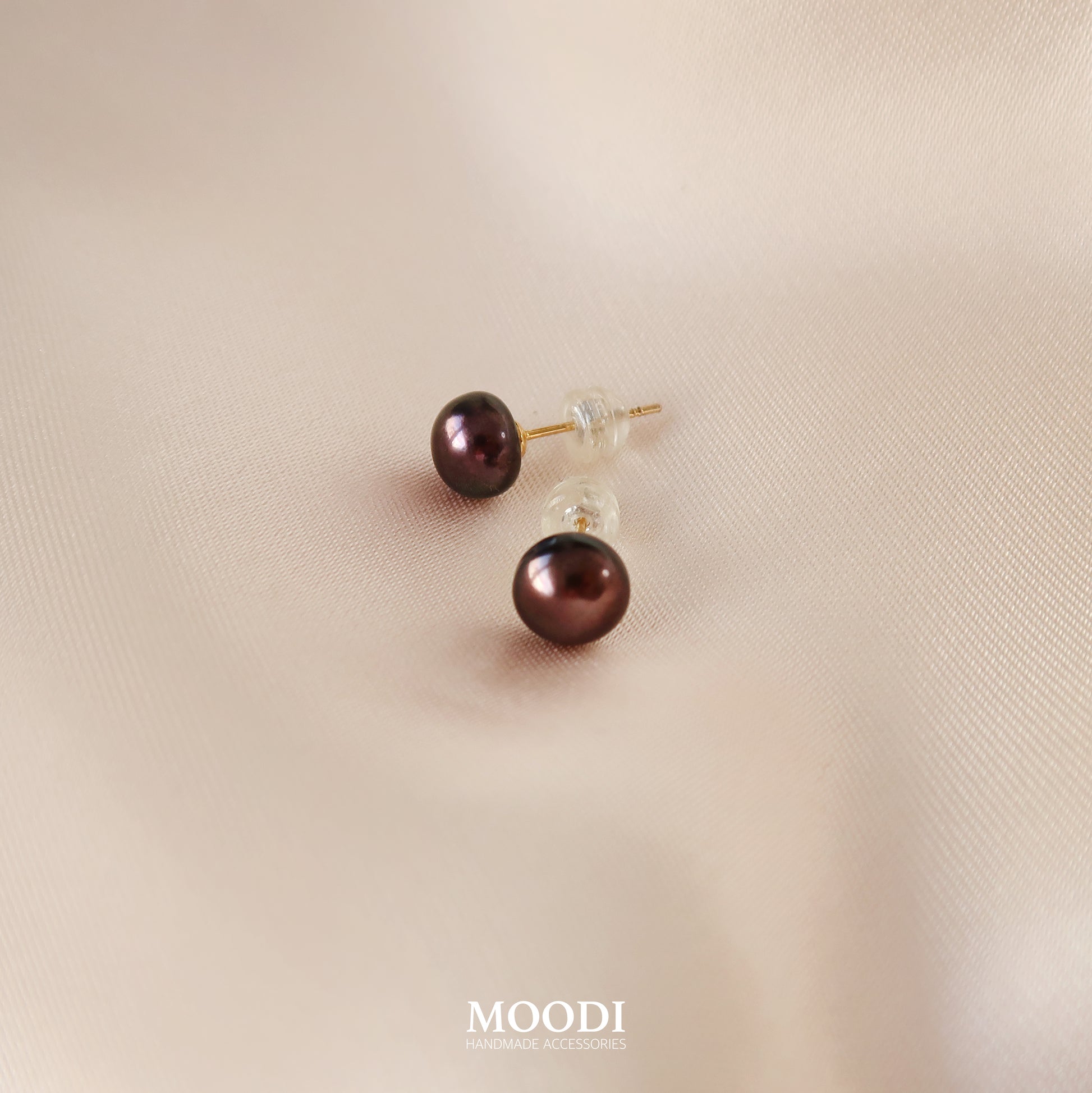 - Обеци от сребро проба 925 и естествени черни перли с кафяв отенък 5-6мм диаметър