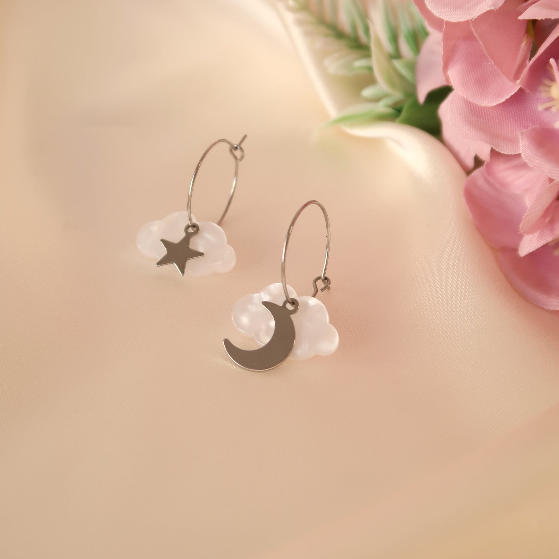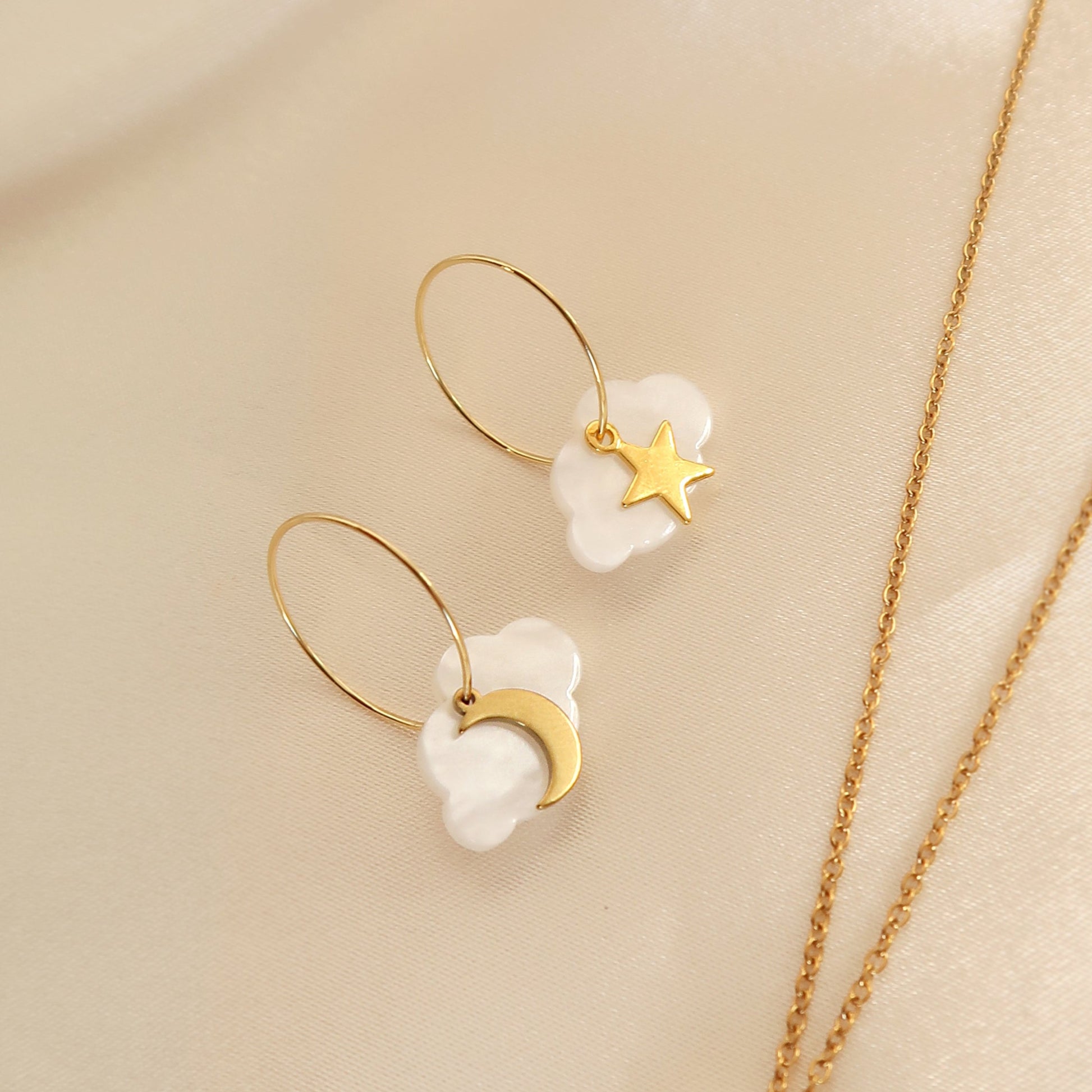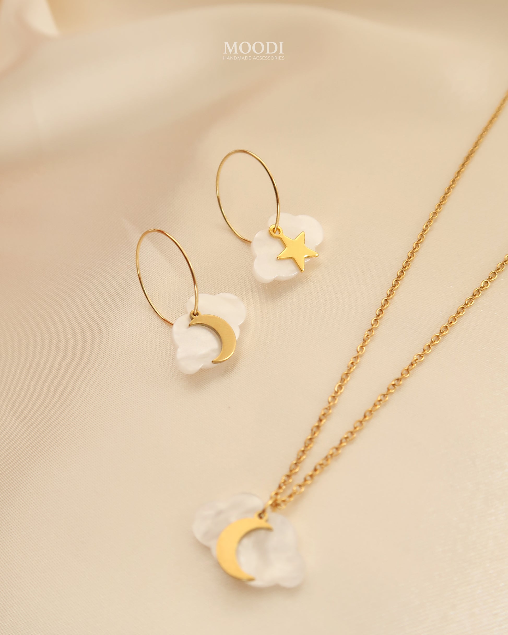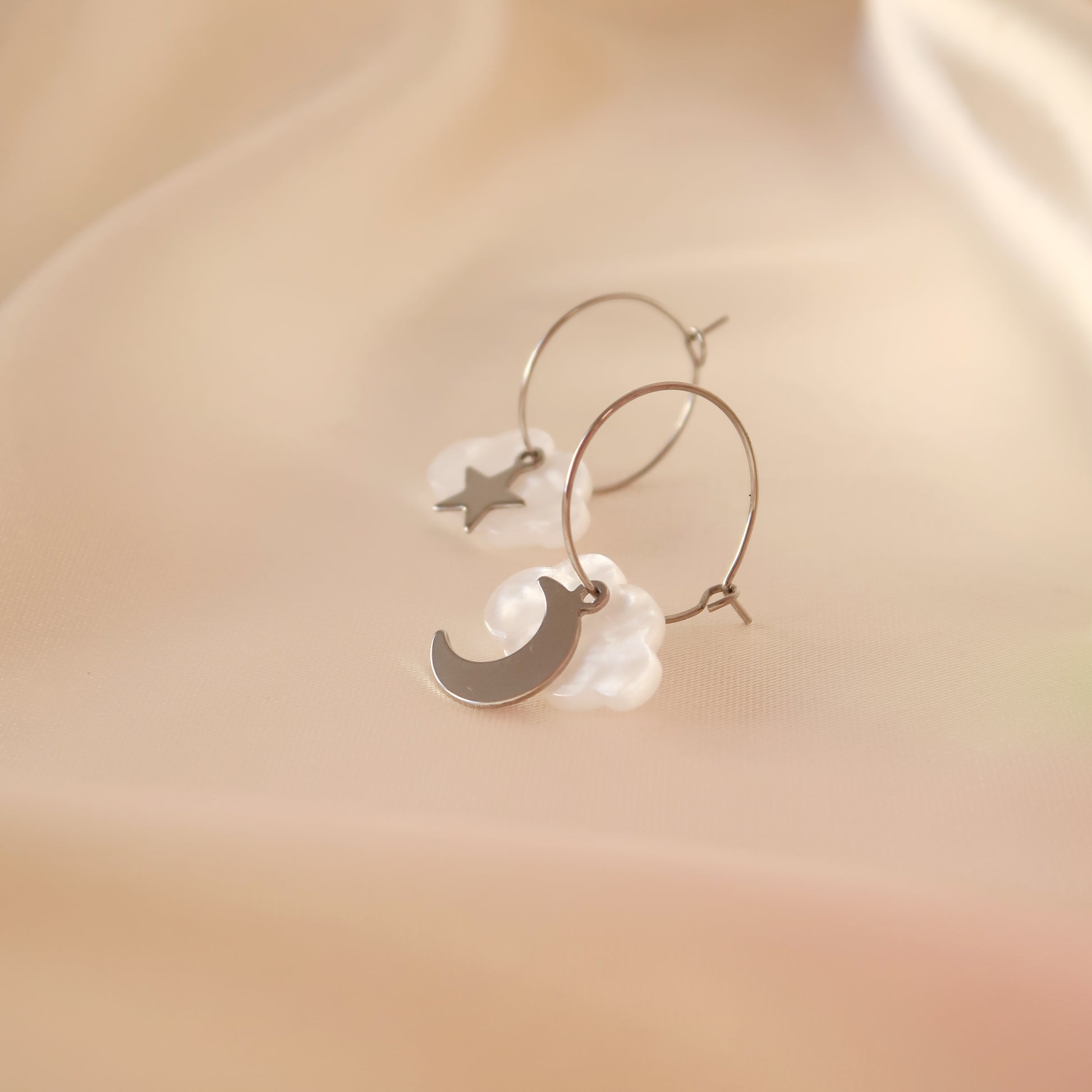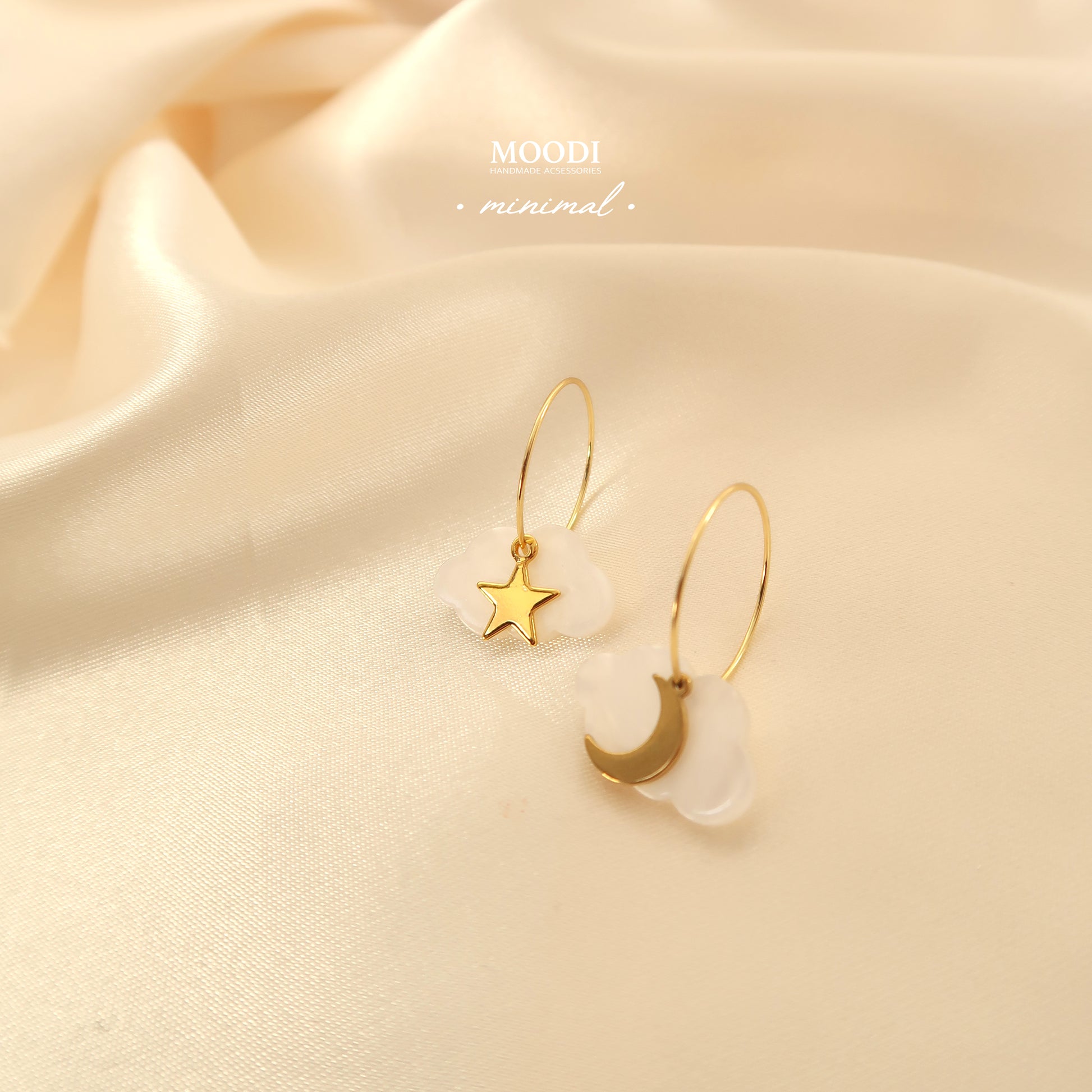 - Материал: Обеци, висулки - медицинска стомана клас 316L, Облачета от естествен седеф