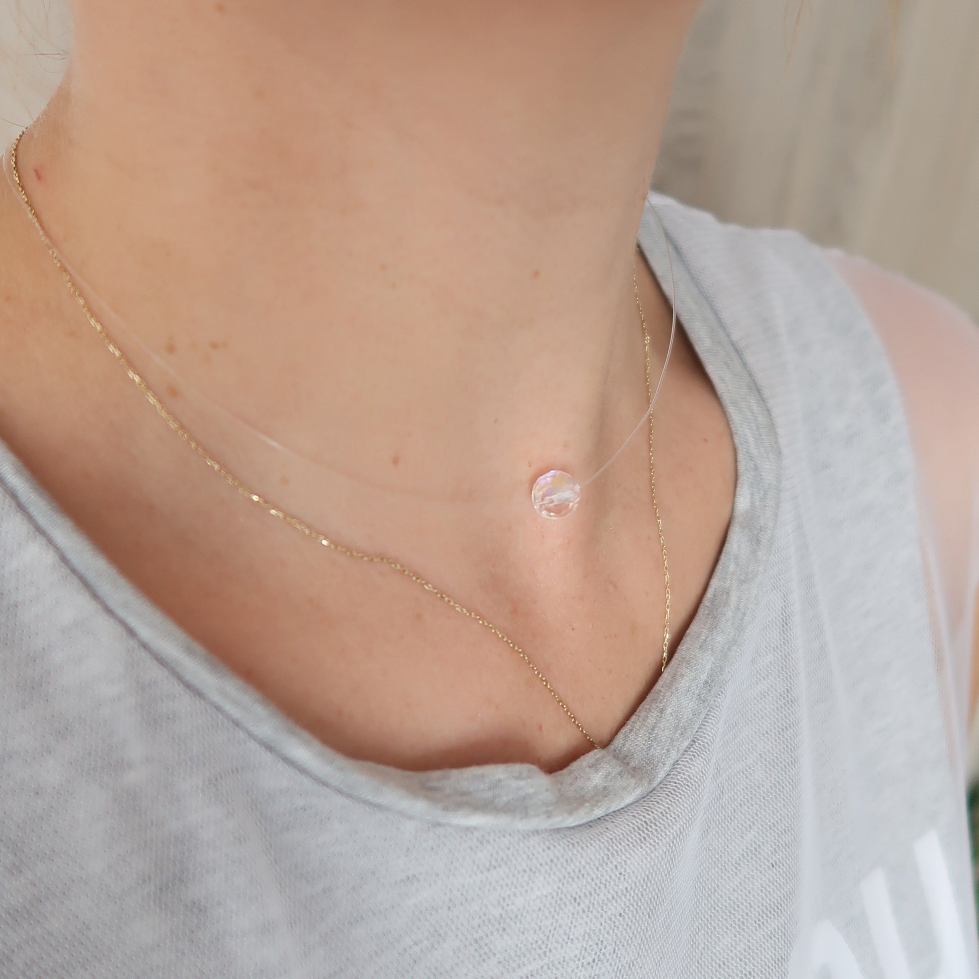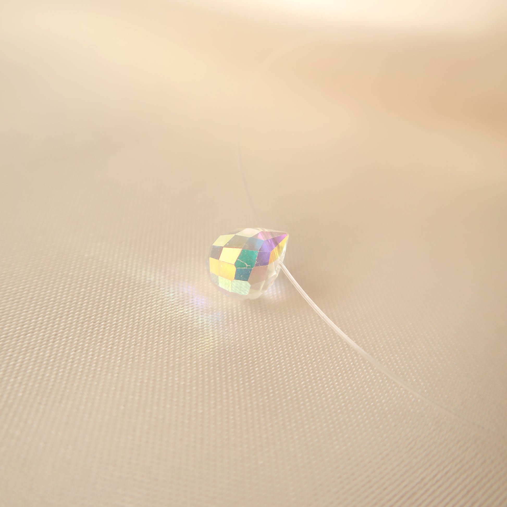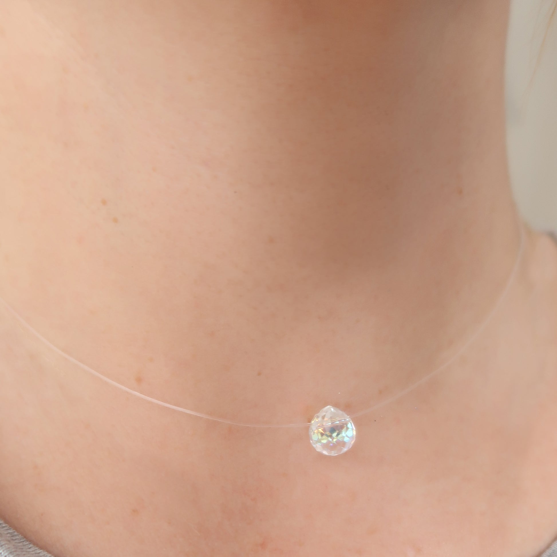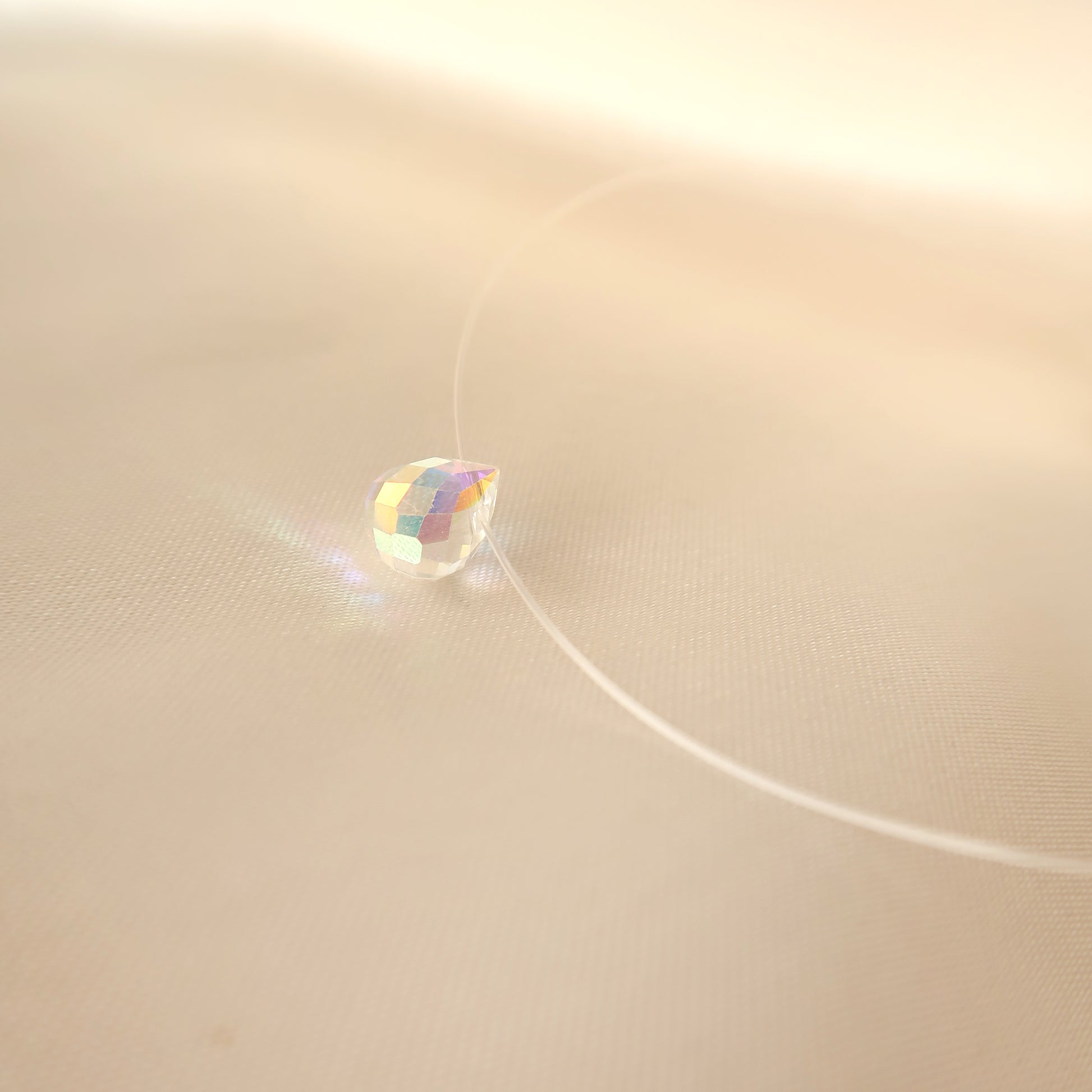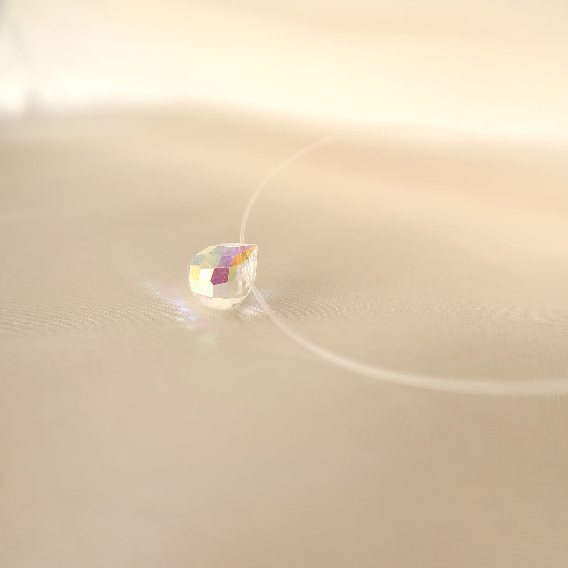 - Материал: Колие тип чокър на безцветна корда, Бляскав фасетиран прозрачен кристали под формата на капка