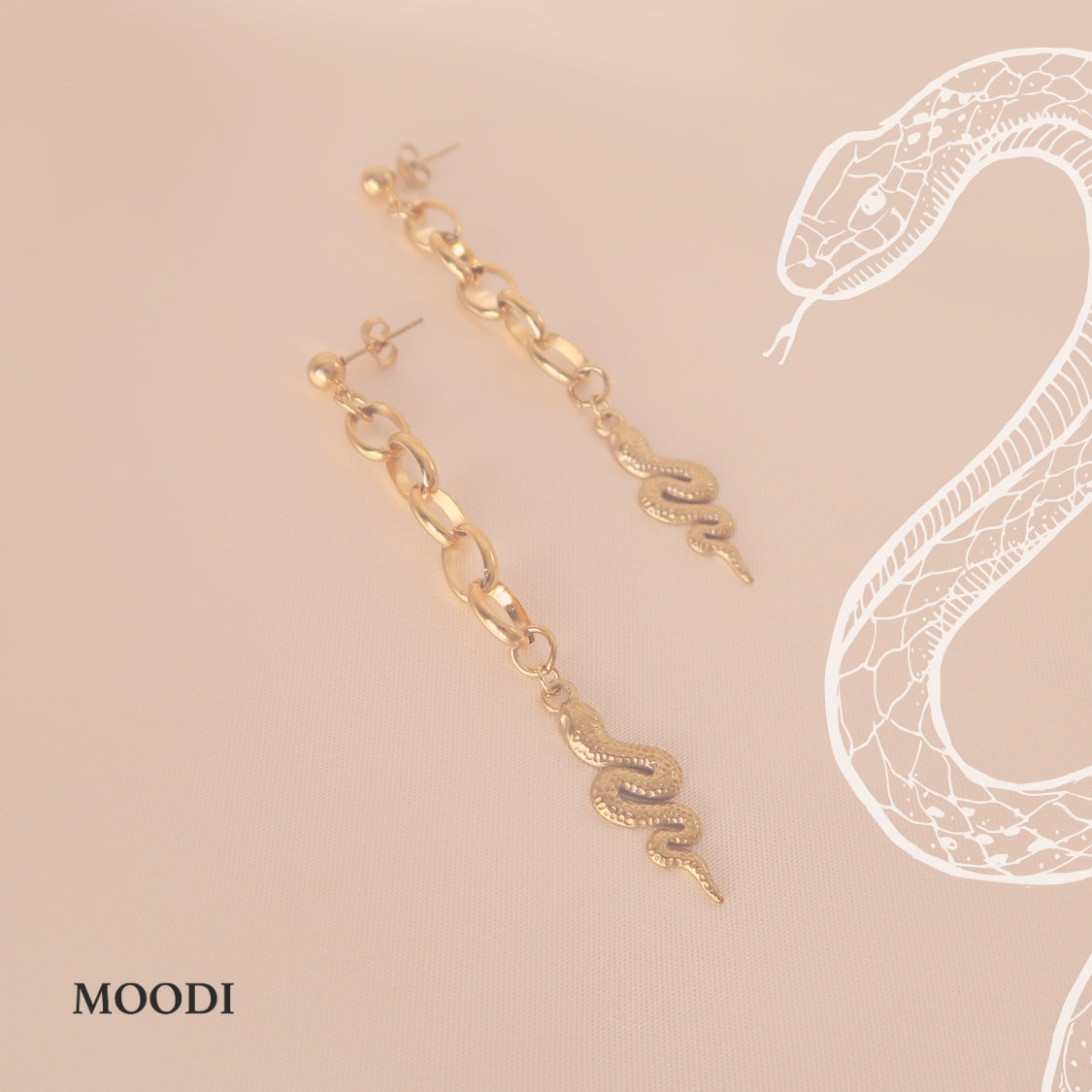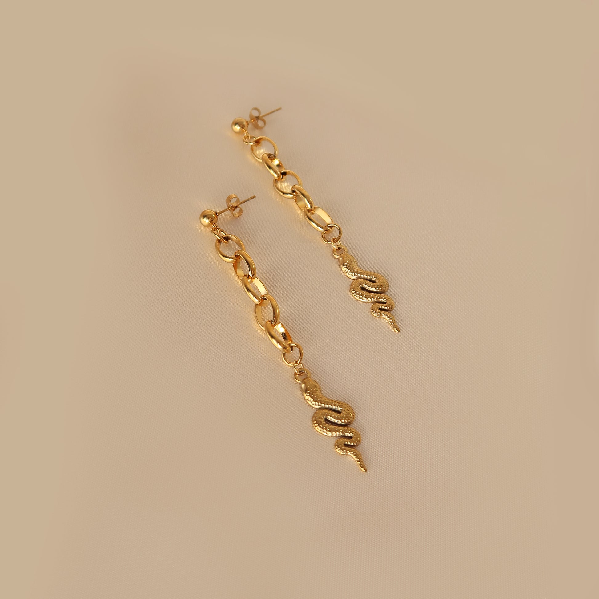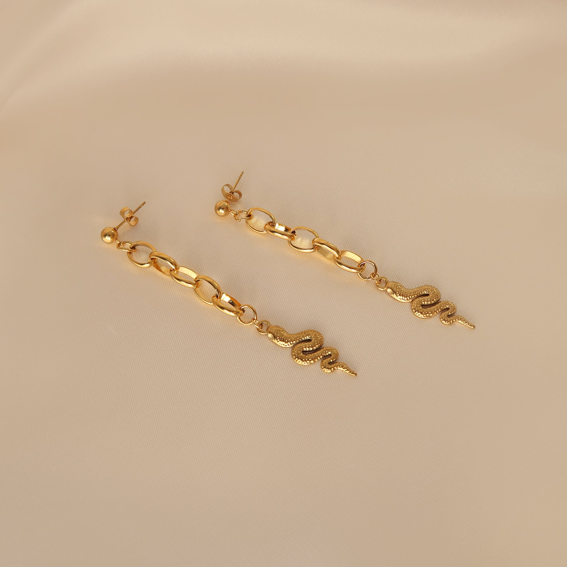- Висяща част - верижка тип верига и висулки змии - неръждаема позлатена стомана
