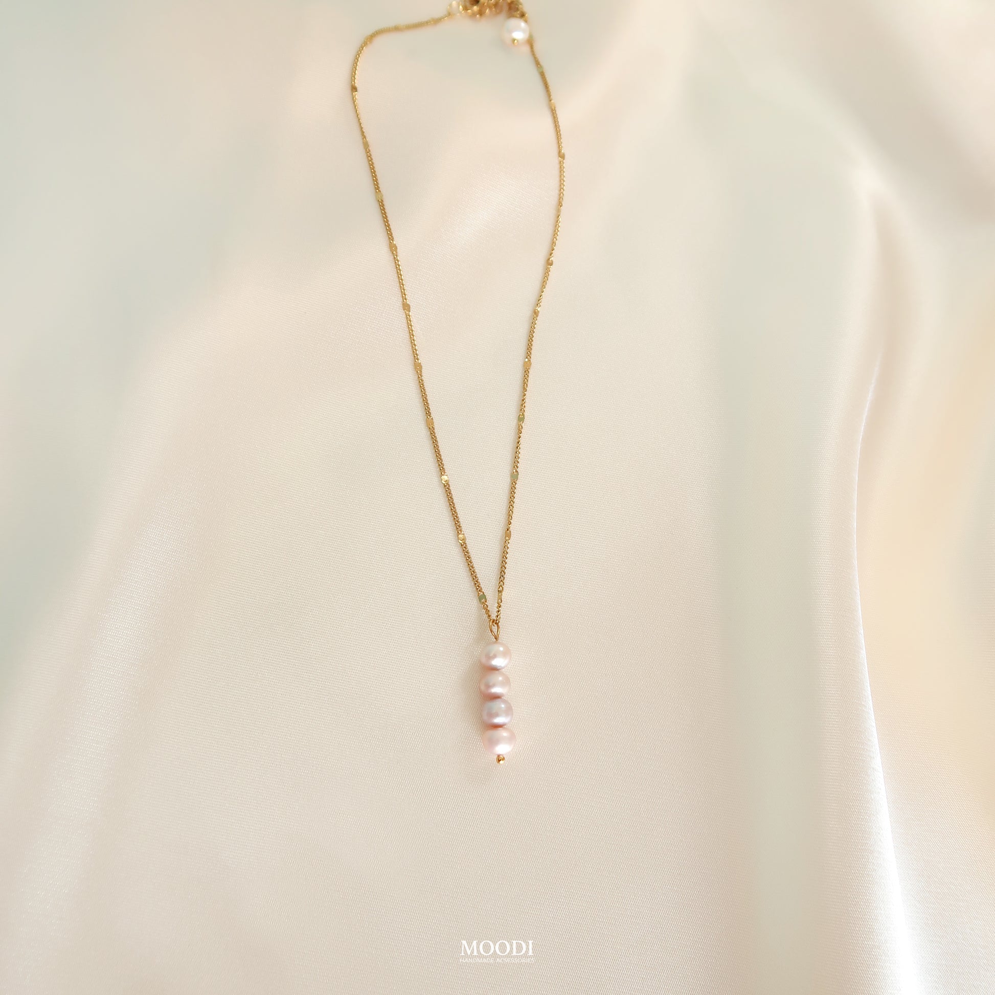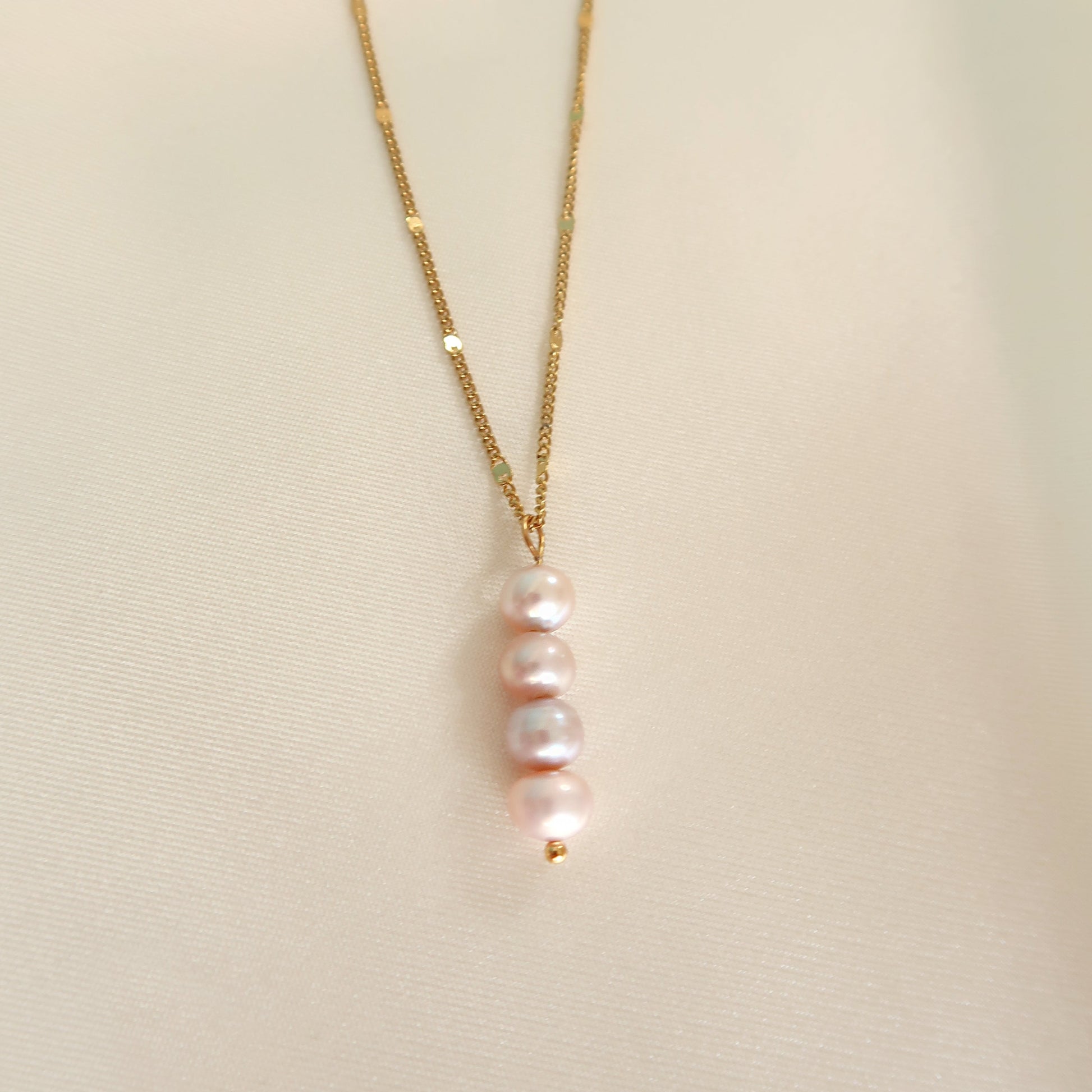 Перли с розоро-лилав отенък придават по-различна екстравагантна визия. Елегантно, но и ежедневно-модерно коие, може да го носите както с по-спортни дрехи така и с изискан костюм.
