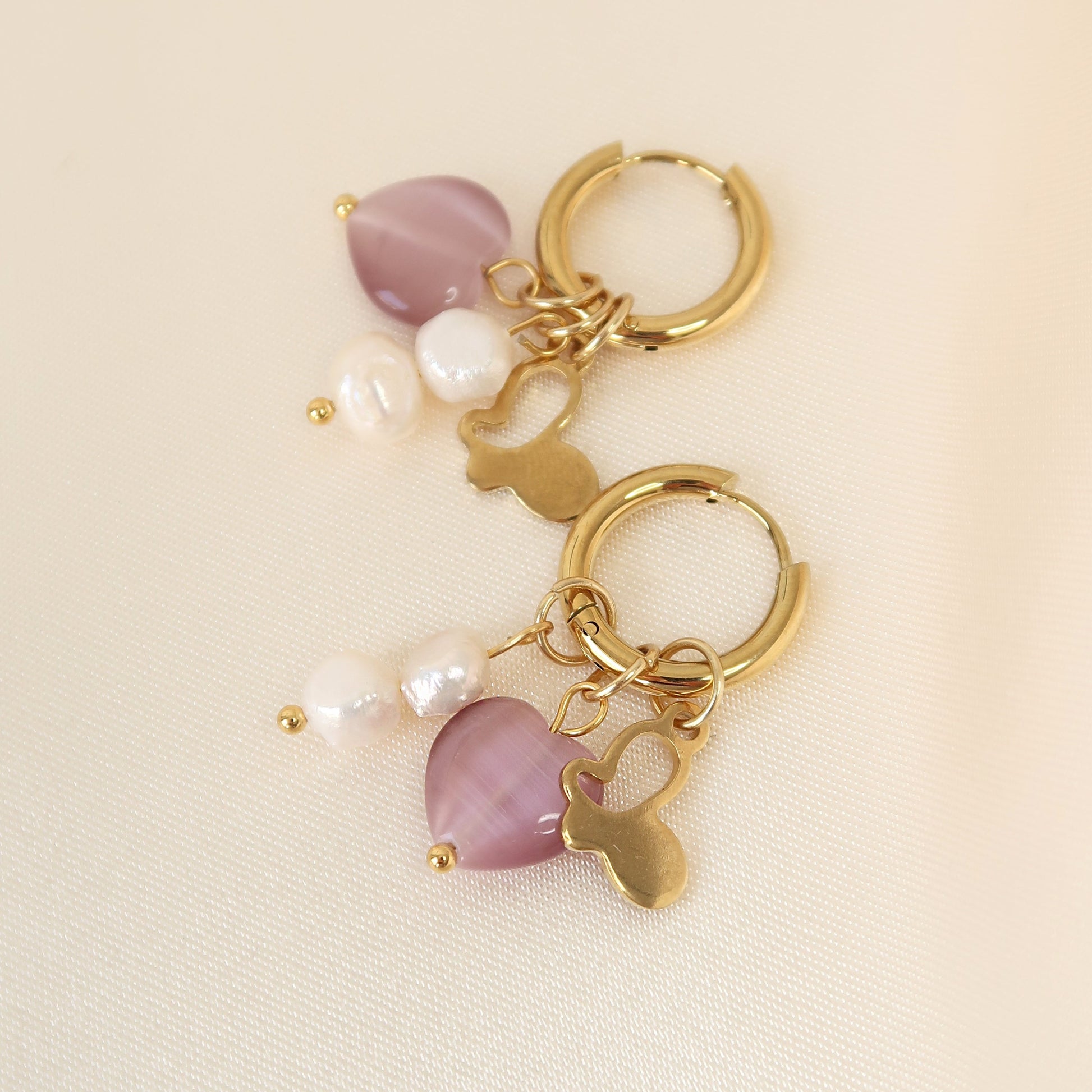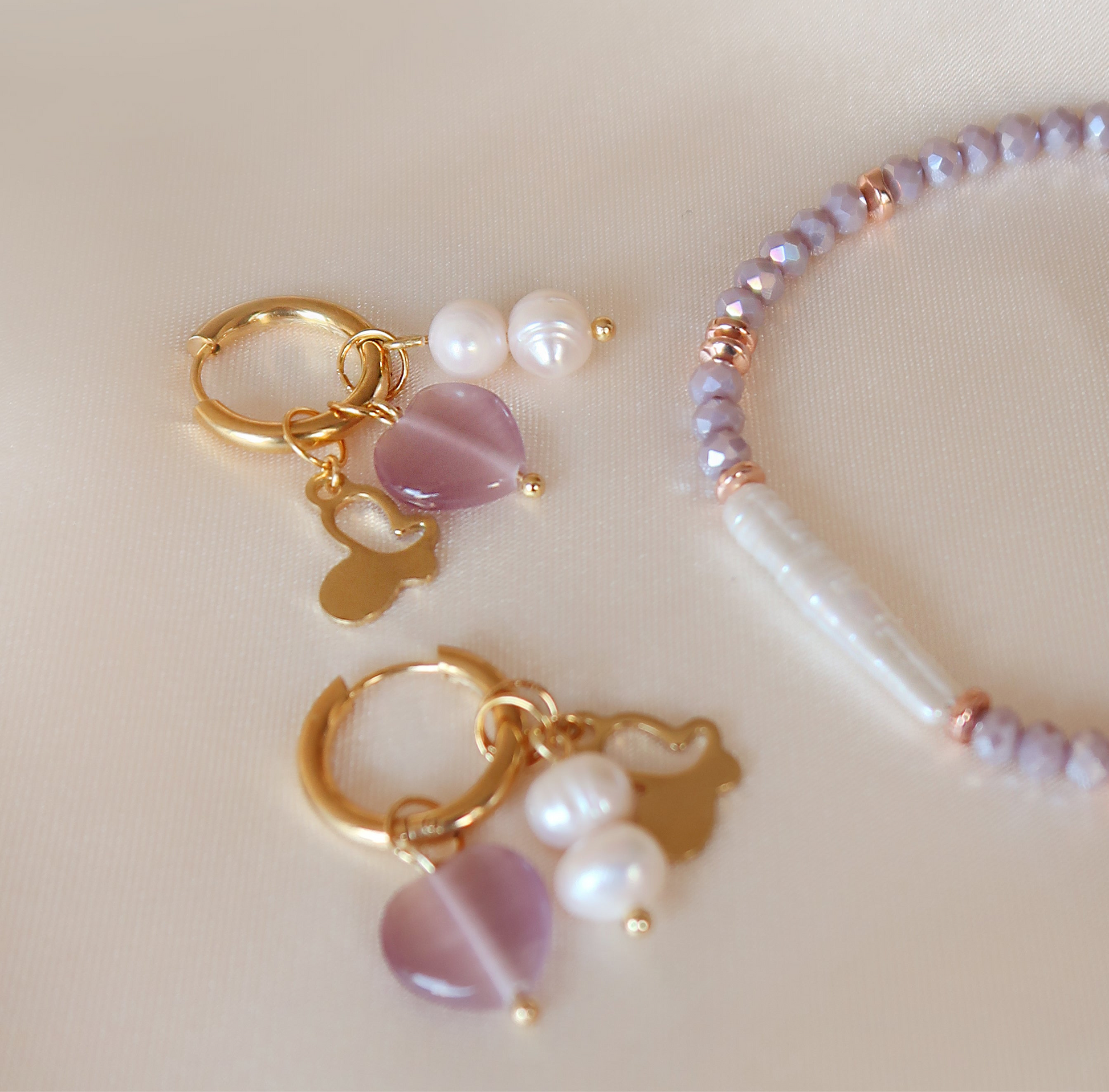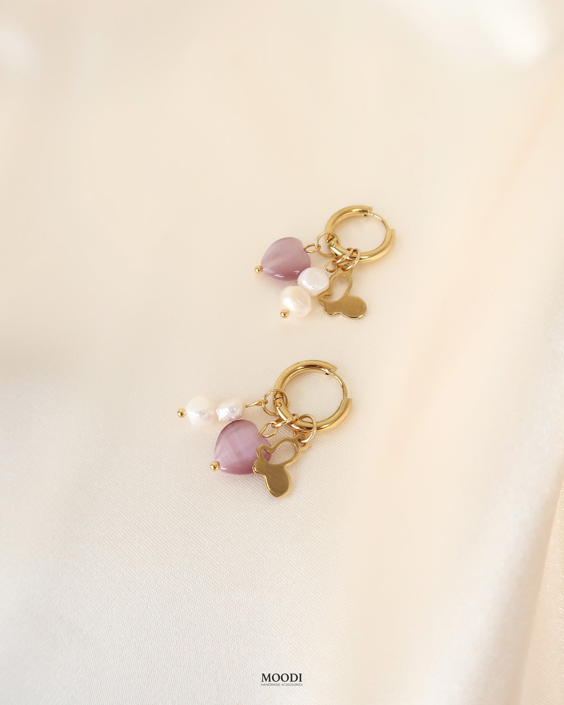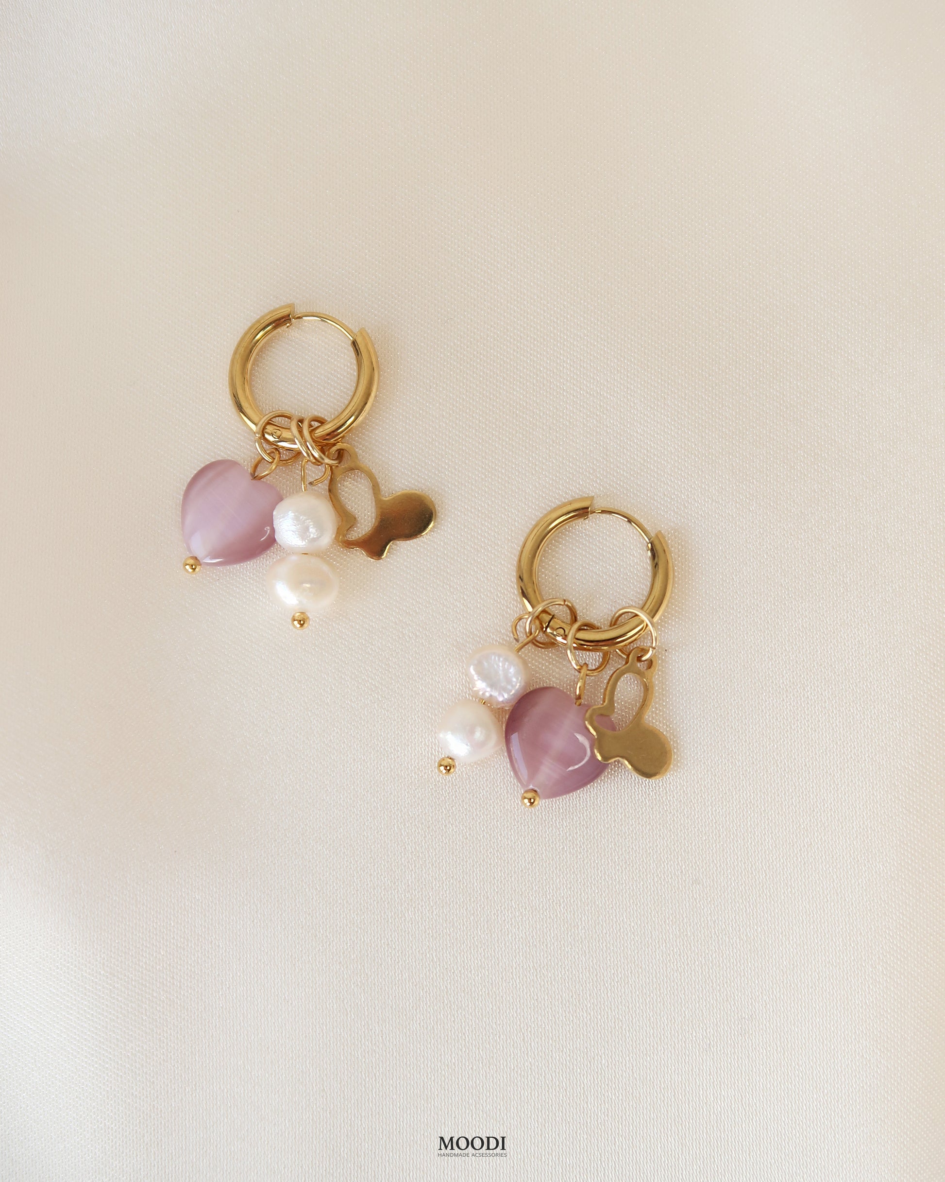 - Материал: Обеци, висулки пеперуди и елементи - медицинска стомана клас 316L, Сърца естествен камък котешко око, култивирани речни перли