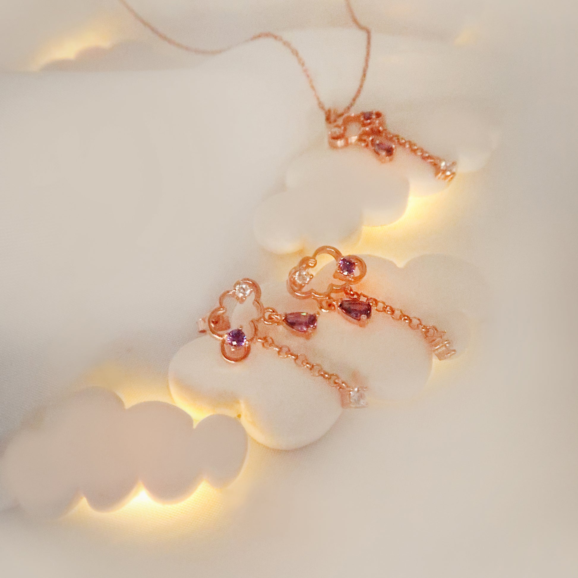- Материал: сребърни обеци с 14к позлата под формата на облак с малки камъни аметист и цирконий
