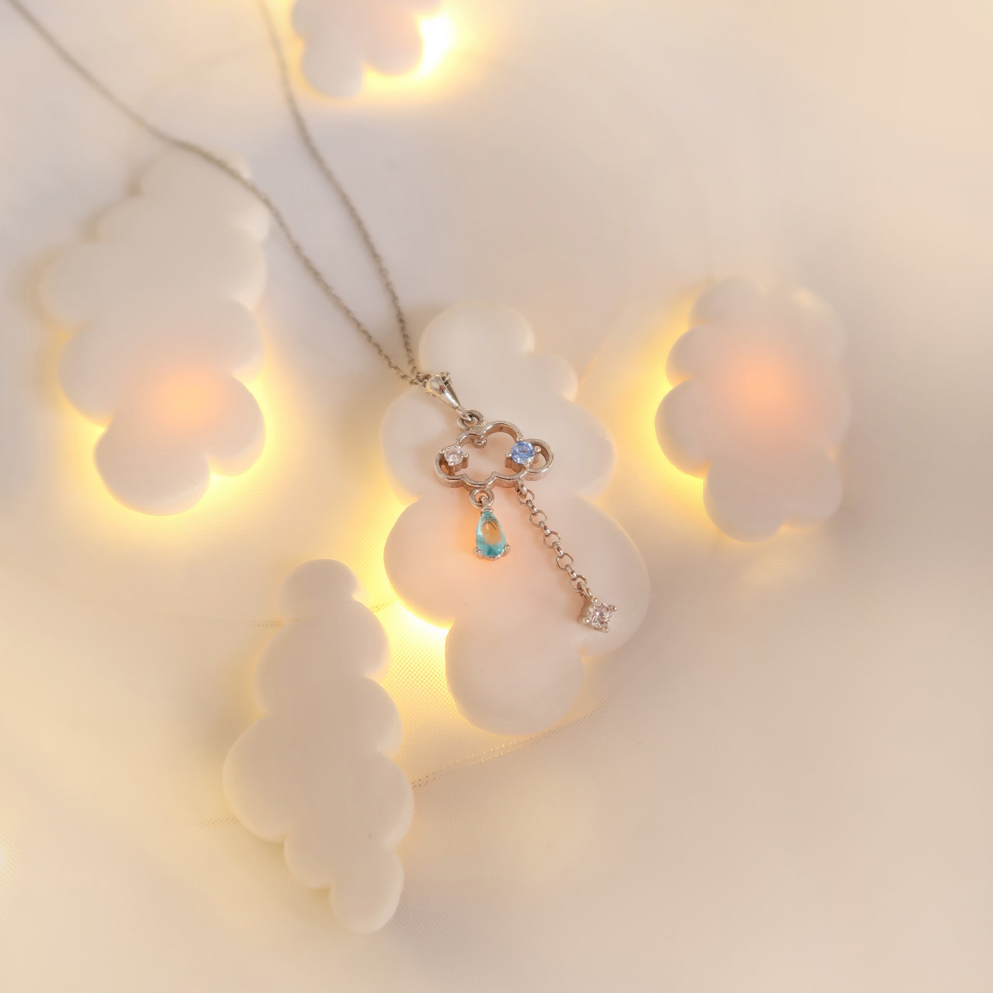 - Материал: сребърно колие с висулка под формата на облак с малки камъни Аквамарин и цирконий